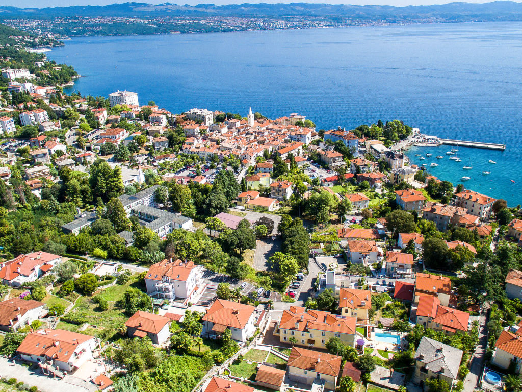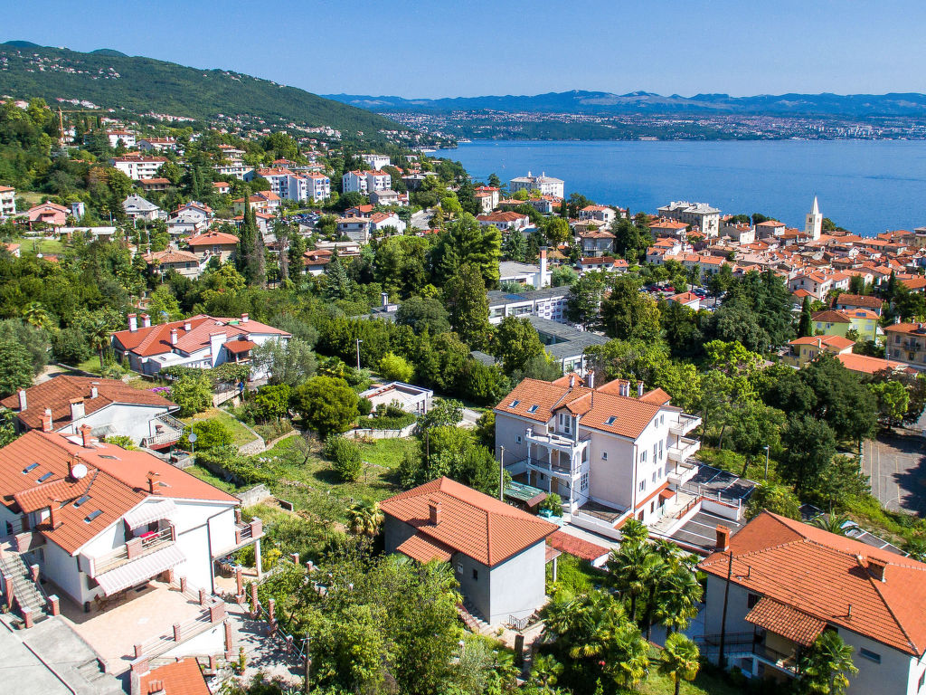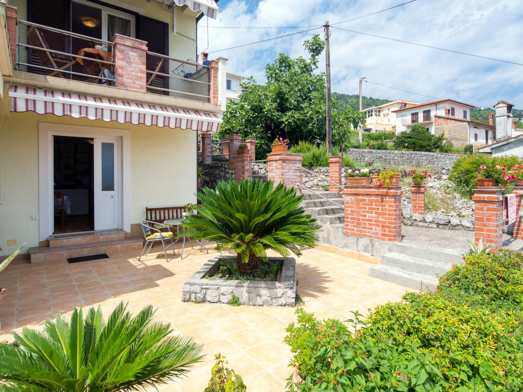 Haus TEODORA mit 5 Wohnungen steht in Hanglage in einer Stichstraße im Wohn- und Ferienhausgebiet von Lovran. Fels-/Kiesstrand ca. 450 m. Ortsmitte Lovran mit Einkaufsmöglichkeit ca. 500 m. Opatija 4,5 km. Opatija 6 km. Zufahrt zum Haus ca. 100 m über schmalen, steilen, teils unebenen Weg. Ca. 1000 m² großes Grundstück mit Wiese, Bäumen, gemauertem Grill (Absprache) und Kinderschaukel zur gemeinsamen Nutzung mit dem Vermieter, der das Erdgeschoss und eine Wohnung im Obergeschoss bewohnt und Hunde und Katzen hält. LOV 100 hat eine teilüberdachte Terrasse mit Markise, transportablem Grill und einen kleinen, überdachten Balkon. LOV 101 mit Dachterrasse mit Markise und transportablem Grill. Die Terrassen sind jeweils möbliert und mit Meerblick. Pro Wohnung 1 Carport. Weitere Parkmöglichkeiten auf dem Grundstück. Gute, freundliche Einrichtung. Fliesen- und Laminatboden. Sat-TV (deutsche Programme). Internetzugang (WLAN, inklusive). Waschmaschine. Elektro-Zustellheizung. Holz-Zentralheizung (Holz inklusive). LOV 100 mit Klimaanlage mit Kühl-/Heizfunktion im Schlafzimmer, LOV 101 mit Klimaanlage mit Kühl-/Heizfunktion im Wohnraum.