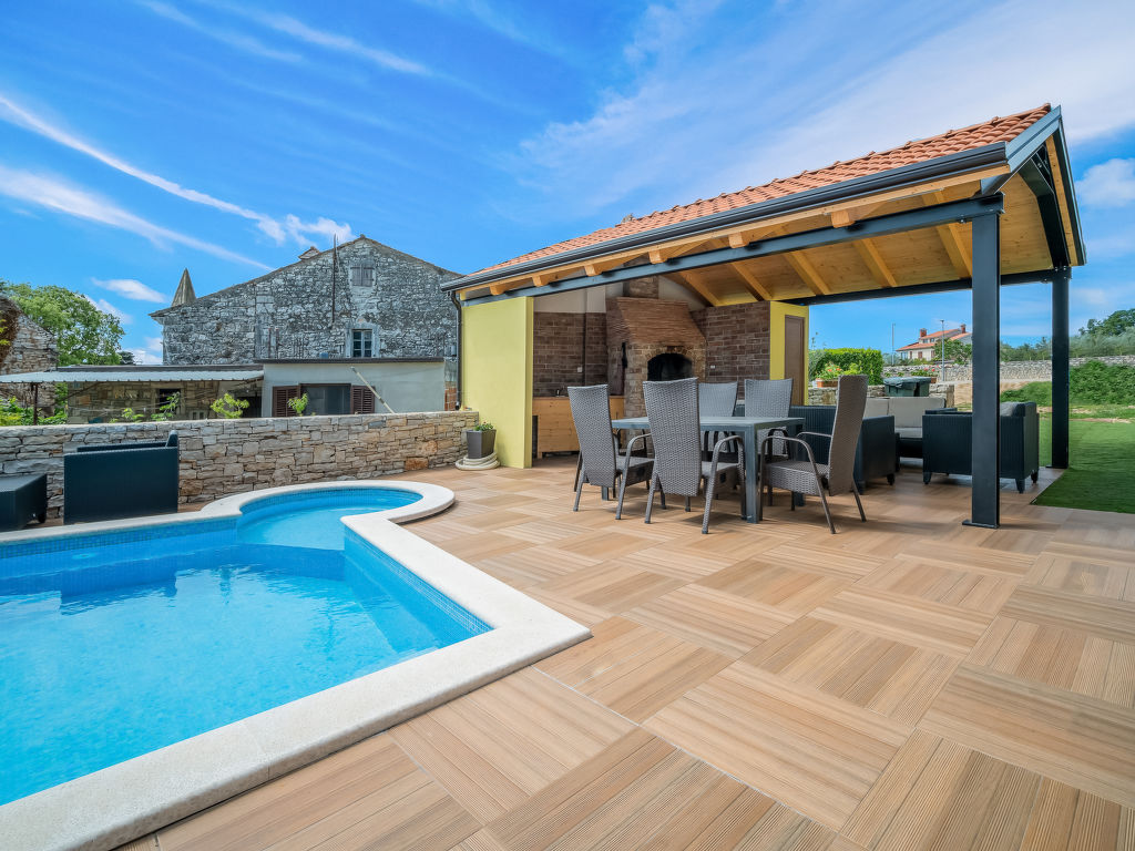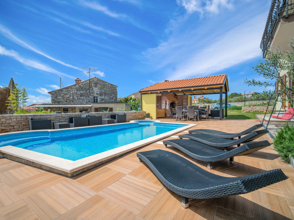 Tar 7 km von Poreč: Schönes Mehrfamilienhaus "Ulika". 200 m vom Zentrum von Tar, ruhige, sonnige Lage, 3 km vom Meer, 3 km vom Strand. Zur Mitbenutzung: Grundstück 700 m2, Garten mit Rasen, Schwimmbad (32 m2, 110 - 140 cm tief, saisonale Verfügbarkeit: 13.Apr.-19.Okt.) mit Innentreppe. Ungleichmässige Schwimmbadform, Kinderbecken, Aussendusche, Grill. Im Hause: Internetzugang, Zentralheizung. Parkplatz beim Haus auf dem Grundstück. Supermarkt 500 m, Restaurant 50 m, Kieselstrand 3 km, Felsstrand 3 km, Strandbad 3 km. Tennis 3 km, Wanderwege ab Haus 100 m, Radweg 150 m. Schwimmbad mit Hydromassage.