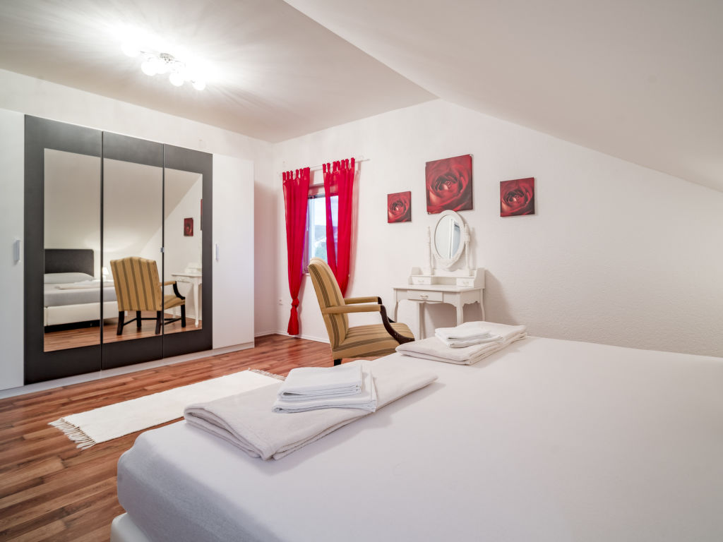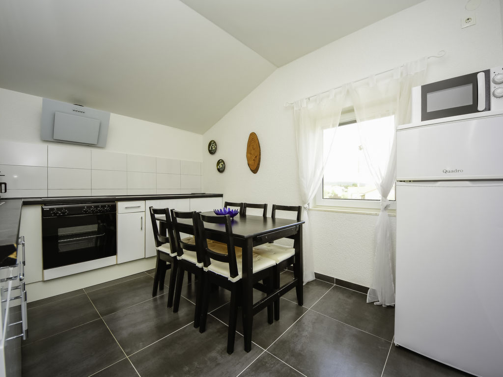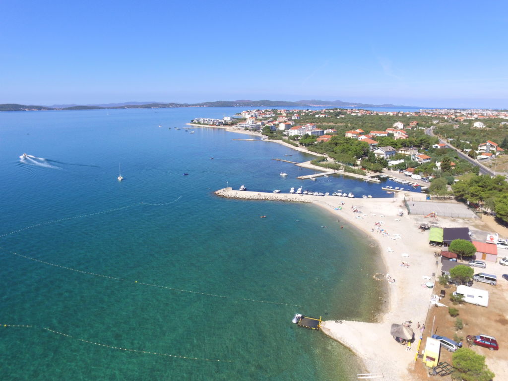 Mehrfamilienhaus "Marina". 2.5 km vom Zentrum von Sukošan, ruhige, sonnige Lage, 100 m vom Meer, 100 m vom Strand. Zur Mitbenutzung: Grundstück 400 m2 (eingezäunt). Laube (8 m2), Gartenmöbel, Grill. Im Hause: Internetzugang. Parkplatz beim Haus auf dem Grundstück. Einkaufsgeschäft 50 m, Restaurant 300 m, Kieselstrand 100 m.