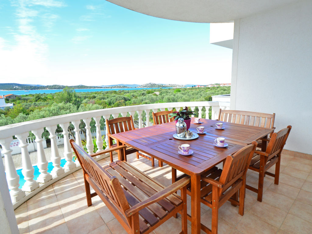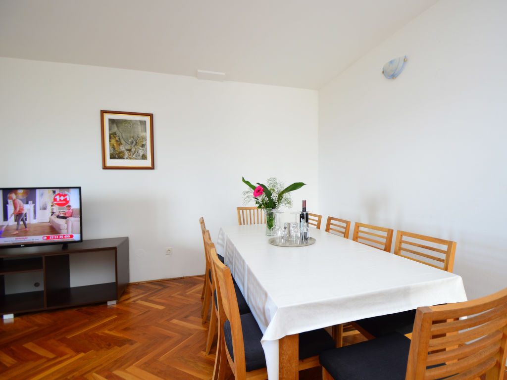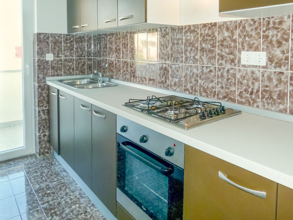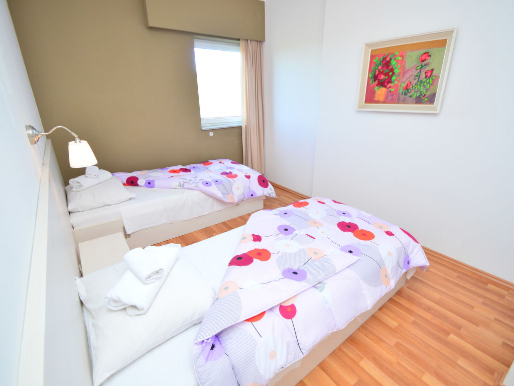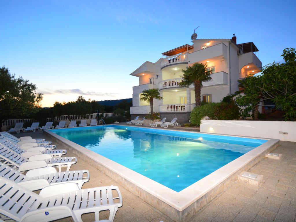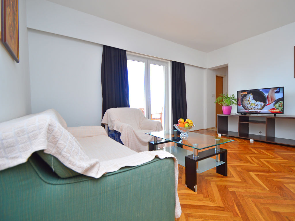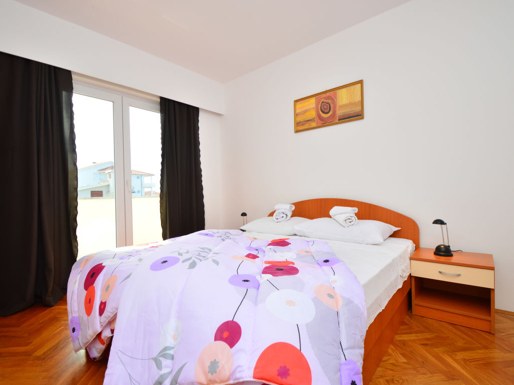 Appartementhaus "Rina". Ausserhalb des Ortes, 1 km vom Zentrum, ruhige, sonnige, erhöhte Lage, 500 m vom Meer. Zur Mitbenutzung: Grundstück 1'600 m2, Garten mit Pflanzen und Bäumen, Schwimmbad eckig (15 x 6 m, 125 - 135 cm tief, saisonale Verfügbarkeit: 24.Apr.-09.Okt.) mit Innentreppe. Aussendusche, Sitzplatz, Grill, Kinderspielplatz (Rutschbahn, Schaukel). Im Hause: Internetzugang, Waschmaschine (zur Mitbenutzung, extra). Parkplatz beim Haus. Einkaufsgeschäft 500 m, Restaurant 1 km, Kieselstrand, Steinstrand 500 m. Bitte beachten: In diesem Haus sind weitere Ferienwohnungen mietbar.