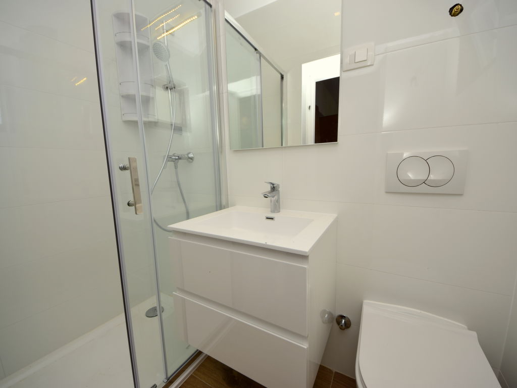 6-Zimmer-Wohnung 120 m2 im 1. Stock. Wohn-/Esszimmer 24 m2 mit Sat-TV (Flachbildschirm), Klimaanlage. Ausgang zur Terrasse. 1 Zimmer mit 1 franz. Bett (160 cm, Länge 200 cm), Dusche/WC und Klimaanlage. Ausgang zum Balkon. 1 Zimmer mit 2 Betten (90 cm, Länge 200 cm), Dusche/WC. Ausgang zum Balkon. 1 Zimmer mit 1 Doppelbett (2 x 80 cm, Länge 200 cm), Dusche/WC und Klimaanlage. Ausgang zum Balkon. 1 Zimmer mit 1 franz. Bett (160 cm, Länge 200 cm). Ausgang zum Balkon. 1 Zimmer mit 2 Betten (90 cm, Länge 200 cm). Offene Küche (4 Kochplatten, Backofen). Ausgang zum Balkon. Dusche/WC. Klimaanlage, Warmluftheizung (extra). Balkon 7 m2, 3 Balkone 2 m2, Terrasse 14 m2 teilweise überdacht. Terrassenmöbel. Sicht auf das Meer und das Schwimmbad. Zur Verfügung: Internet (Wireless LAN, gratis).