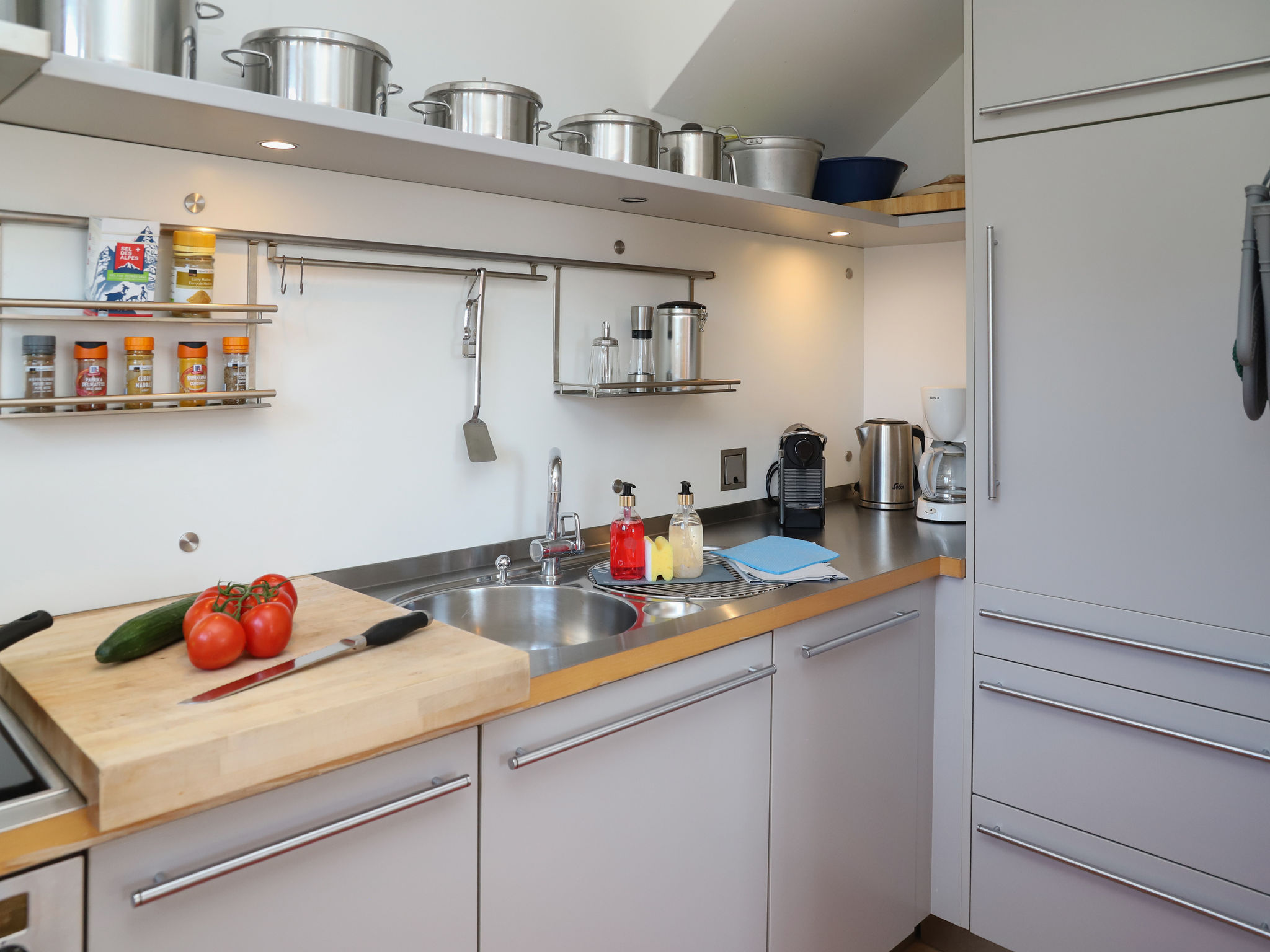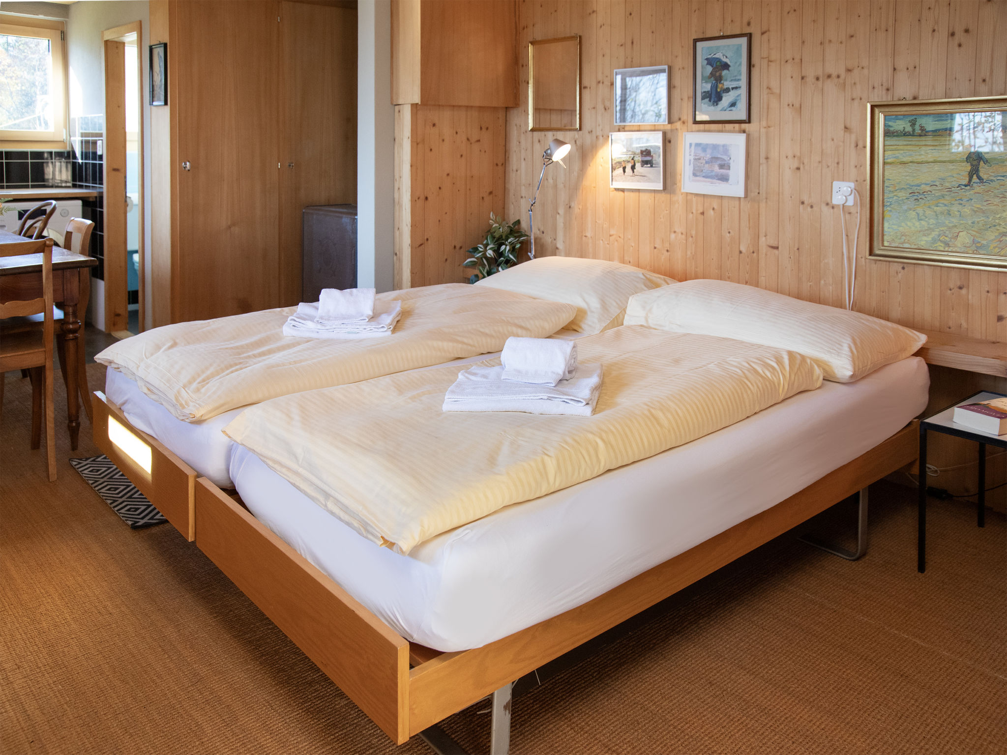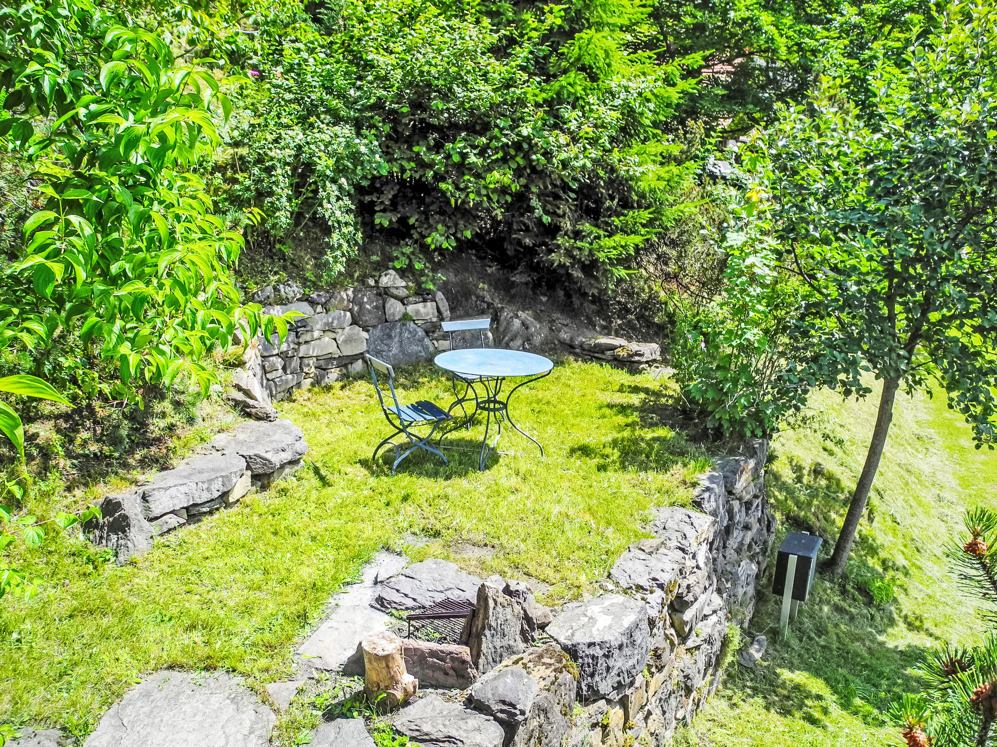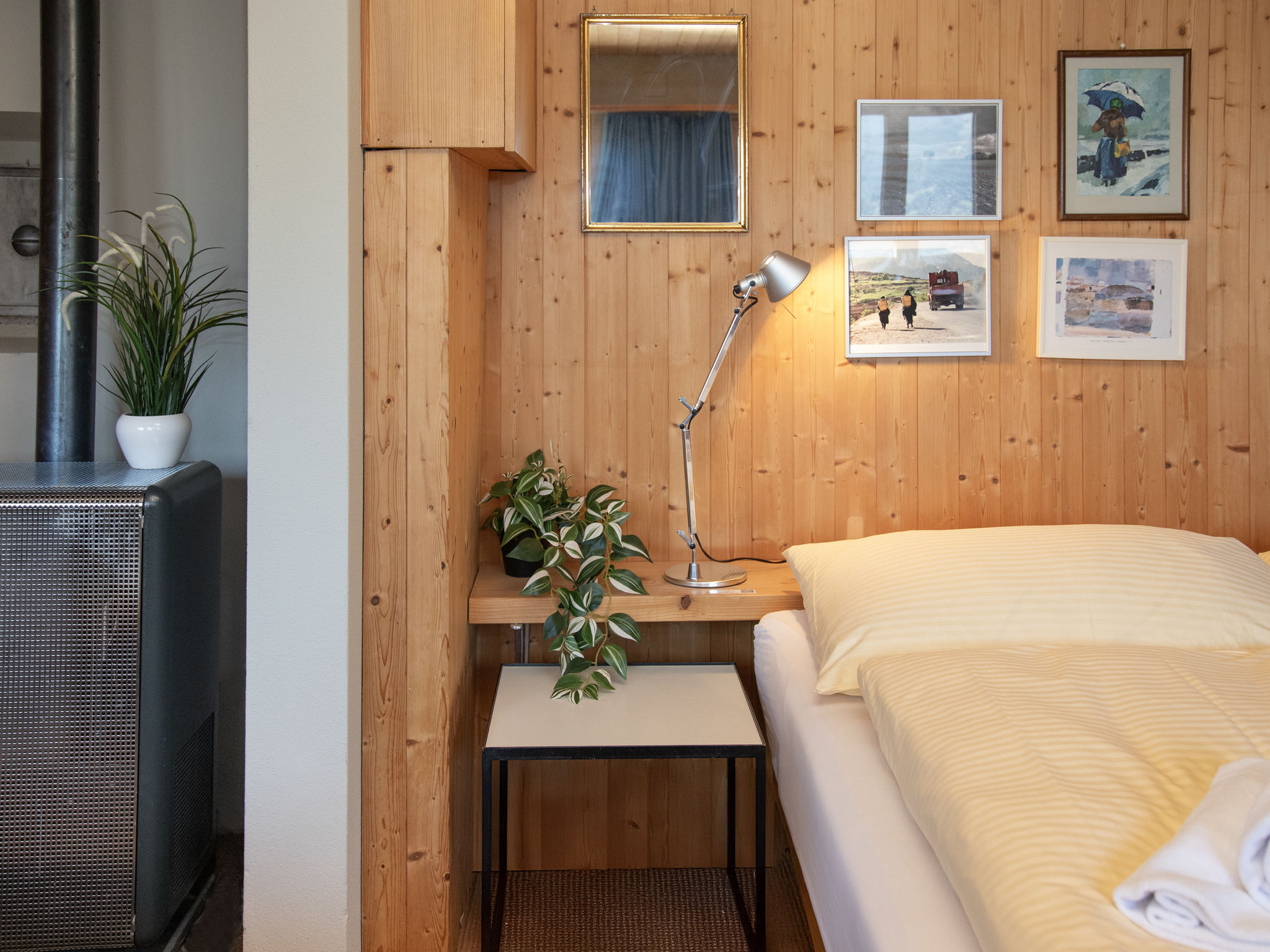 3-Zimmer-Chalet 75 m2. Geräumig, teilweise renoviert, modern und geschmackvoll eingerichtet: Wohn-/Esszimmer 30 m2 mit 1 Bett (90 cm, Länge 190 cm), Esstisch, Kabel-TV und Internationale TV-Sender (Flachbildschirm), Radio und CD. Ausgang zum Balkon, Richtung Süden. 1 Zimmer 14 m2 mit 2 Betten (90 cm, Länge 190 cm), Bad/WC. Offene Küche (Backofen, Geschirrspüler, 4 Glaskeramikherd Platten, Toaster, Wasserkocher, elektrische Kaffeemaschine, Kapseln für die Kaffeemaschine (Nespresso) extra). Unteres Geschoss: (Aussentreppe) 25 m2, 1 Zimmer mit 2 Betten (90 cm, Länge 200 cm), sep. WC. Ausgang zum Gartensitzplatz. Balkonmöbel, Liegestühle (2). Herrliche Panoramasicht auf die Berge und das Tal. Zur Verfügung: Waschmaschine, Wäschetrockner (extra). Internet (Wireless LAN, gratis). Bitte beachten: ein Doppelzimmer liegt außerhalb der Wohnung. Nichtraucher-Haus. Maximal 1 Haustier/Hund erlaubt. Keine interne Verbindung zwischen den Etagen.
