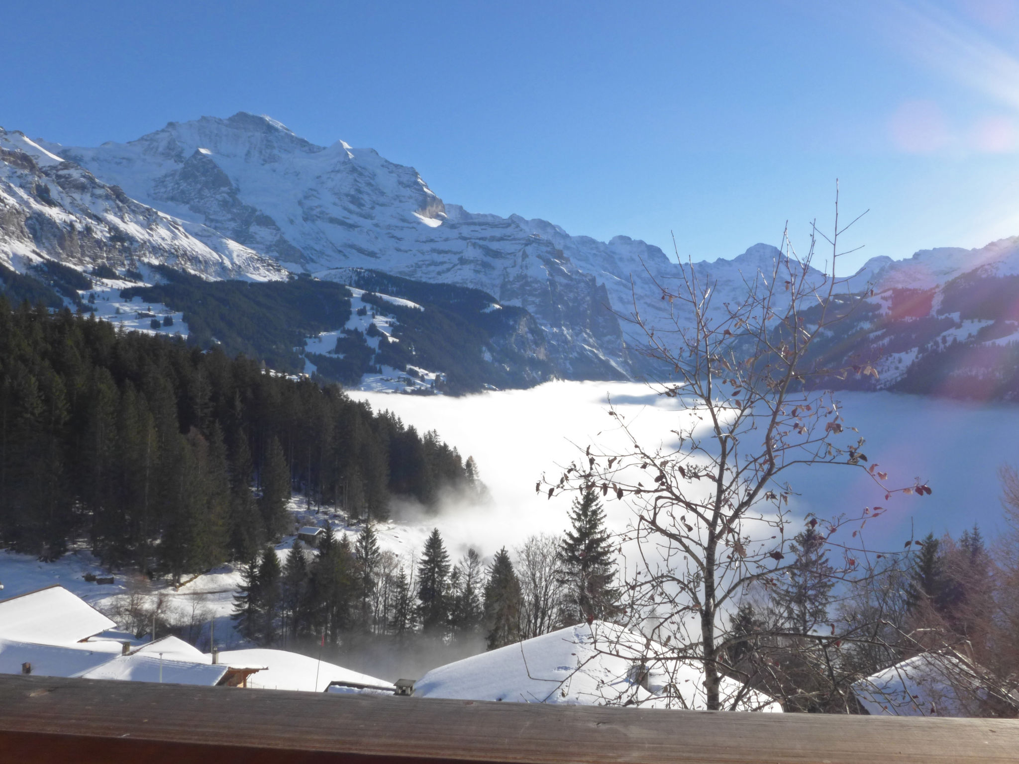 Wengen: Gemütliches, alleinstehendes Chalet "Jungfrau an der Ledi". Ausserhalb des Ortes, 1 km vom Zentrum von Wengen, ruhige, sonnige Lage am Hang. Zur Mitbenutzung: naturbelassenes Grundstück. Sitzplatz, Gartenmöbel. Zur Verfügung: Schlitten (2). Einkaufsservice vor Anreise möglich. Zufahrt bis 50 m zum Haus. Einkaufsgeschäft 1 km, Supermarkt 1.2 km, Restaurant 800 m, Bäckerei 1 km, Bahnstation "Wengen" 1.2 km. Luftseilbahn 1 km, Skisportanlagen 1 km, Skischule 1 km, Kinderskischule 1 km. Bitte beachten: autofreie Ferienanlage. Die Anreise erfolgt mit der Bergbahn.