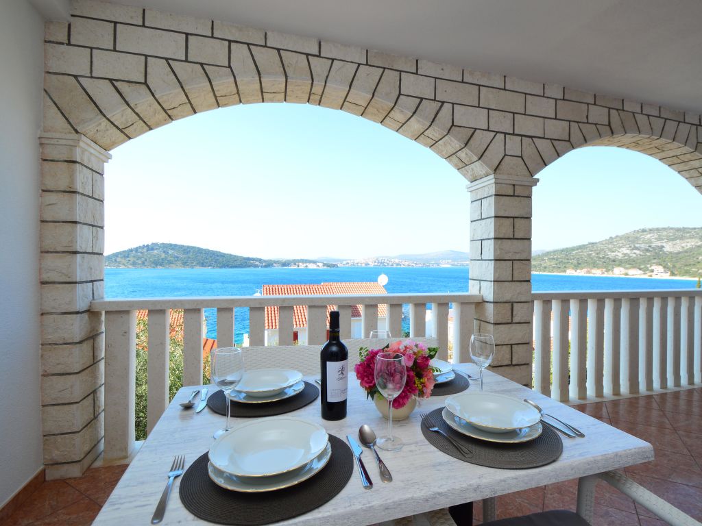 Razanj 10 km von Rogoznica: Schönes Appartementhaus "Marina". Im Ortsteil Ljoljinica, ruhige, erhöhte Lage, 40 m vom Meer. Zur Mitbenutzung: Aussendusche, Terrasse, Gartenmöbel, Grill, Parkplatz beim Haus auf dem Grundstück, Gemeinschaftsgarage. Einkaufsgeschäft, Restaurant 200 m, Felsstrand 40 m. Bitte beachten: In diesem Haus sind weitere Ferienwohnungen mietbar.
