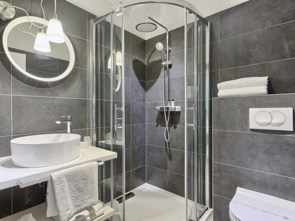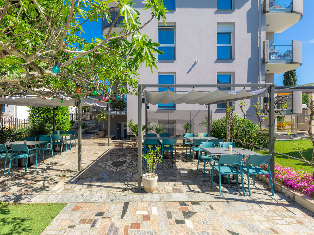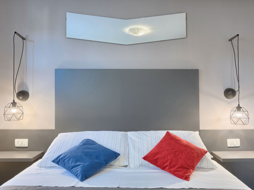 2-Zimmer-Wohnung 40 m2, unteres Geschoss. Renoviert im Jahre 2018, schön und geschmackvoll eingerichtet: Wohn-/Esszimmer 25 m2 mit 1 Doppeldiwanbett (150 cm, Länge 200 cm), Sat-TV und Klimaanlage. Ausgang zur Terrasse. 1 Zimmer mit 1 franz. Bett (160 cm, Länge 200 cm), Klimaanlage. Offene Küche (2 Kochplatten, Mikrowelle, elektrische Kaffeemaschine). Dusche/WC. Heizung. Terrasse 6 m2, überdacht. Terrassenmöbel. Sicht auf das Schwimmbad und den Garten. Zur Verfügung: Internet (Wireless LAN, gratis). Parkplatz.