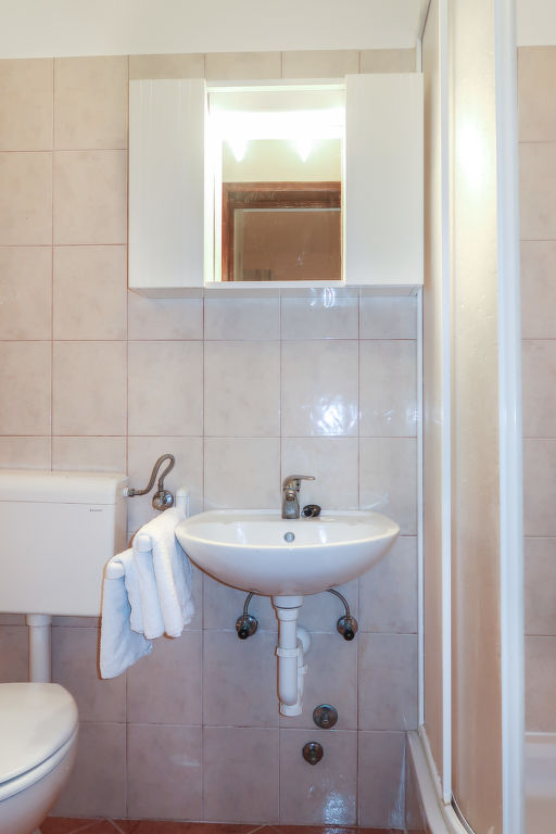 "Noa (RAB112)", 2-Zimmer-Wohnung 39 m2, im Erdgeschoss. 1 Zimmer mit 1 Doppelbett (2 x 80 cm, Länge 200 cm), Dusche/WC. 1 Zimmer mit 1 franz. Bett (140 cm, Länge 190 cm), Dusche/WC. Küche (2 Kochplatten, Toaster, Wasserkocher, Tiefkühler, elektrische Kaffeemaschine) mit Esstisch, Sat-TV. Ölheizung. Sicht auf das Meer. Zur Verfügung: Babybett (extra). Internet (Wireless LAN, gratis). Bitte beachten: Nichtraucher-Unterkunft. Eigener Eingang.