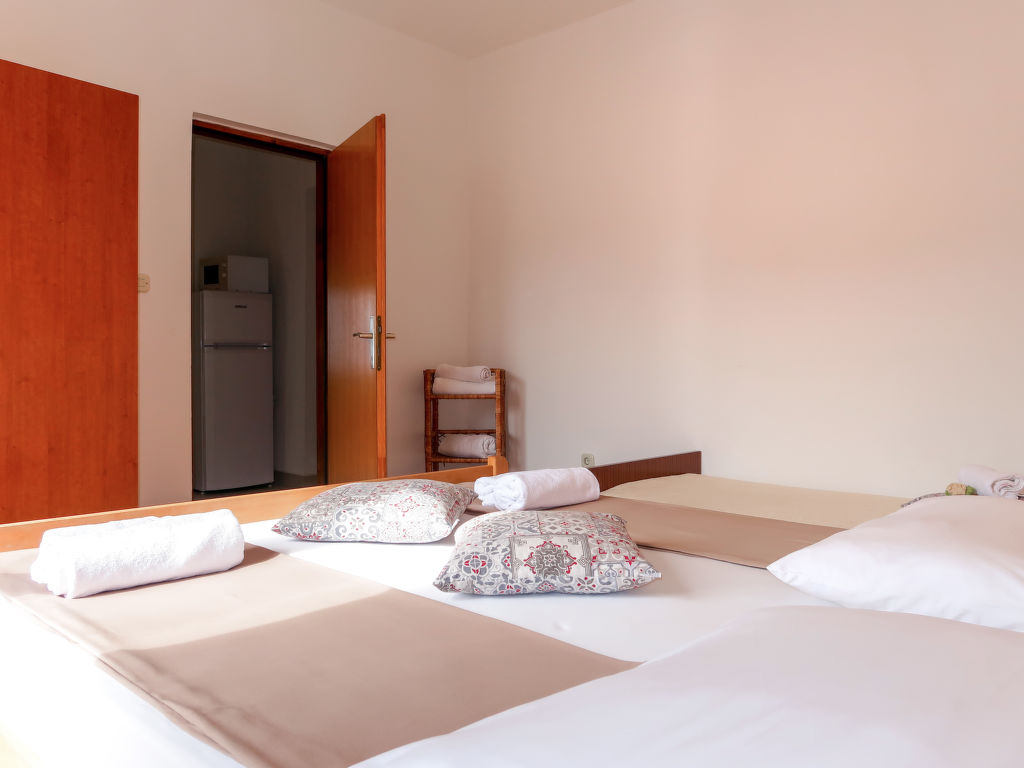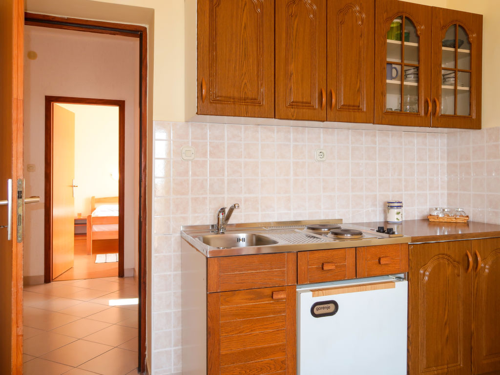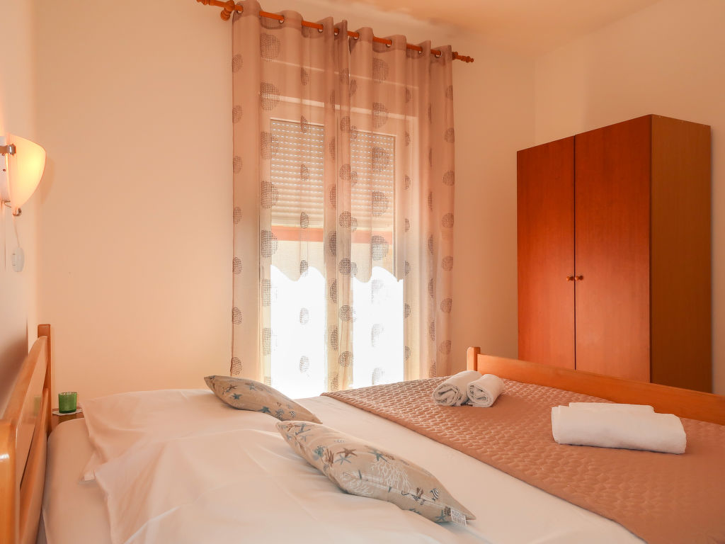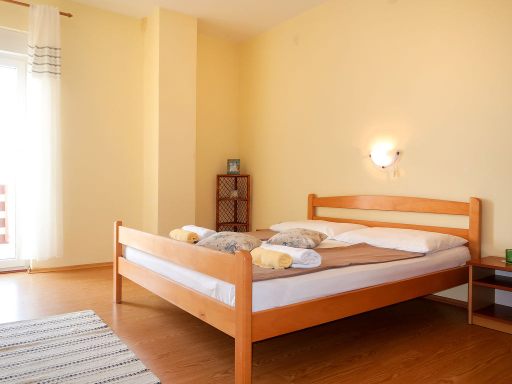 "Andrija (RAB313)", 3-Zimmer-Wohnung 70 m2 im 1. Stock. Wohn-/Esszimmer mit Sat-TV und Klimaanlage. Ausgang zum Balkon. 1 Zimmer mit 1 Doppelbett (2 x 80 cm, Länge 190 cm). Ausgang zum Balkon. 1 Zimmer mit 1 Doppelbett (2 x 80 cm, Länge 190 cm). Ausgang zum Balkon. Offene Küche (2 Kochplatten, Toaster, Wasserkocher, Mikrowelle, Tiefkühler, elektrische Kaffeemaschine). Dusche/WC. Heizung, Klimaanlage. Balkon 17 m2. Balkonmöbel. Sicht auf das Meer. Zur Verfügung: Waschmaschine. Internet (Wireless LAN, gratis).