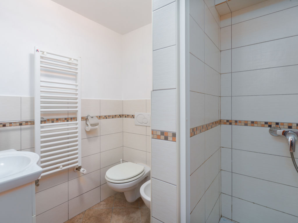 7-Zimmer-Doppelhaushälfte 185 m2 auf 3 Stockwerken. 2 Zimmer, jedes Zimmer mit 1 Doppelbett. Wohnküche (1 Kochplatte, Backofen, Geschirrspüler, 3 Flammen, Toaster, Wasserkocher, elektrische Kaffeemaschine) mit Esstisch und Sat-TV. Ausgang zur Terrasse. Dusche/WC. G-Heizung. Obergeschoss: (Aussentreppe) Wohnzimmer mit Sat-TV. Ausgang zur Terrasse. 2 Zimmer, jedes Zimmer mit 1 franz. Bett (160 cm, Länge 200 cm). 1 Zimmer mit 1 Doppelbett. Esszimmer. Küche (1 Kochplatte, Backofen, Geschirrspüler, 3 Flammen, Toaster, Wasserkocher, elektrische Kaffeemaschine). Dusche/WC, Dusche/Bidet/WC. 2. Obergeschoss: 1 abgeschrägtes, offenes Zimmer mit 2 Betten und Dusche/WC. 1 Zimmer mit 1 franz. Bett und Dusche/WC. 1 offenes Zimmer mit 1 franz. Bett (150 cm, Länge 200 cm). G-Heizung. Terrasse überdacht. Terrassenmöbel, Liegestühle. Zur Verfügung: Babybett (extra). Internet (Wireless LAN, gratis). Bitte beachten: Nichtraucher-Haus. Bei Buchung zum Preis Für 12 Personen bleibt die Ferienwohnung im Erdgeschoss verschlossen. Bei Belegung mit weniger Personen als der maximalen Personenzahl steht eine Etage nicht zur Verfügung.