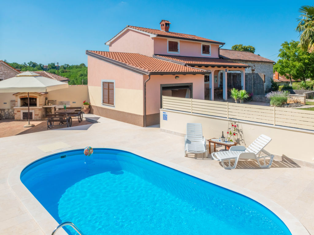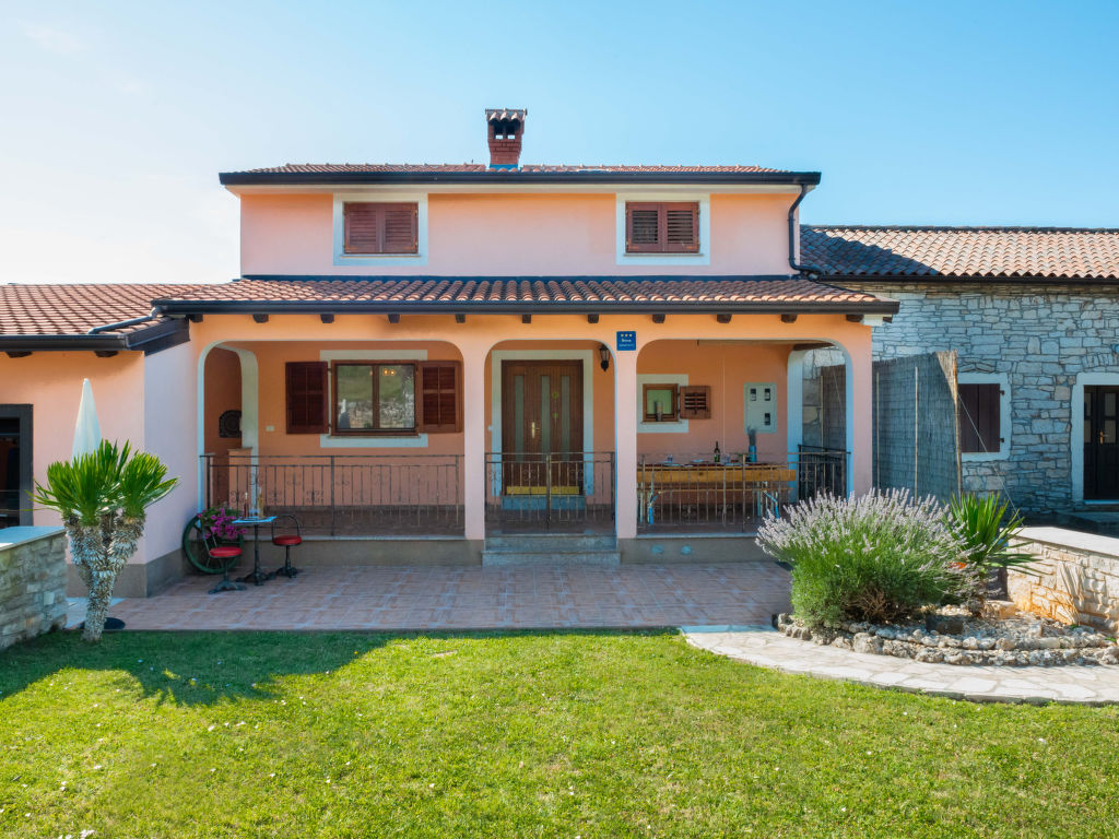 Doppelhaus "Medica (PZN318)", auf 2 Stockwerken. Im Weiler Milotići, 1 km vom Zentrum von Tinjan, 12 km vom Zentrum von Pazin, 20 km vom Meer. Zur Alleinbenutzung: Grundstück 200 m2 mit Rasen und Bäumen, Schwimmbad (24 m2, 135 cm tief, 15.05.-17.09.). Aussendusche, Tischtennis, Terrasse, Gartenmöbel, Grill, Poolpflege durch den Besitzer/Gärtner. Im Hause: Internetzugang. Parkplatz auf dem Grundstück, Einzelgarage. Einkaufsgeschäft 1 km, Restaurant 1 km, Felsstrand 20 km.