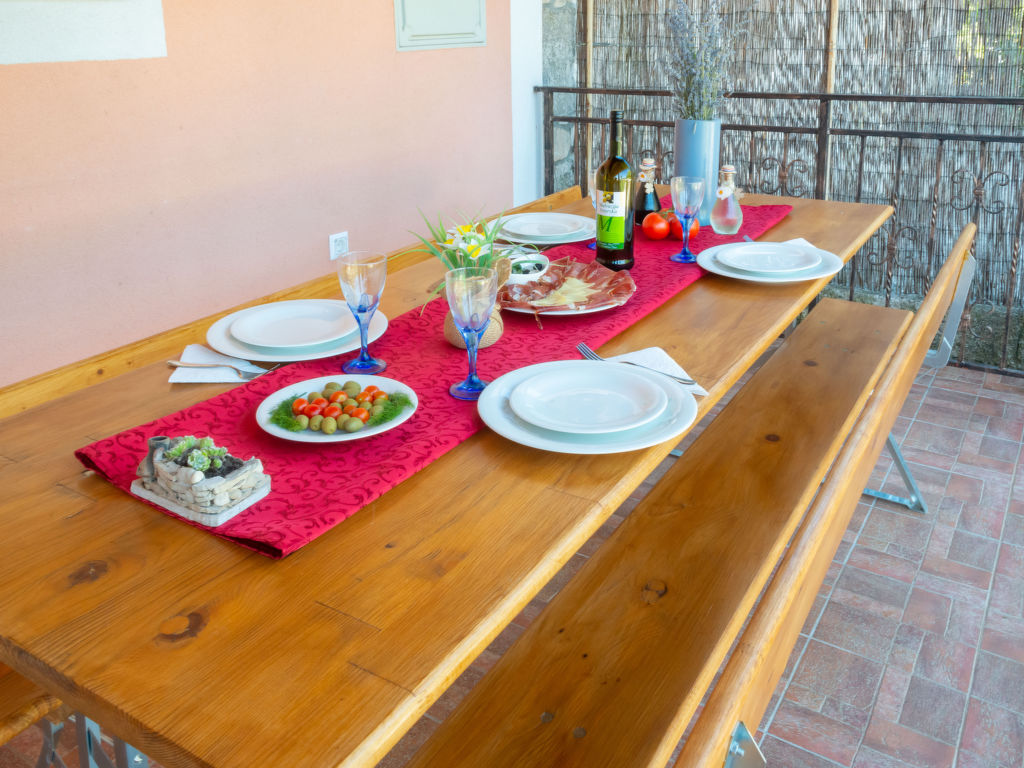 4-Zimmer-Doppelhaushälfte 100 m2 auf 2 Stockwerken. Wohn-/Esszimmer mit Sat-TV (Flachbildschirm), Klimaanlage. Ausgang zur Terrasse. Offene Küche (1 Kochplatte, Backofen, 3 Flammen, Toaster, Wasserkocher, Mikrowelle, Tiefkühler, elektrische Kaffeemaschine). Sep. WC. Obergeschoss: 2 Zimmer, jedes Zimmer mit 1 franz. Bett. 1 Zimmer mit 1 Bett. Dusche/Bidet/WC. Terrasse. Terrassenmöbel, Liegestühle. Zur Verfügung: Internet (Wireless LAN, gratis).