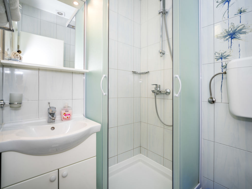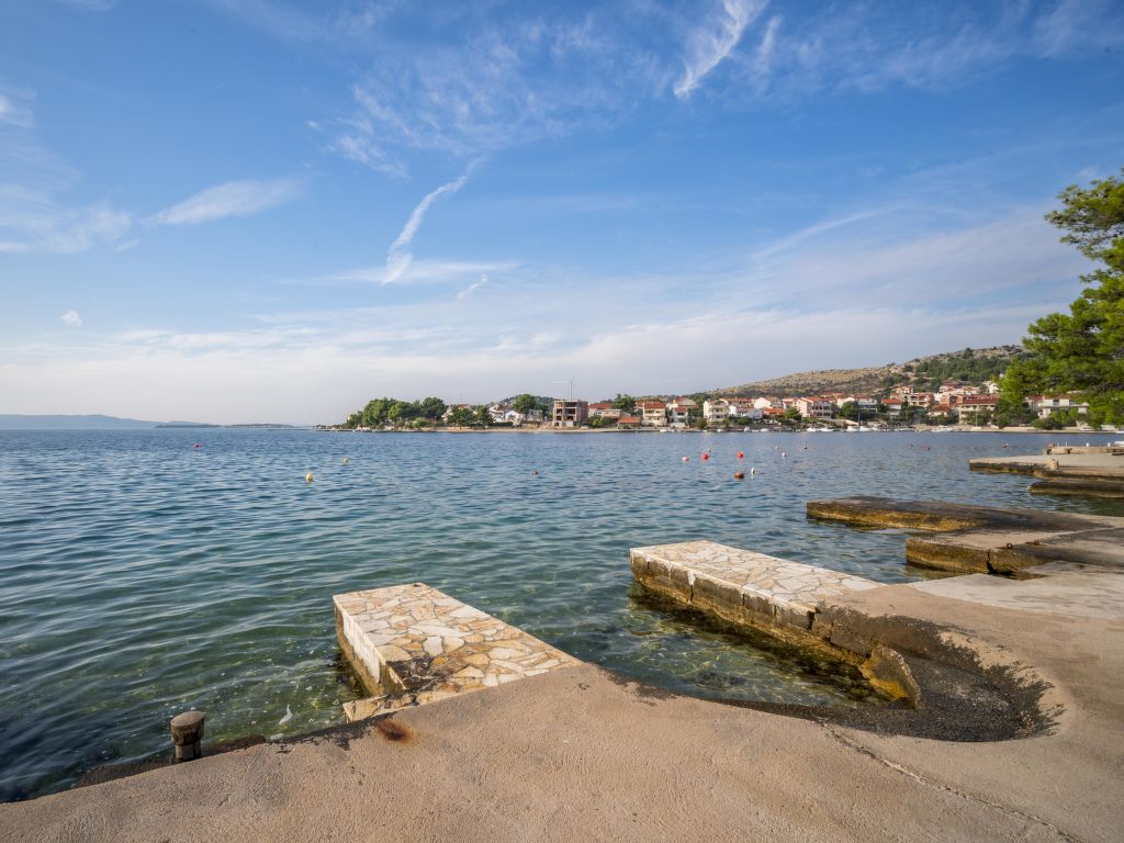 Žaborić 3 km von Brodarica: Mehrfamilienhaus "Andrea". 1 km vom Zentrum von Žaborić, 8 km vom Zentrum von Šibenik, 14 km vom Zentrum von Primošten, ruhige, sonnige Lage, 60 m vom Meer, 60 m vom Strand, in einer Sackgasse. Zur Mitbenutzung: Aussendusche, Tischtennis, Grill. Im Hause: Internetzugang. Parkplatz beim Haus auf dem Grundstück. Einkaufsgeschäft 900 m, Einkaufszentrum 8 km, Restaurant 1 km, betonierter Strand 60 m.