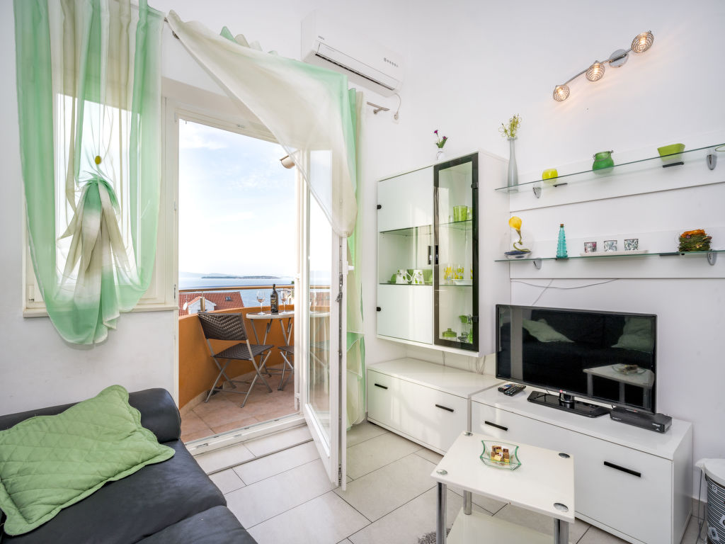 3-Zimmer-Wohnung 38 m2 im 2. Stock. Wohn-/Esszimmer mit Sat-TV (Flachbildschirm), Klimaanlage. Ausgang zum Balkon. 1 Zimmer mit 1 franz. Bett (140 cm, Länge 200 cm). 1 Zimmer mit 1 x 2 Etagenbetten (90 cm, Länge 200 cm). Offene Küche (2 Glaskeramikherd Platten). Dusche/WC. Klimaanlage (extra). Balkon 2 m2. Schöne Sicht auf das Meer. Zur Verfügung: Internet (Wireless LAN, gratis). Parkplatz (eingezäunt).