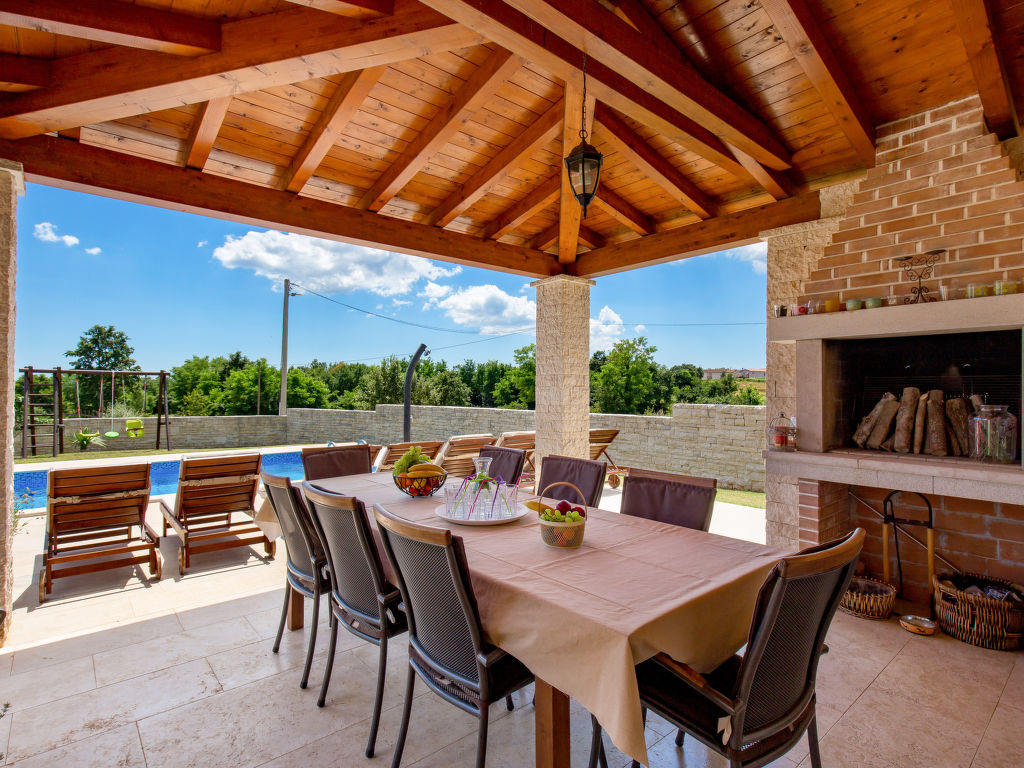 Einfamilienhaus "Baretuni (LBN390)", auf 2 Stockwerken. Im Weiler Baretuni, 3 km vom Zentrum von Barban, 20 km vom Zentrum von Labin, 24 km vom Zentrum von Rabac, 5 km vom Meer, im Grünen. Zur Alleinbenutzung: Grundstück 1'000 m2 (eingezäunt) mit Rasen und Pflanzen, Schwimmbad eckig (8 x 4 m, 150 cm tief, 01.05.-01.10.). Aussendusche, Terrasse, Grill (Schaukel), Poolpflege durch den Besitzer/Gärtner. Im Hause: Internetzugang, Waschmaschine. Parkplatz (für 3 Autos) auf dem Grundstück. Einkaufsgeschäft 2.2 km, Supermarkt 2.2 km, Restaurant 3 km, Felsstrand 9 km. Jacht-Hafen 26 km, Reitstall 8 km. Der Besitzer akzeptiert keine Jugendgruppen.