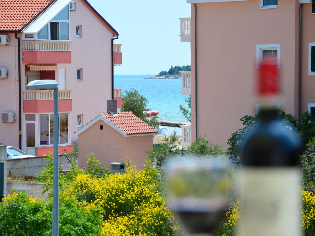 Schönes Mehrfamilienhaus "Sanja". Im Ortsteil Srima, 3 km vom Zentrum von Vodice, 10 km vom Zentrum von Šibenik, ruhige, sonnige Lage, 120 m vom Meer, 120 m vom Strand. Zur Mitbenutzung: Grill. Im Hause: Internetzugang, Waschmaschine (zur Mitbenutzung, extra), Fahrräder vorhanden. Zufahrt bis zum Haus. Parkplatz beim Haus auf dem Grundstück. Einkaufsgeschäft 800 m, Restaurant, Kieselstrand 120 m. Nahe gelegene Sehenswürdigkeiten: NP Kornati, NP Krka.