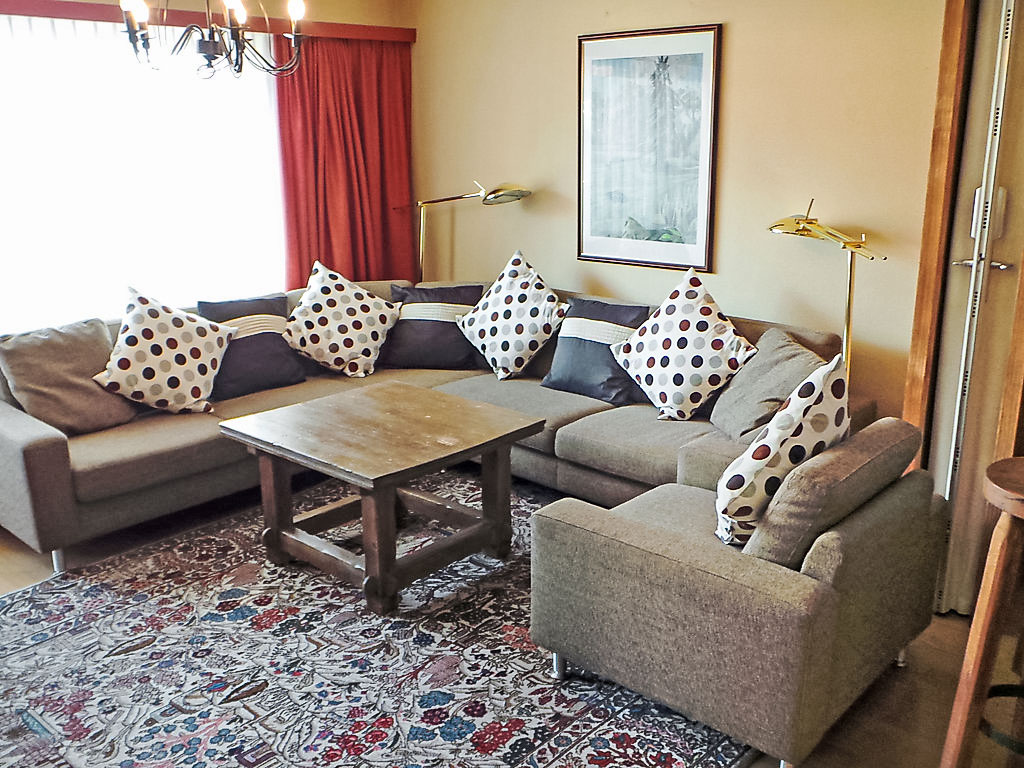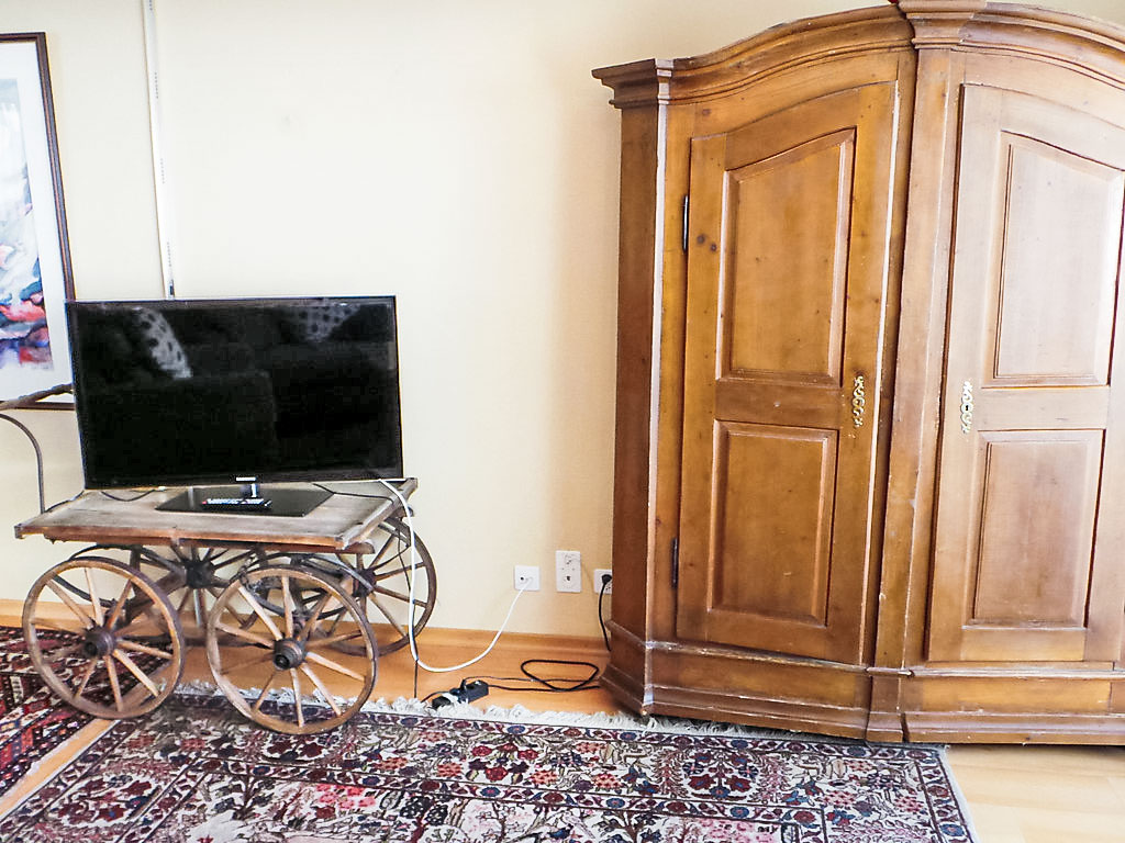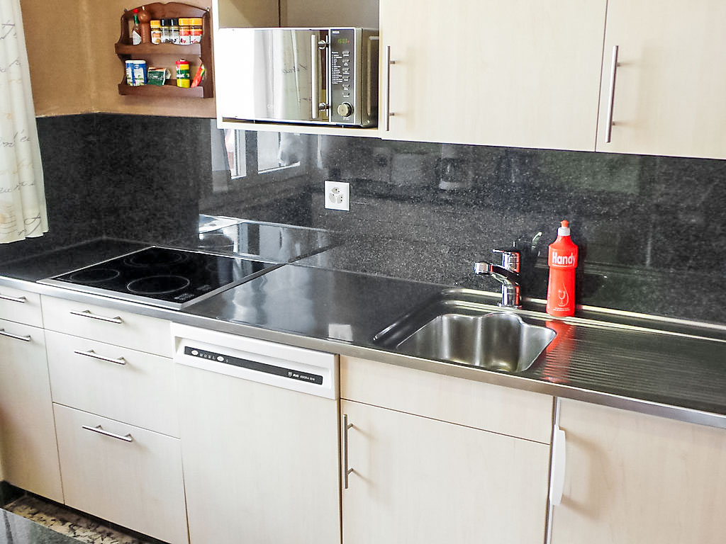 3-Zimmer-Wohnung 76 m2 im 2. Stock. Zweckmässig und komfortabel eingerichtet: 1 Zimmer mit 2 Betten (90 cm, Länge 200 cm). 1 Doppelzimmer mit 1 Doppelbett (1 x 160 cm, Länge 200 cm). Wohn-/Esszimmer mit Essecke und TV. Ausgang zum Balkon. Küche (Geschirrspüler, 4 Glaskeramikherd Platten, Toaster, Wasserkocher, Mikrowelle, Tiefkühler, elektrische Kaffeemaschine, Fondue Set (Chinoise, Käse)). Bad/WC, Dusche, sep. WC. Balkon 12 m2. Balkonmöbel. Schöne Sicht auf Matterhorn. Zur Verfügung: Haartrockner. Internet (Wireless LAN, gratis). Bitte beachten: Nichtraucher-Unterkunft.