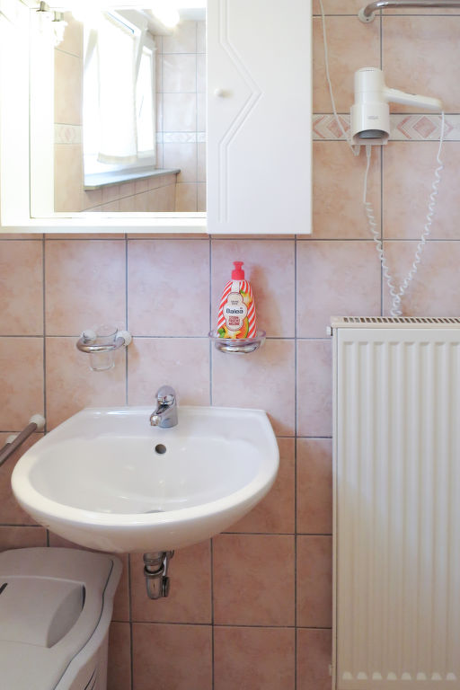 2-Zimmer-Wohnung 38 m2 im 2. Stock. Wohn-/Schlafzimmer mit 1 Doppelbett, Esstisch, Sat-TV und Klimaanlage. Ausgang zum Balkon. 1 Zimmer mit 1 Bett. Offene Küche (2 Kochplatten, Mikrowelle, elektrische Kaffeemaschine). Dusche/WC. Klimaanlage, Warmluftheizung (extra). Balkon 4 m2. Balkonmöbel. Zur Verfügung: Safe. Internet (Wireless LAN, gratis). Bitte beachten: Nichtraucher-Haus.