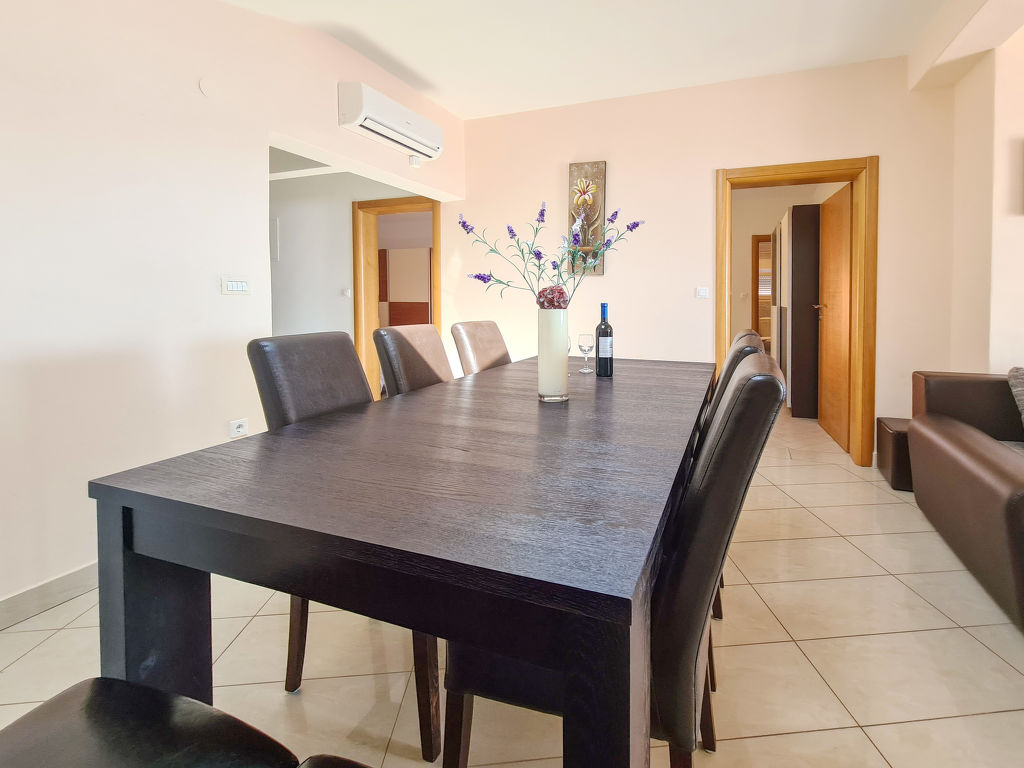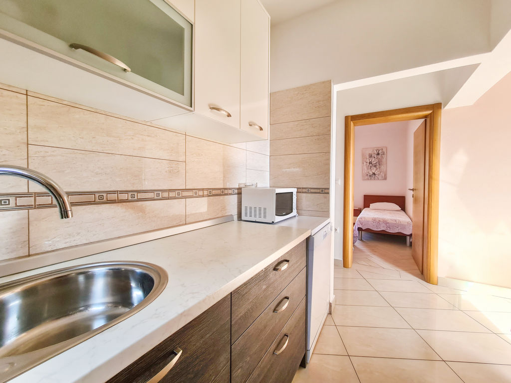 Haus TANJA mit 3 Wohnungen und Meerblick steht in schöner Lage, ca. 300 m von der Ortsmitte Maslenica entfernt. Nächste Einkaufsmöglichkeit ca. 20 m. Felsstrand mit betonierten Flächen ca. 100 m. Posedarje 6 km. Starigrad 20 km. Zadar 35 km. Offenes, ca. 350 m² großes Grundstück mit Weinreben und Olivenbaum. Alle Wohnungen haben einen großen möblierten Balkon mit Markise und gemauertem Grill. SRD 403/404 mit Meerblick und 3 Balkonen. SRD 411 hat eine weitere Terrasse und 2 Balkone. Pro Wohnung 1 Parkmöglichkeit auf dem Grundstück. Die Wohnungen sind gut und angenehm eingerichtet mit Fliesenboden, Sat-TV (deutsche Programme), Internetzugang (WLAN, inklusive), Waschmaschine, Klimaanlage mit Kühl-/Heizfunktion im Wohnraum. Hinweis: Rauchen ist in den Wohnungen nicht gestattet.