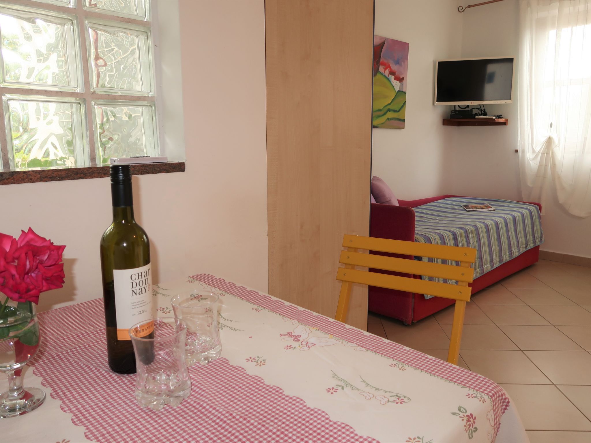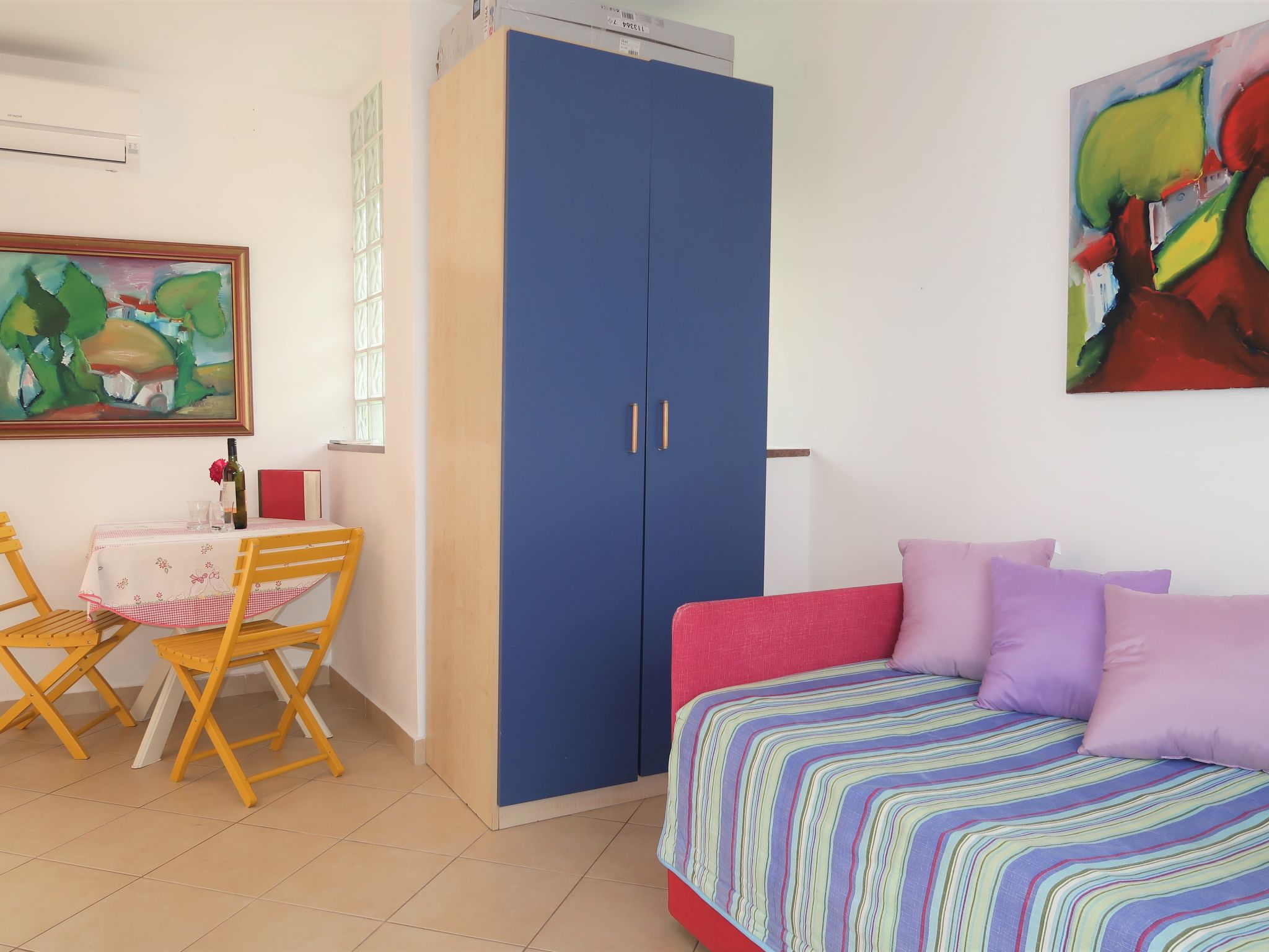 "Adalgisa (LBN128)", 1-Zimmer-Wohnung 20 m2 im 1. Stock. Studio mit 1 Doppeldiwanbett (2 x 80 cm, Länge 200 cm), Sat-TV. Offene Küche (2 Kochplatten, Toaster, Wasserkocher, Mikrowelle, elektrische Kaffeemaschine) mit Esstisch. Dusche/WC. Terrasse 4 m2. Terrassenmöbel, Gartengrill (mobil), Liegestühle (2). Sicht auf das Meer. Zur Verfügung: Internet (Wireless LAN, gratis). Bitte beachten: Nichtraucher-Haus. 2 Haustiere/Hunde erlaubt. Eigener Eingang.