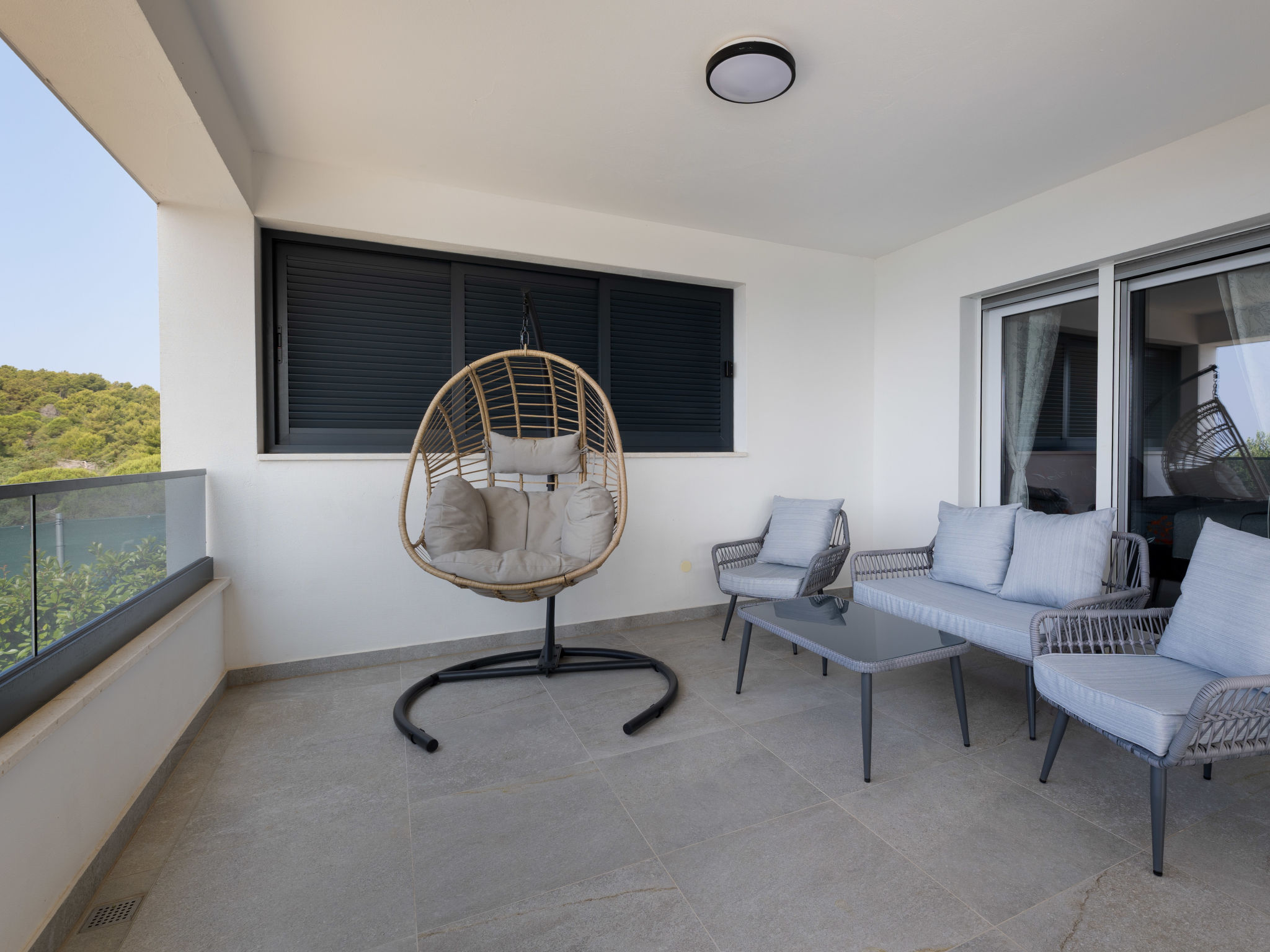 6-Zimmer-Haus 145 m2. Modern eingerichtet: Wohn-/Esszimmer mit 1 Diwanbett, Küchenblock und Sat-TV (Flachbildschirm), Klimaanlage. Ausgang zur Terrasse. 1 Zimmer mit 1 Doppelbett. 1 Zimmer mit 2 Betten. Wohn-/Esszimmer mit 1 Doppeldiwanbett (140 cm, Länge 220 cm), Sat-TV und Klimaanlage. Ausgang zur Terrasse. 1 Zimmer mit 1 franz. Bett (180 cm, Länge 200 cm), Dusche/WC und Klimaanlage. Ausgang zur Terrasse. 1 Zimmer mit 1 franz. Bett (180 cm, Länge 200 cm), Dusche/WC und Klimaanlage. Offene Küche (Backofen, Geschirrspüler, 4 Glaskeramikherd Platten, Toaster, Wasserkocher, Tiefkühler, elektrische Kaffeemaschine). Dusche/WC, sep. WC. Terrasse 16 m2, überdacht, Terrasse 35 m2, überdacht. Terrassenmöbel, Liegestühle. Panoramasicht auf das Meer. Zur Verfügung: Internet (Wireless LAN, gratis). Jedes Haus mit Wohn-/Essbereich, offener Küche, 2 Schlafzimmern. Bei Belegung mit weniger Personen als der maximalen Personenzahl stehen nicht alle Wohneinheiten zur Verfügung.