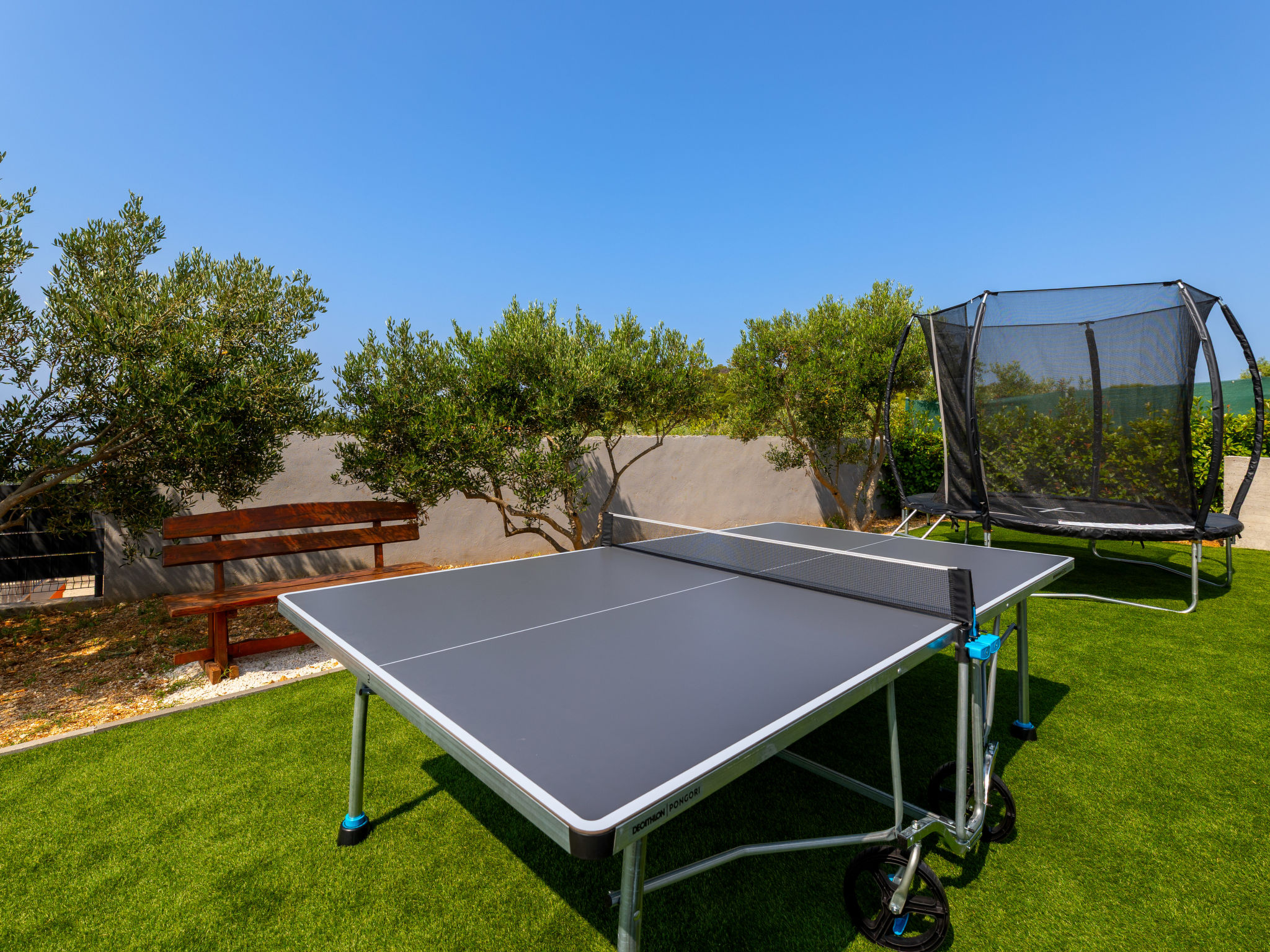 Okrug Gornji (Čiovo): Modernes Einfamilienhaus "Ria (TGR146)". 1.5 km vom Zentrum von Okrug Gornji, 5 km vom Zentrum von Trogir, ruhige, sonnige Lage, 200 m vom Meer, 200 m vom Strand. Zur Alleinbenutzung: Grundstück 1'200 m2 (eingezäunt), Bäumen, Schwimmbad (26 m2, 150 cm tief, 04.04.-06.11.). Aussendusche, Gartenmöbel, Grill. Im Hause: Internetzugang, Waschmaschine. Zufahrt bis zum Haus (50 m Naturweg). Parkplatz (für 3 Autos) beim Haus auf dem Grundstück. Einkaufsgeschäft 500 m, Supermarkt 1.5 km, Restaurant 1.5 km, Kieselstrand 200 m. Der Besitzer akzeptiert keine Jugendgruppen. Bitte beachten: Flugplatz 10 km vom Haus. Die Anlage besteht aus zwei Häusern welche nur zusammen vermietet werden.