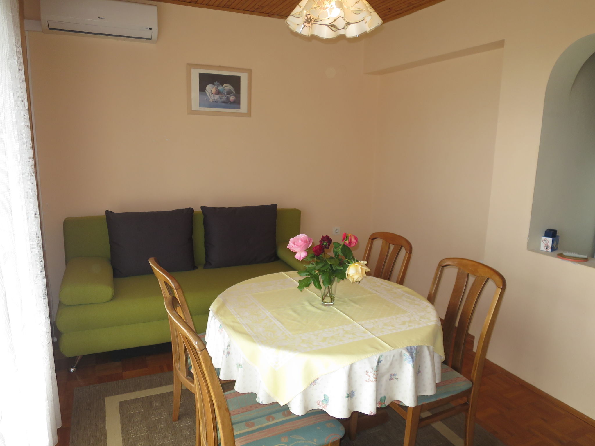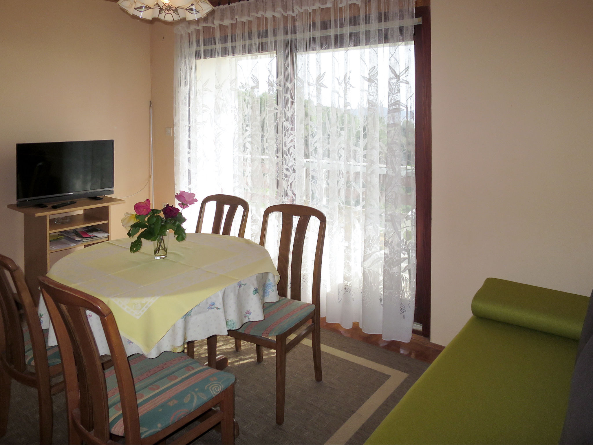Dreifamilienhaus "Katic". Im Weiler Kozino, 9 km vom Zentrum von Zadar, 6 km vom Zentrum von Petrčane, 100 m vom Meer, 100 m vom Strand, in einer Sackgasse. Zur Mitbenutzung: Grundstück 1'200 m2 (eingezäunt), Garten mit Rasen und Bäumen. Terrasse, Gartenmöbel, Grill. Im Hause: Internetzugang. Parkplatz auf dem Grundstück. Einkaufsgeschäft 700 m, Supermarkt 6.5 km, Felsstrand 100 m.