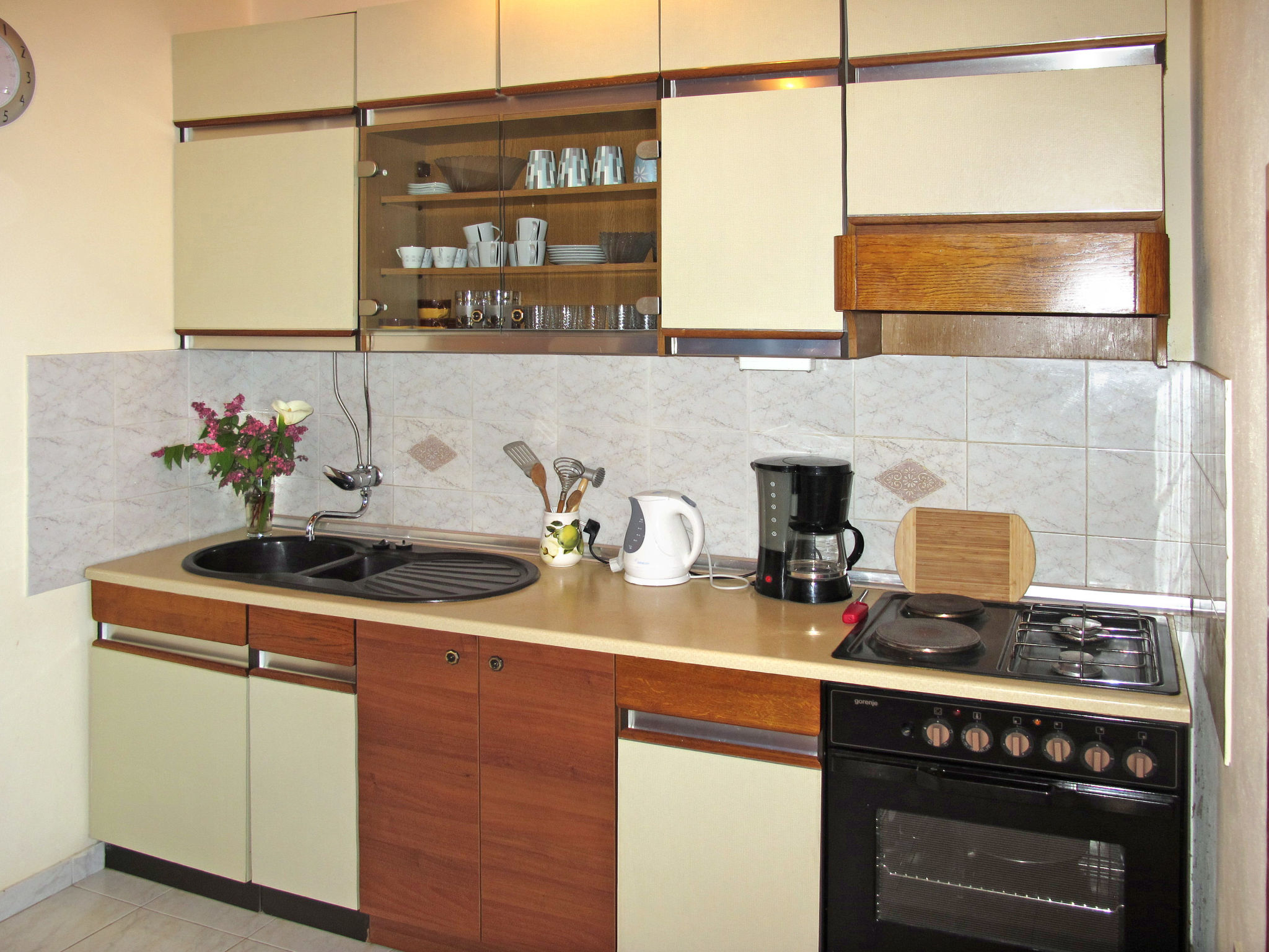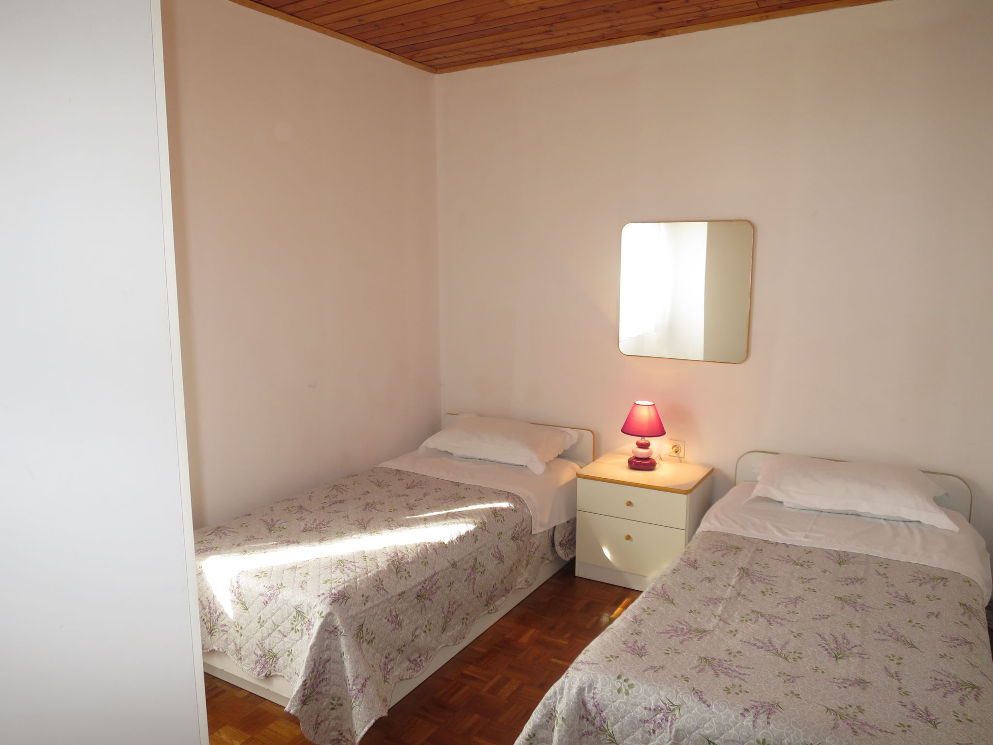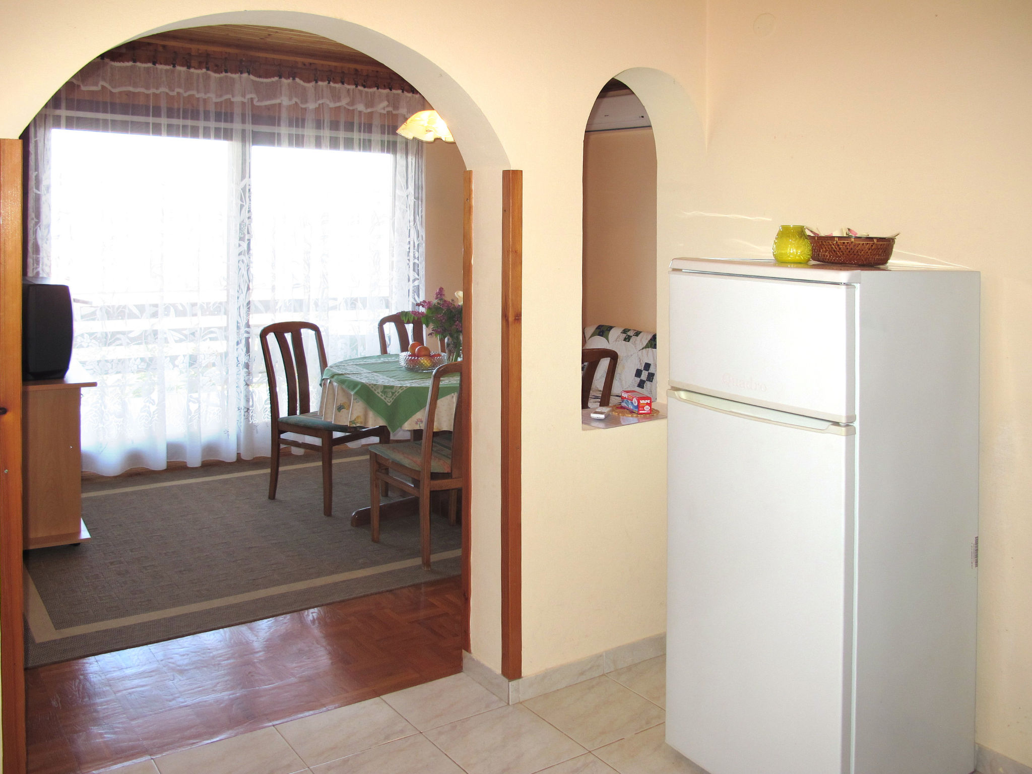 "ZAD300", 3-Zimmer-Wohnung 55 m2 im 1. Stock. Wohn-/Esszimmer mit 1 Diwanbett und Sat-TV (Flachbildschirm), Klimaanlage. Ausgang zum Balkon. 1 Zimmer mit 1 Doppelbett. Ausgang zum Balkon. 1 Zimmer mit 2 Betten. Offene Küche (4 Kochplatten, Backofen, Toaster, Wasserkocher, Tiefkühler, elektrische Kaffeemaschine). Dusche/WC. Warmluftheizung. Balkon. Balkonmöbel. Sicht auf das Meer. Zur Verfügung: Internet (Wireless LAN, gratis). Bitte beachten: Nichtraucher-Haus.