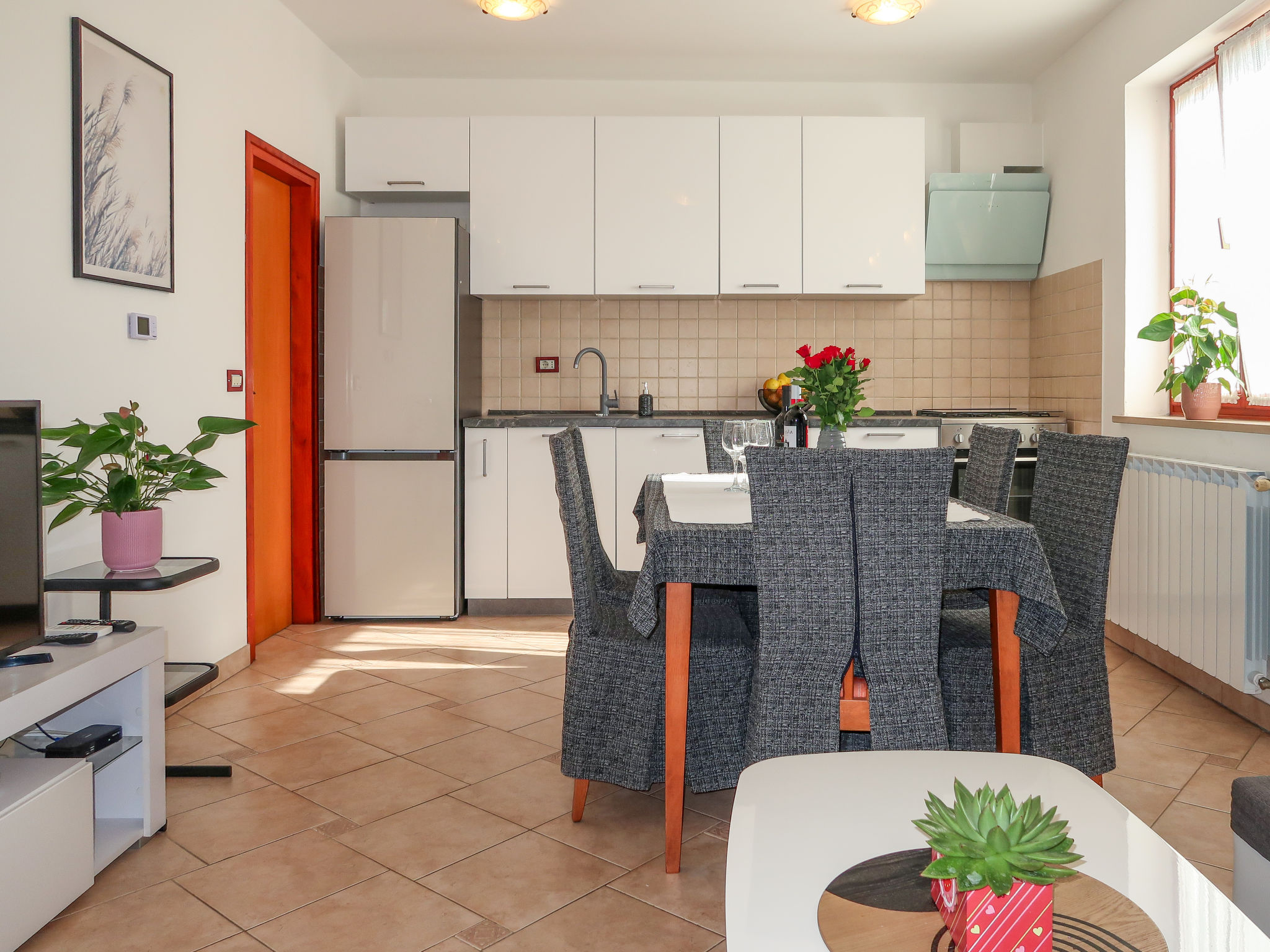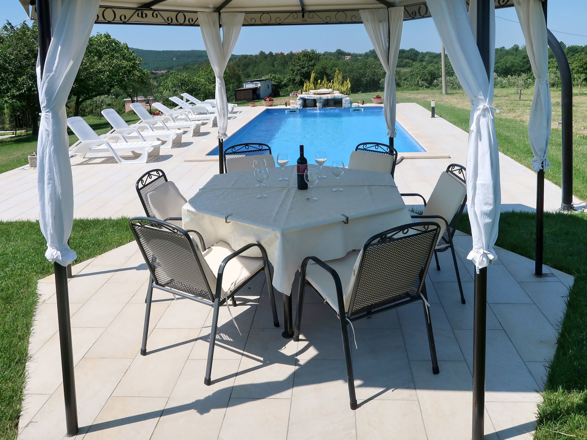 Doppelhaus "Andrea (LBN415)", auf 2 Stockwerken. Im Ortsteil Gondolići, 1 km vom Zentrum von Labin, 5 km vom Zentrum von Rabac, 2.5 km vom Meer, 2.5 km vom Strand. Zur Mitbenutzung: Grundstück 4'000 m2 mit Rasen und Bäumen. Zur Alleinbenutzung: Grundstück 150 m2 mit Rasen, Schwimmbad (34 m2, 130 cm tief, 01.05.-01.10.) mit Innentreppe. Aussendusche, Sitzplatz, Terrasse, Gartenmöbel, Grill (Schaukel), Poolpflege durch den Besitzer/Gärtner. Im Hause: Internetzugang, Waschmaschine. Parkplatz auf dem Grundstück. Einkaufsgeschäft 1 km, Supermarkt 1.5 km, Restaurant 1 km, Kieselstrand 5 km, Felsstrand 2.5 km. Jacht-Hafen 5 km. Besitzer wohnt in separatem Hausteil.