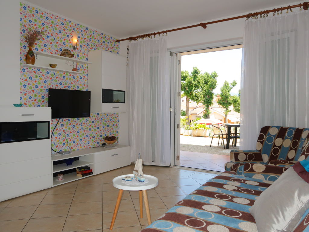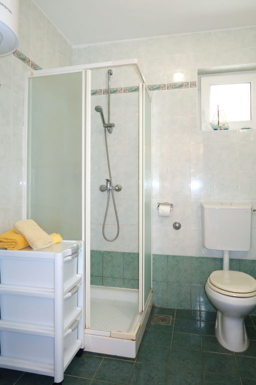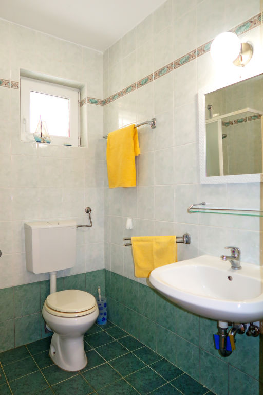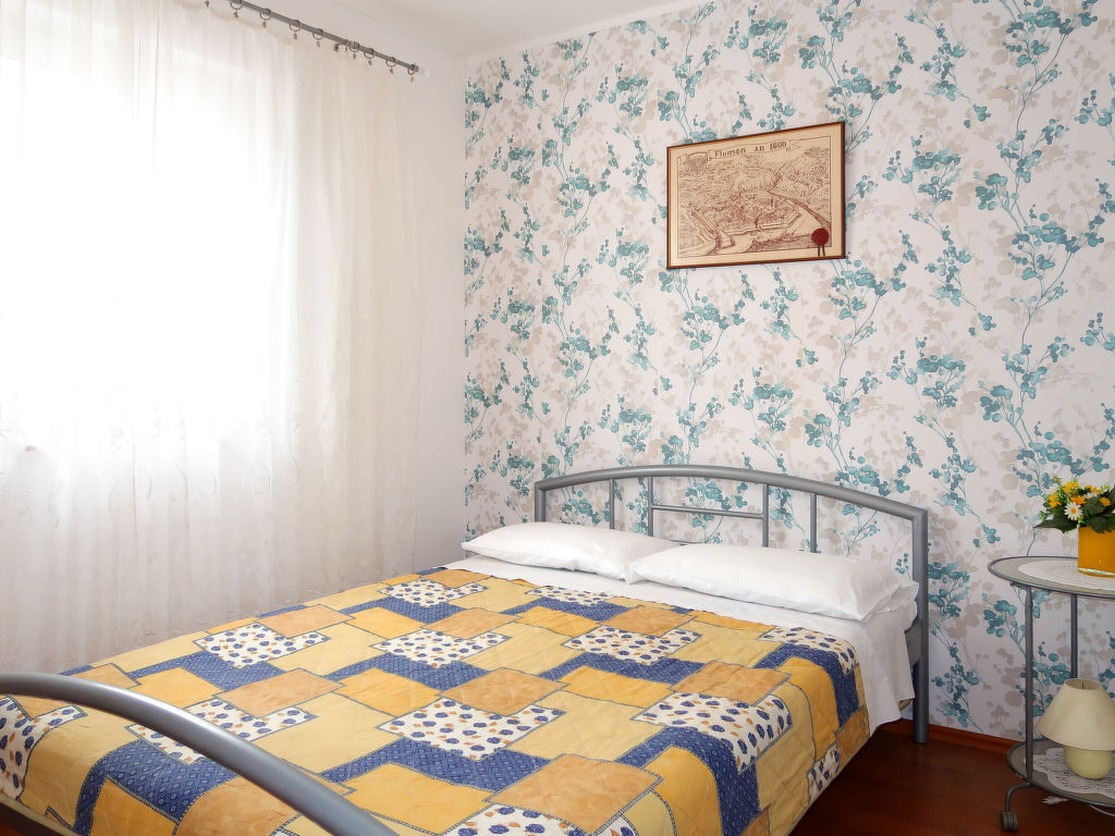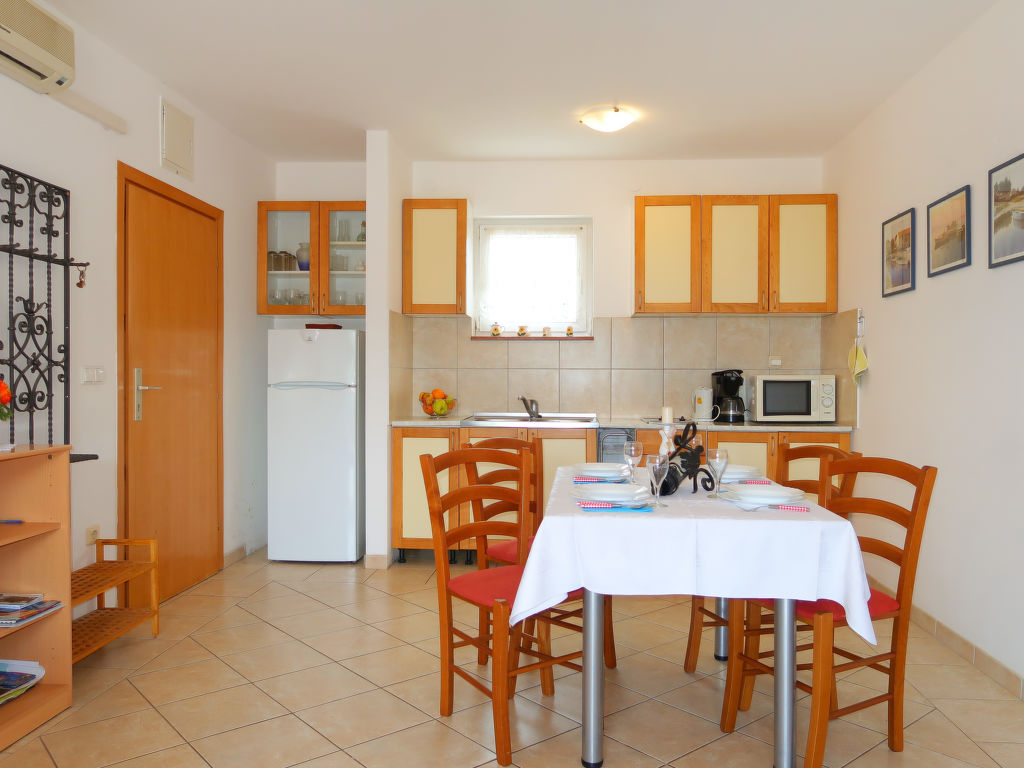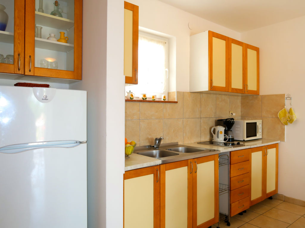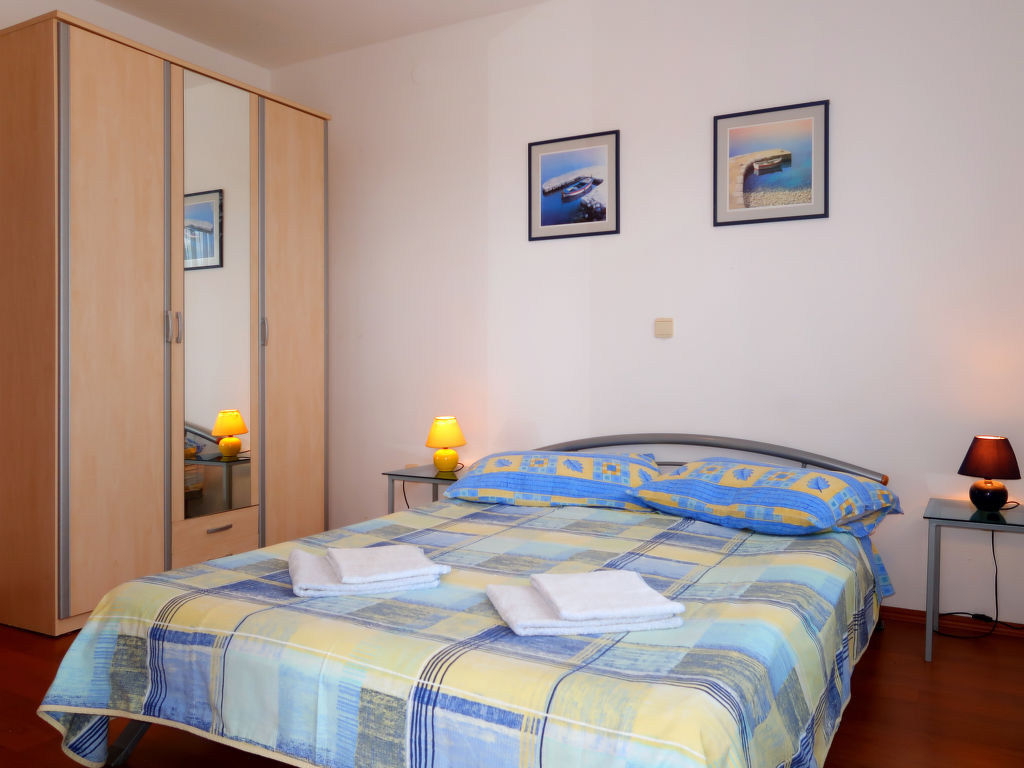 "Mirta (MLK100)", 3-Zimmer-Wohnung 55 m2, im Erdgeschoss. Wohn-/Esszimmer mit 1 Doppeldiwanbett (160 cm, Länge 190 cm), Sat-TV und Klimaanlage. Ausgang zur Terrasse. 1 Zimmer mit 1 franz. Bett. Ausgang zur Terrasse. 1 Zimmer mit 1 franz. Bett. Offene Küche (2 Glaskeramikherd Platten, Toaster, Wasserkocher, Mikrowelle, Tiefkühler, elektrische Kaffeemaschine). Dusche/WC. Terrasse 60 m2. Terrassenmöbel, Gartengrill, Liegestühle (2). Sicht auf das Meer. Zur Verfügung: Kinderhochstuhl, Babybett (extra). Internet (Wireless LAN, gratis). Bitte beachten: Nichtraucher-Haus. Maximal 3 Haustiere/Hunde erlaubt.