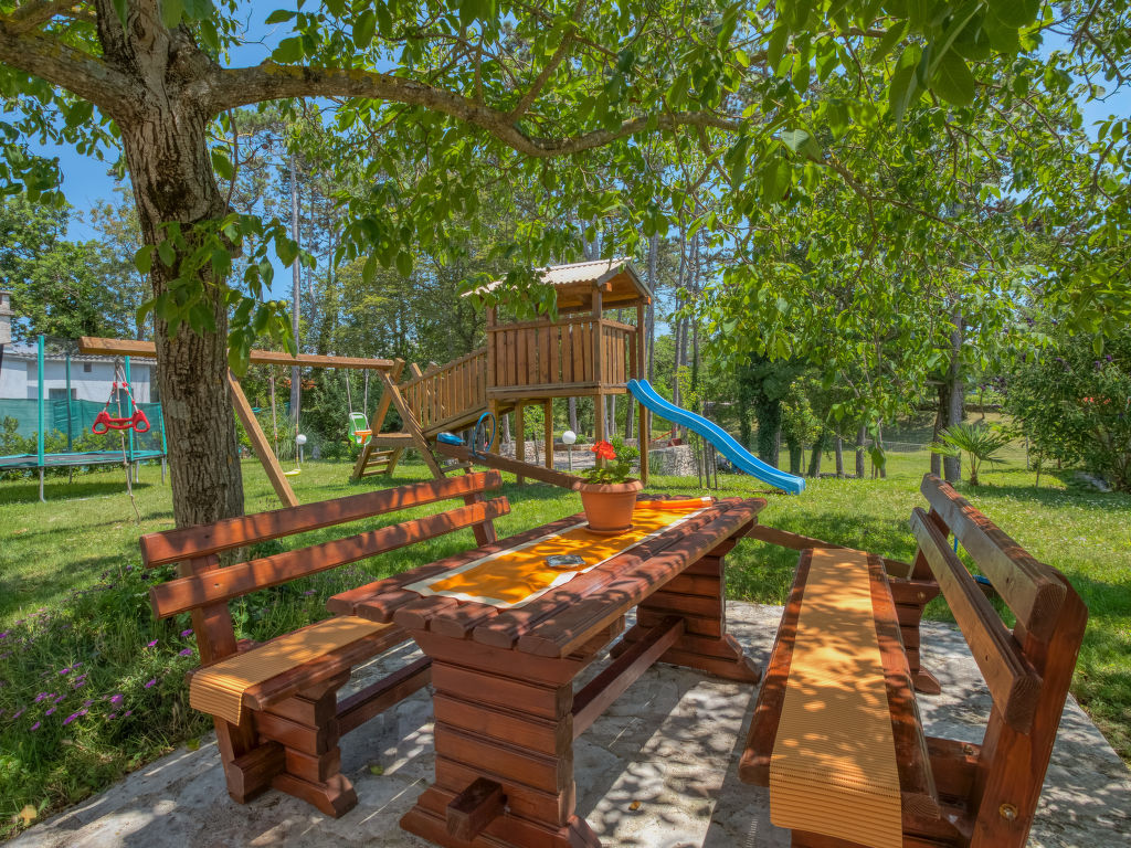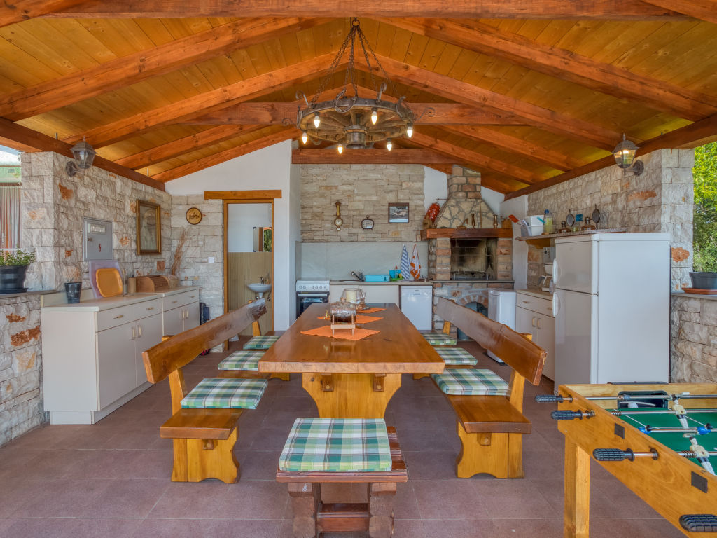 Zweifamilienhaus "Kos (LBN343)", auf 2 Stockwerken. Im Weiler Šumber, 2.5 km vom Zentrum von Nedešćina, 7 km vom Zentrum von Labin, 9 km vom Zentrum von Rabac, 9 km vom Meer. Zur Alleinbenutzung: Grundstück 3'000 m2 mit Bäumen, Wiese, Schwimmbad eckig (8 x 4 m, 135 cm tief, 02.05.-17.10.). WC im Poolbereich, Aussendusche, Tischtennis, Badminton, Sitzplatz, Terrasse, Gartenmöbel, Grill, Kinderspielplatz (Rutschbahn, Schaukel). Im Hause: Internetzugang, Tischfussball, Trampolin, Waschmaschine (extra). Parkplatz auf dem Grundstück. Einkaufsgeschäft 2.5 km, Supermarkt 7 km, Restaurant 2.5 km, Kieselstrand 9 km, Felsstrand 9 km. Jacht-Hafen 9 km. Keine Vermietung an Jugendgruppen. ,Zur Alleinbenutzung: Sommerküche (4 Kochplatten, Geschirrspüler, Backofen, Tiefkühler).