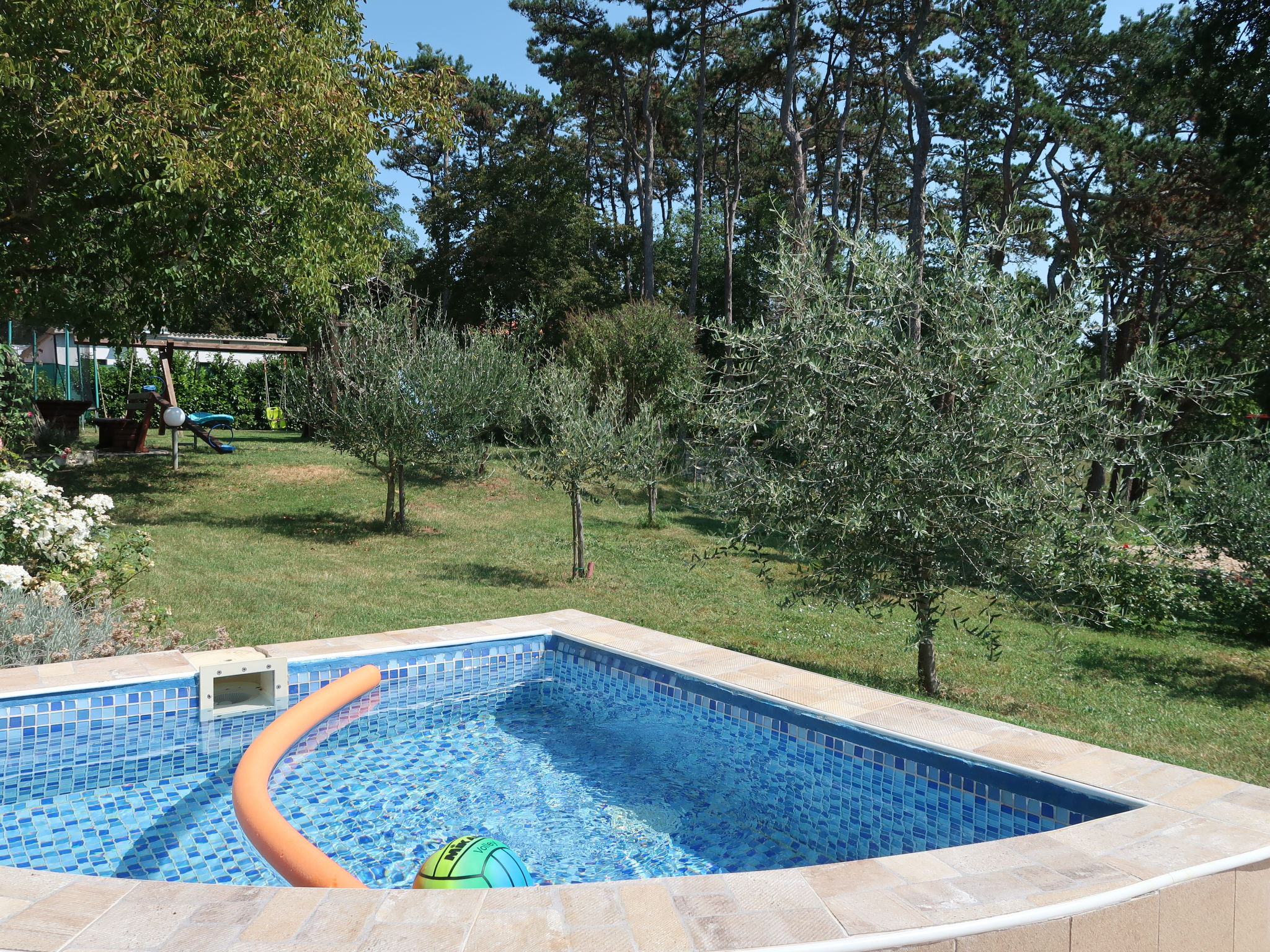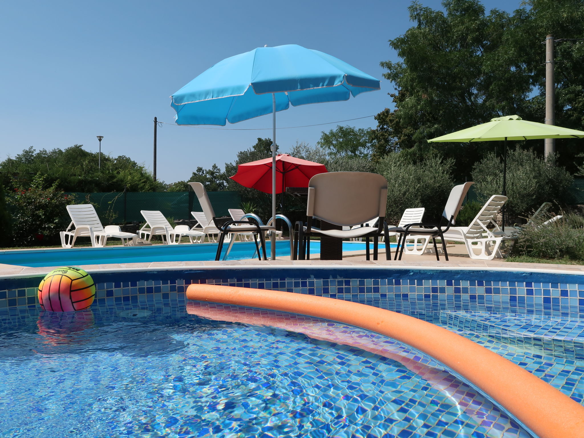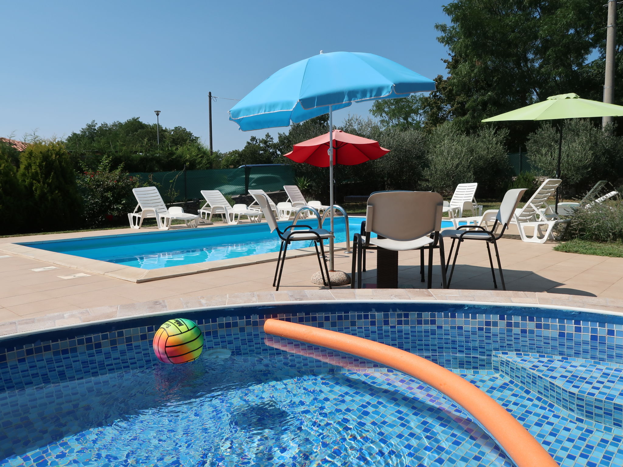 "LBN343", 8-Zimmer-Haus 150 m2 auf 2 Stockwerken. Wohn-/Esszimmer mit Sat-TV und Klimaanlage. 2 Zimmer, jedes Zimmer mit 2 Betten. 1 Zimmer mit 1 franz. Bett (180 cm). Offene Küche (4 Kochplatten, Backofen, Mikrowelle, Tiefkühler, elektrische Kaffeemaschine). Dusche/WC, sep. WC. Obergeschoss: (Aussentreppe) Wohn-/Esszimmer mit Sat-TV und Klimaanlage. Ausgang zum Balkon. 2 Zimmer, jedes Zimmer mit 1 Doppelbett. 1 Zimmer mit 1 Bett. Offene Küche (4 Kochplatten, Backofen, Mikrowelle, elektrische Kaffeemaschine). Bad/Dusche, sep. WC. 2 Balkone, Terrasse 25 m2. Terrassenmöbel, Liegestühle. Zur Verfügung: Bügeleisen, Babybett. Internet (Wireless LAN, gratis). Parkplatz (überdacht, 2 Autos). Bitte beachten: Nichtraucher-Haus. Bei einer Buchung für maximal 6 Personen bleibt der erste Stock geschlossen.