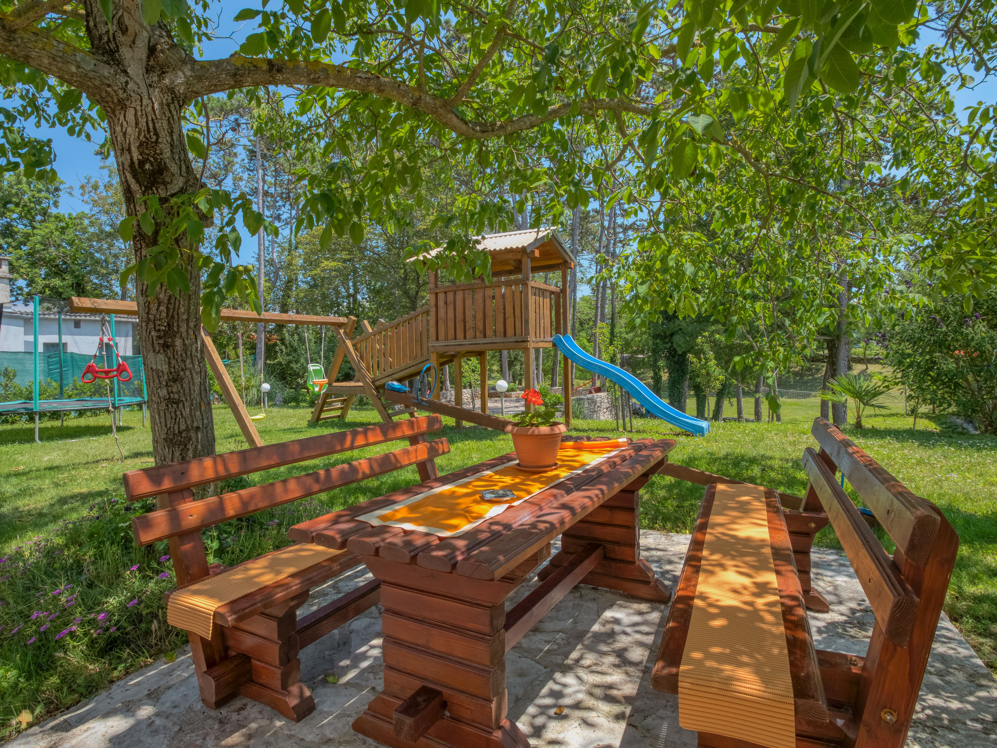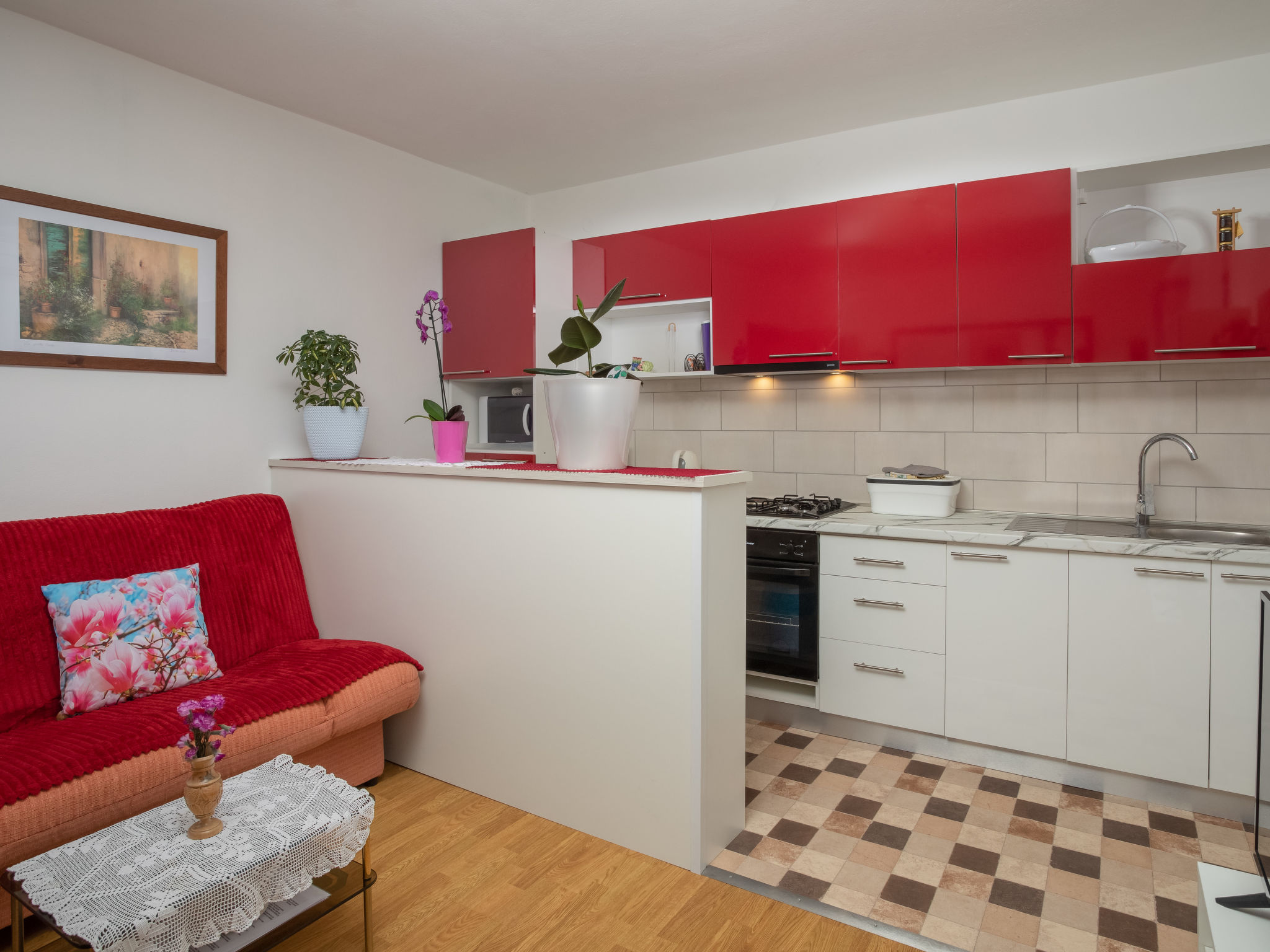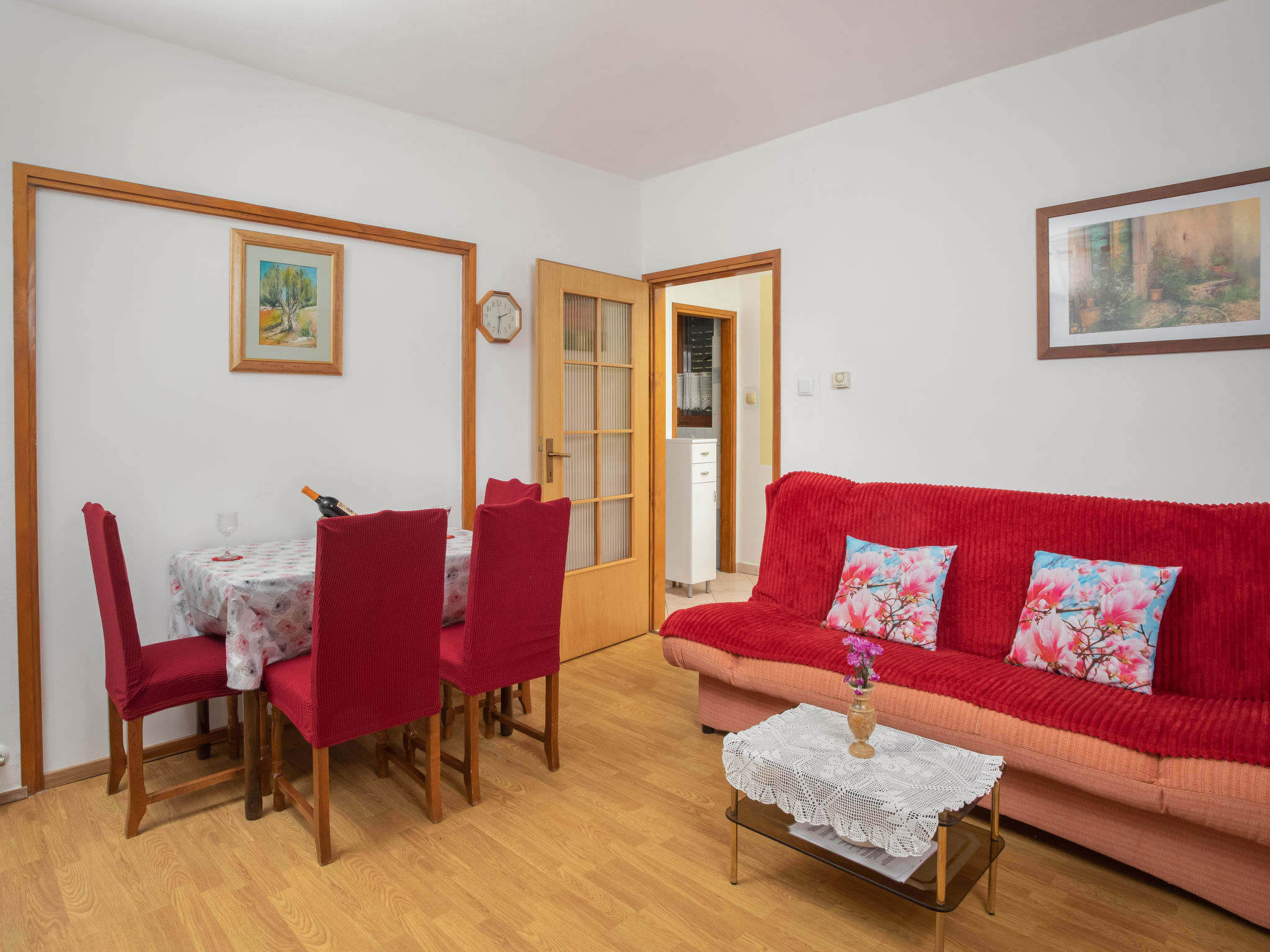 "LBN343", 8-Zimmer-Haus 150 m2 auf 2 Stockwerken. Wohn-/Esszimmer mit Sat-TV und Klimaanlage. 2 Zimmer, jedes Zimmer mit 2 Betten. 1 Zimmer mit 1 franz. Bett (180 cm). Offene Küche (4 Kochplatten, Backofen, Mikrowelle, Tiefkühler, elektrische Kaffeemaschine). Dusche/WC, sep. WC. Obergeschoss: (Aussentreppe) Wohn-/Esszimmer mit Sat-TV und Klimaanlage. Ausgang zum Balkon. 2 Zimmer, jedes Zimmer mit 1 Doppelbett. 1 Zimmer mit 1 Bett. Offene Küche (4 Kochplatten, Backofen, Mikrowelle, elektrische Kaffeemaschine). Bad/Dusche, sep. WC. 2 Balkone, Terrasse 25 m2. Terrassenmöbel, Liegestühle. Zur Verfügung: Bügeleisen, Babybett. Internet (Wireless LAN, gratis). Parkplatz (überdacht, 2 Autos). Bitte beachten: Nichtraucher-Haus. Bei einer Buchung für maximal 6 Personen bleibt der erste Stock geschlossen.