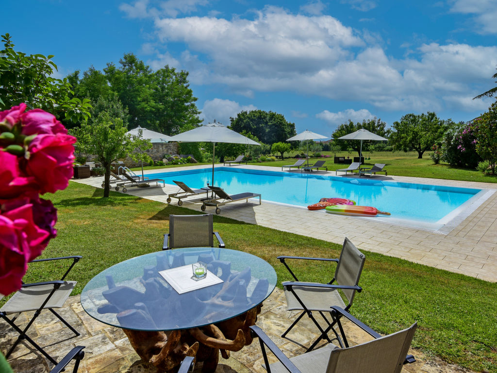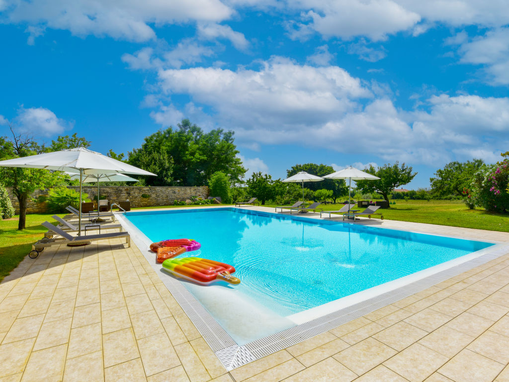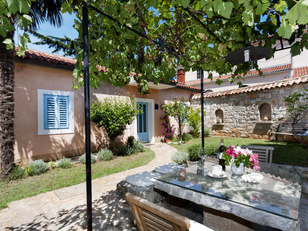 Doppelhaus "Hibiskus". Im Weiler Labinci, 13 km vom Zentrum von Poreč, 800 m vom Zentrum von Kaštelir, 7 km vom Meer, im Grünen. Zur Mitbenutzung: Grundstück 18'000 m2 mit Rasen und Bäumen, Schwimmbad (16 x 8 m, 120 - 180 cm tief, saisonale Verfügbarkeit: 04.Apr.-06.Nov.). Aussendusche, Tischtennis, Terrasse, Gartenmöbel, Kinderspielplatz (Rutschbahn, Schaukel, Sandkasten). Im Hause: Internetzugang, Trampolin. Parkplatz. Einkaufsgeschäft, Restaurant 50 m, Felsstrand 7 km. Kinderspielplatz 30 m.