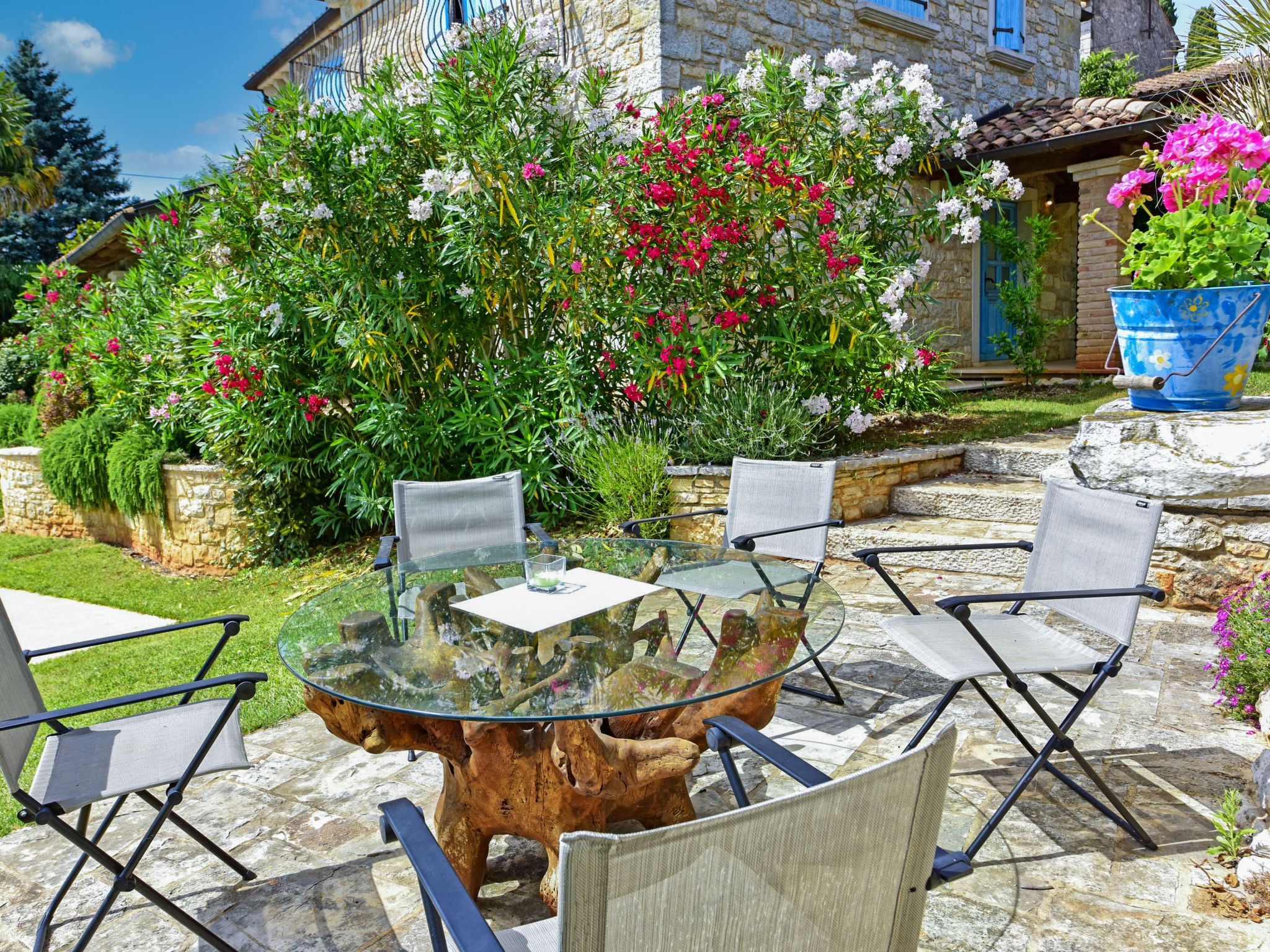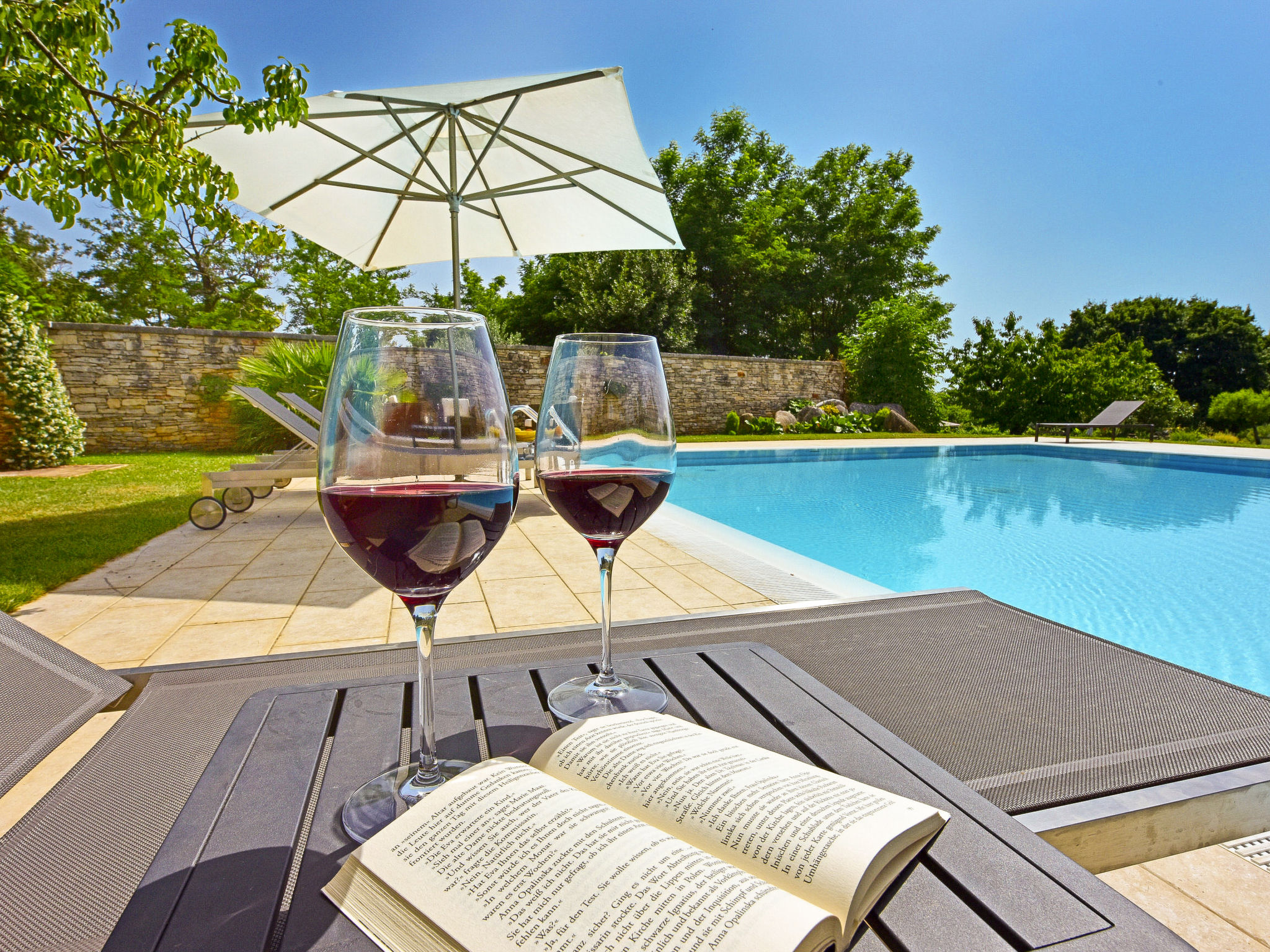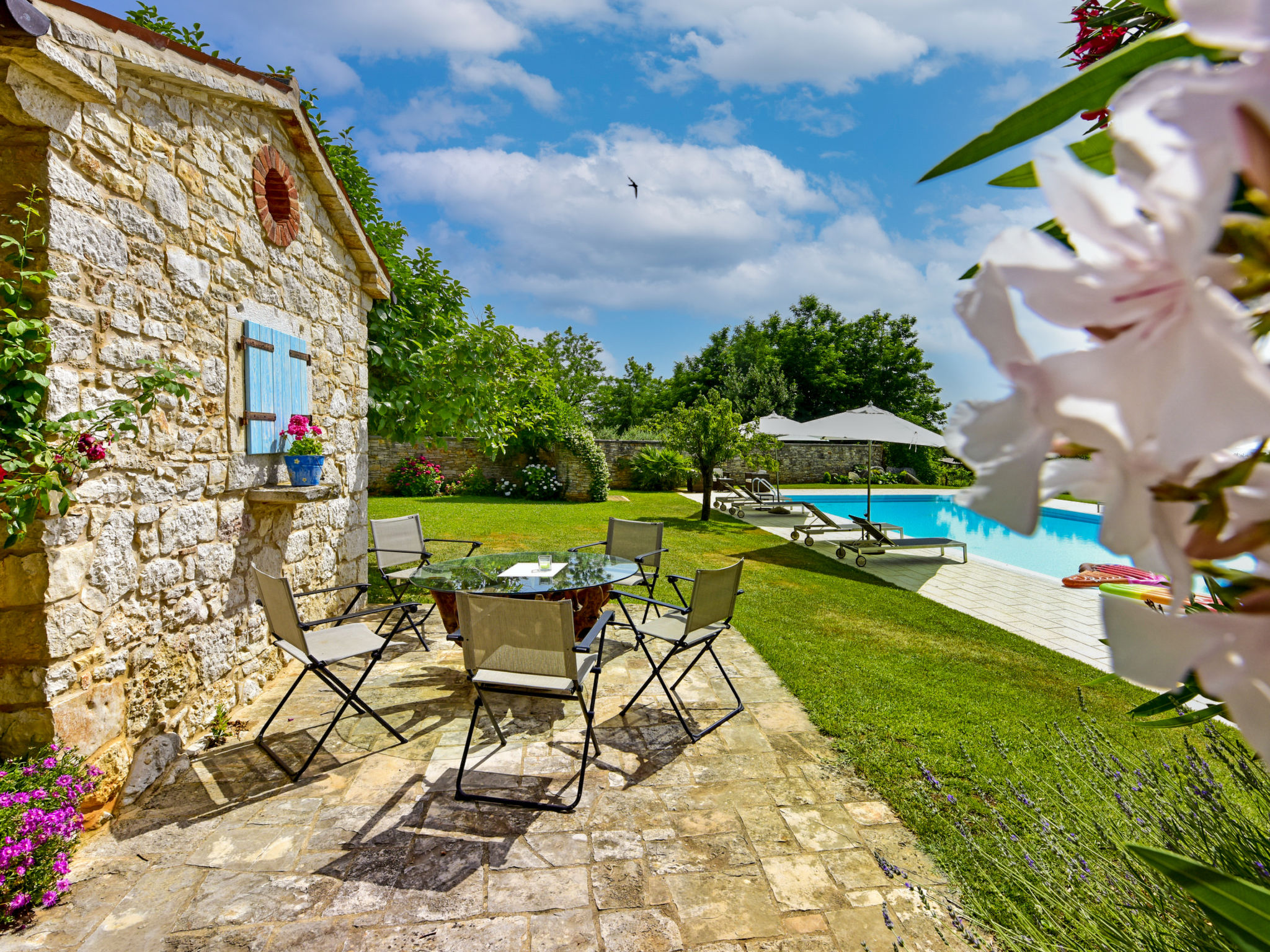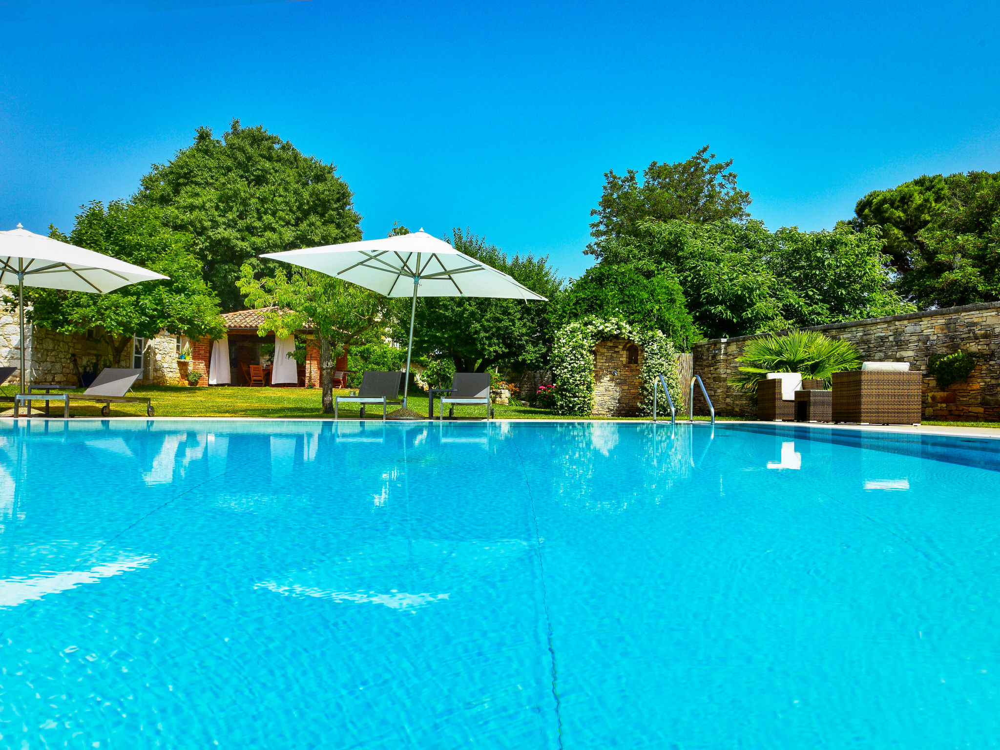Doppelhaus "Hibiskus". Im Weiler Labinci, 13 km vom Zentrum von Poreč, 800 m vom Zentrum von Kaštelir, 7 km vom Meer, im Grünen. Zur Mitbenutzung: Grundstück 18'000 m2 mit Rasen und Bäumen, Schwimmbad (16 x 8 m, 120 - 180 cm tief, saisonale Verfügbarkeit: 04.Apr.-06.Nov.). Aussendusche, Tischtennis, Terrasse, Gartenmöbel, Kinderspielplatz (Rutschbahn, Schaukel, Sandkasten). Im Hause: Internetzugang, Trampolin. Parkplatz. Einkaufsgeschäft, Restaurant 50 m, Felsstrand 7 km. Kinderspielplatz 30 m.