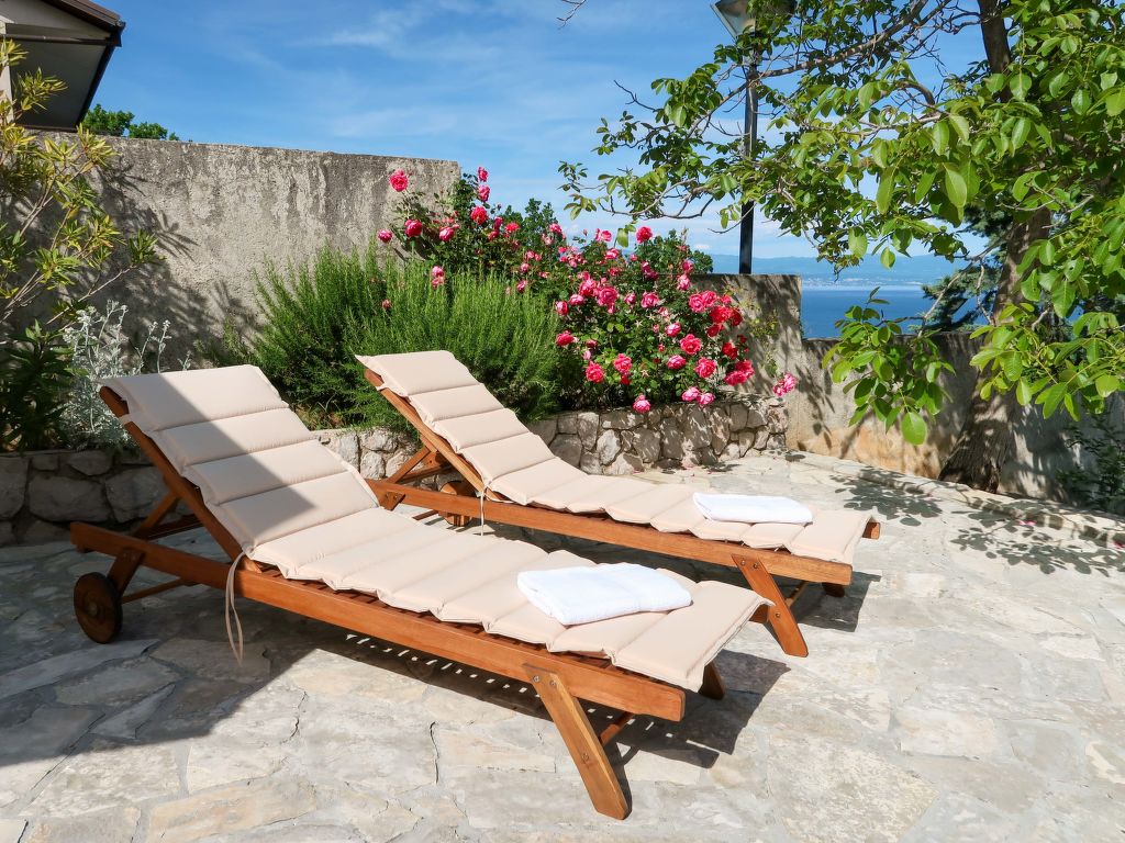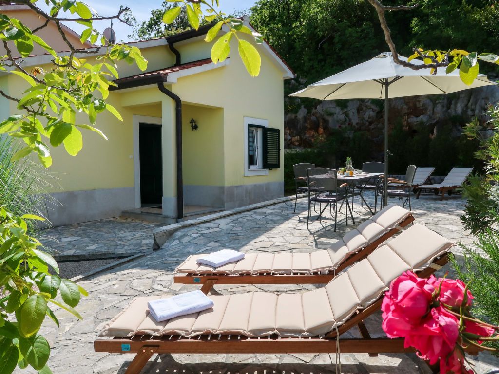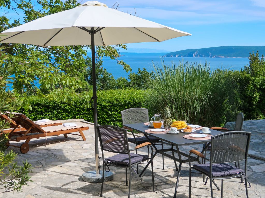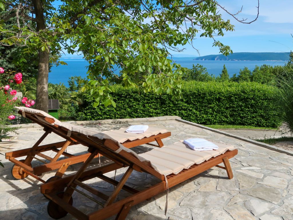 Doppelhaus "Makvic". 1 km vom Zentrum von Mošćenička Draga, 5 km vom Zentrum von Lovran, 10 km vom Zentrum von Opatija, alleinstehende Lage, 300 m vom Meer, 1 km vom Strand, in einer Sackgasse. Zur Mitbenutzung: Grundstück 1'000 m2 (eingezäunt) mit Pflanzen und Bäumen. Zur Alleinbenutzung: Terrasse (60 m2), Gartenmöbel, Grill. Im Hause: Internetzugang, Waschmaschine. Treppenweg (15 Stufen) bis zum Haus. Parkplatz (für 2 Autos) auf dem Grundstück. Einkaufsgeschäft 1 km, Restaurant 1 km, Kieselstrand 1 km. Jacht-Hafen 1 km. Besitzer wohnt in separatem Hausteil.