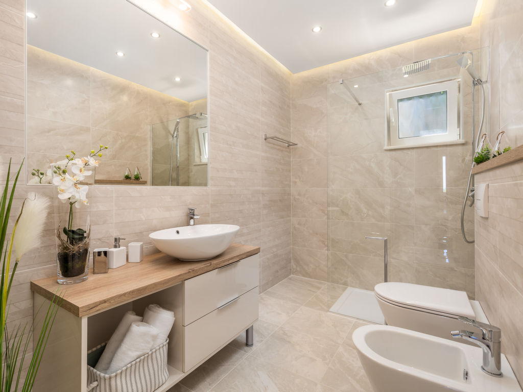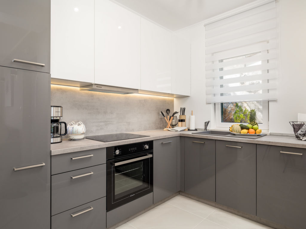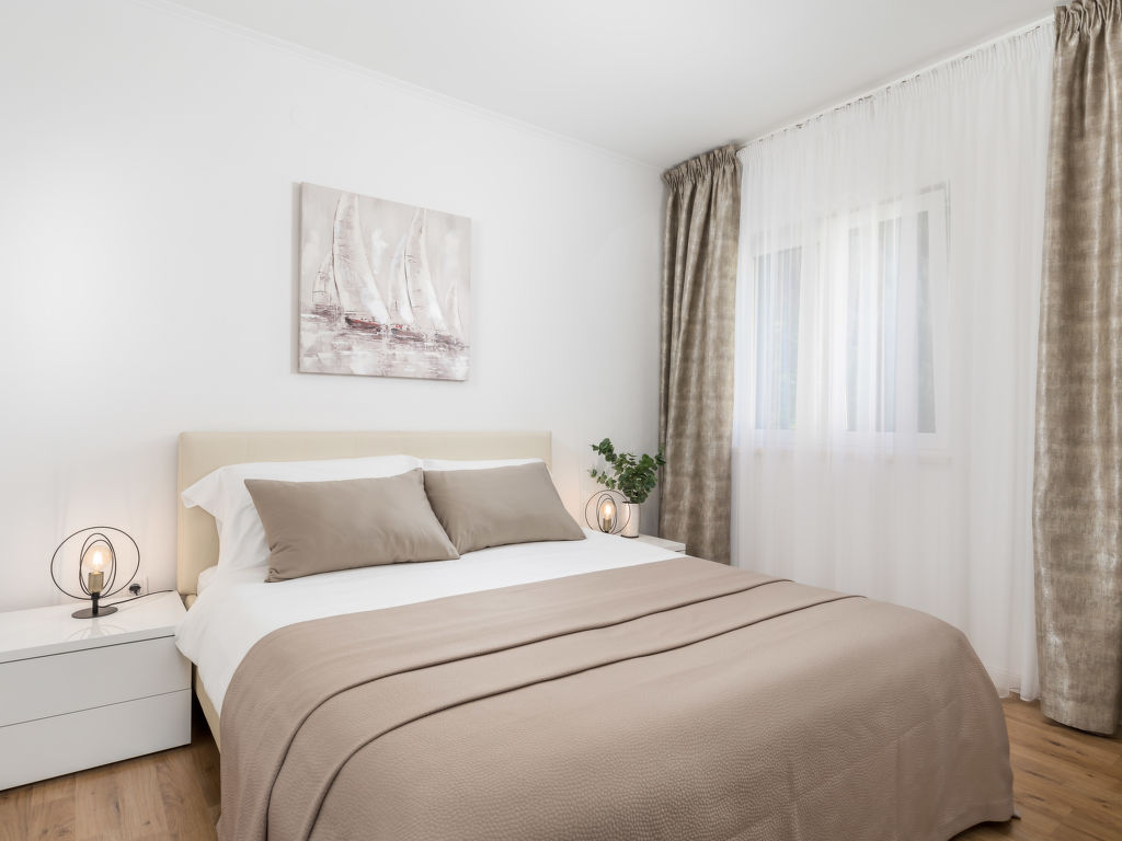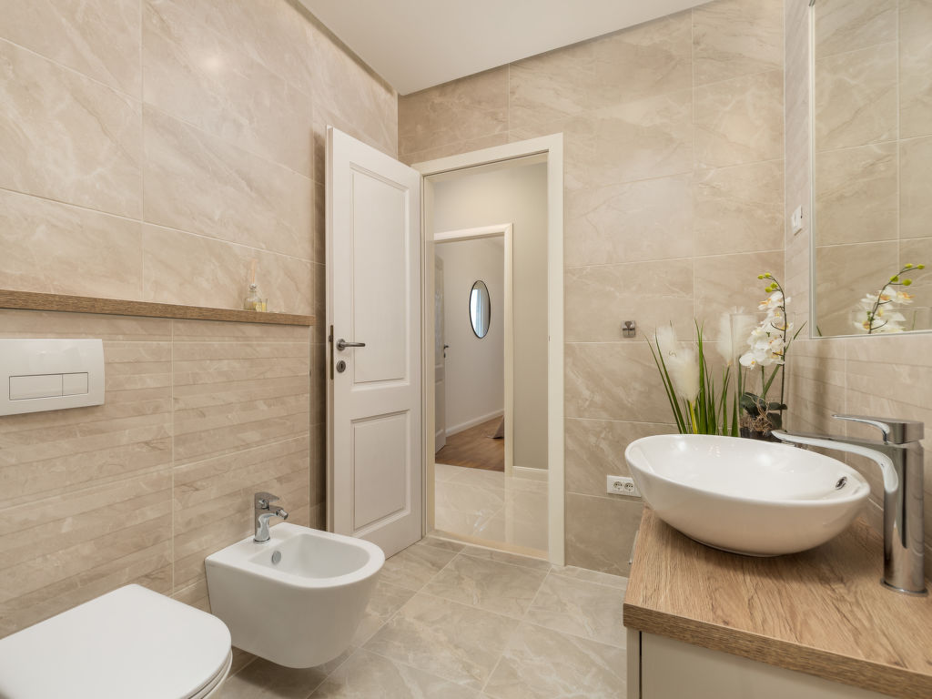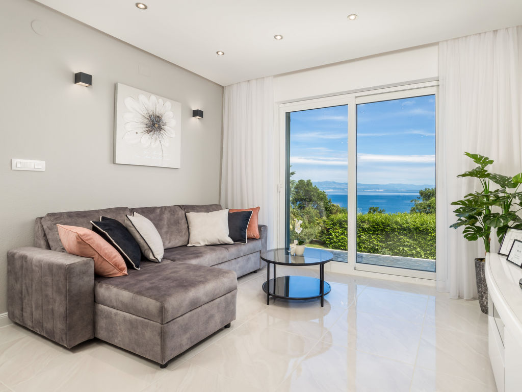 Doppelhaus "Makvic". 1 km vom Zentrum von Mošćenička Draga, 5 km vom Zentrum von Lovran, 10 km vom Zentrum von Opatija, alleinstehende Lage, 300 m vom Meer, 1 km vom Strand, in einer Sackgasse. Zur Mitbenutzung: Grundstück 1'000 m2 (eingezäunt) mit Pflanzen und Bäumen. Zur Alleinbenutzung: Terrasse (60 m2), Gartenmöbel, Grill. Im Hause: Internetzugang, Waschmaschine. Treppenweg (15 Stufen) bis zum Haus. Parkplatz (für 2 Autos) auf dem Grundstück. Einkaufsgeschäft 1 km, Restaurant 1 km, Kieselstrand 1 km. Jacht-Hafen 1 km. Besitzer wohnt in separatem Hausteil.