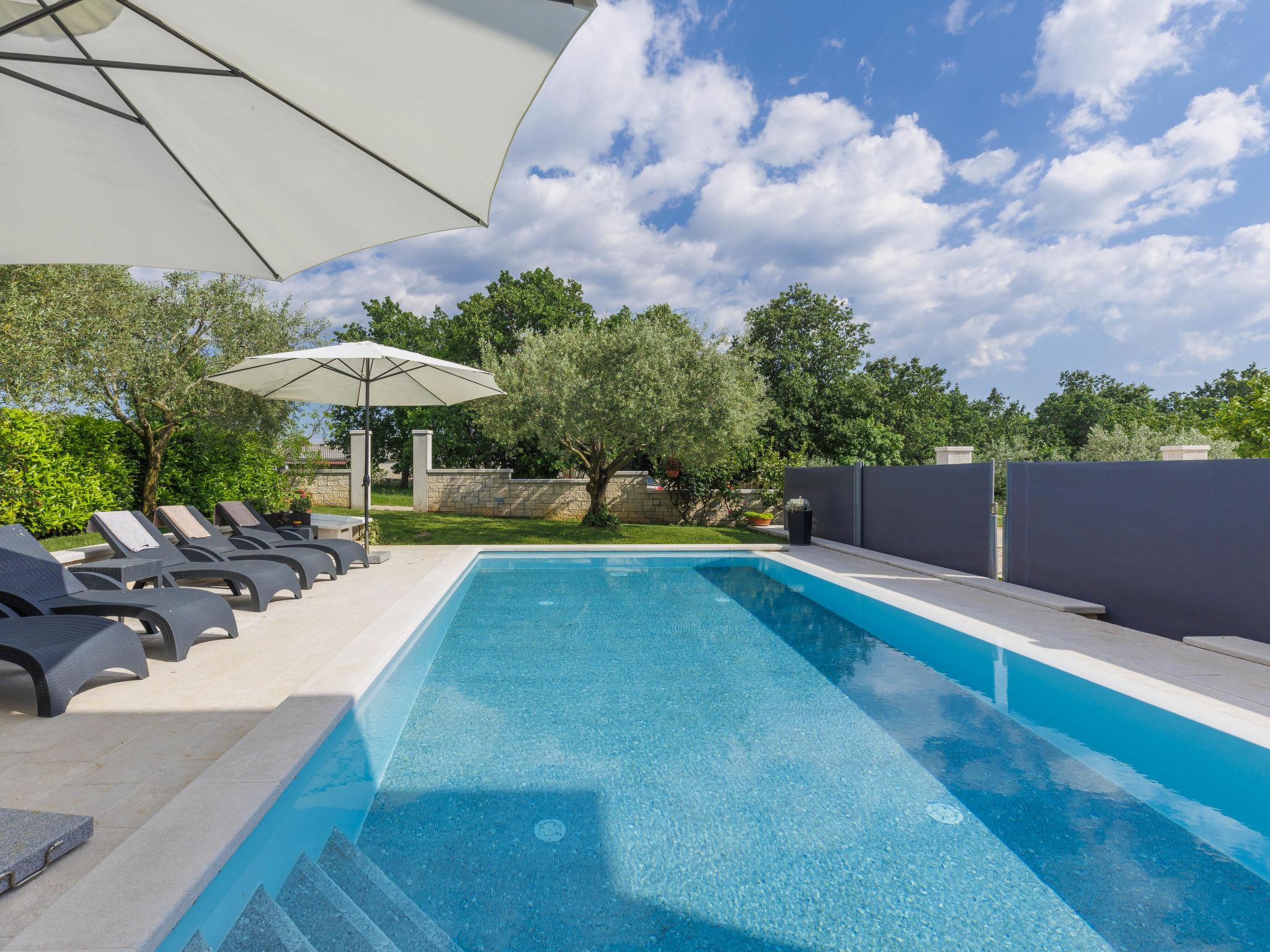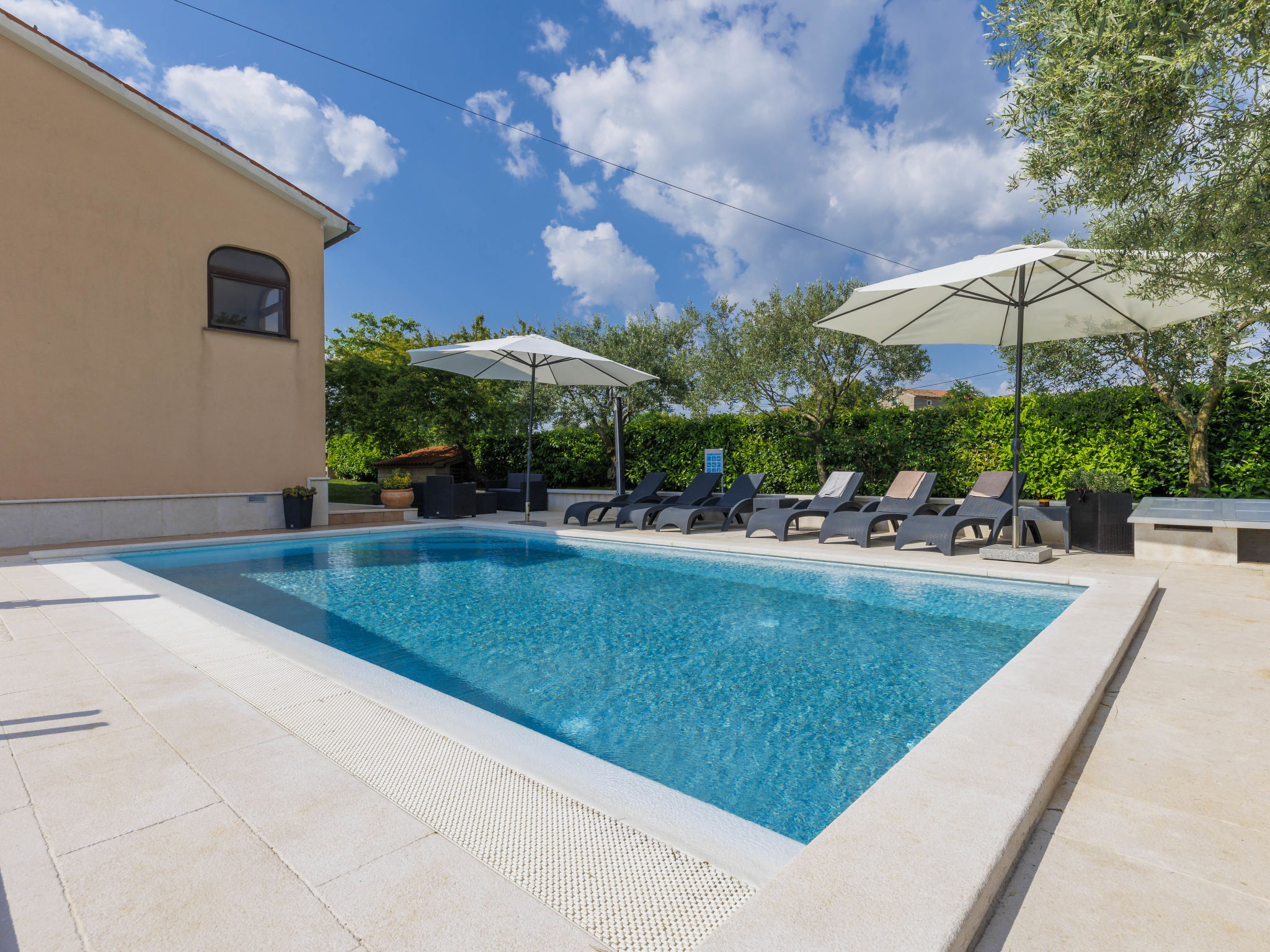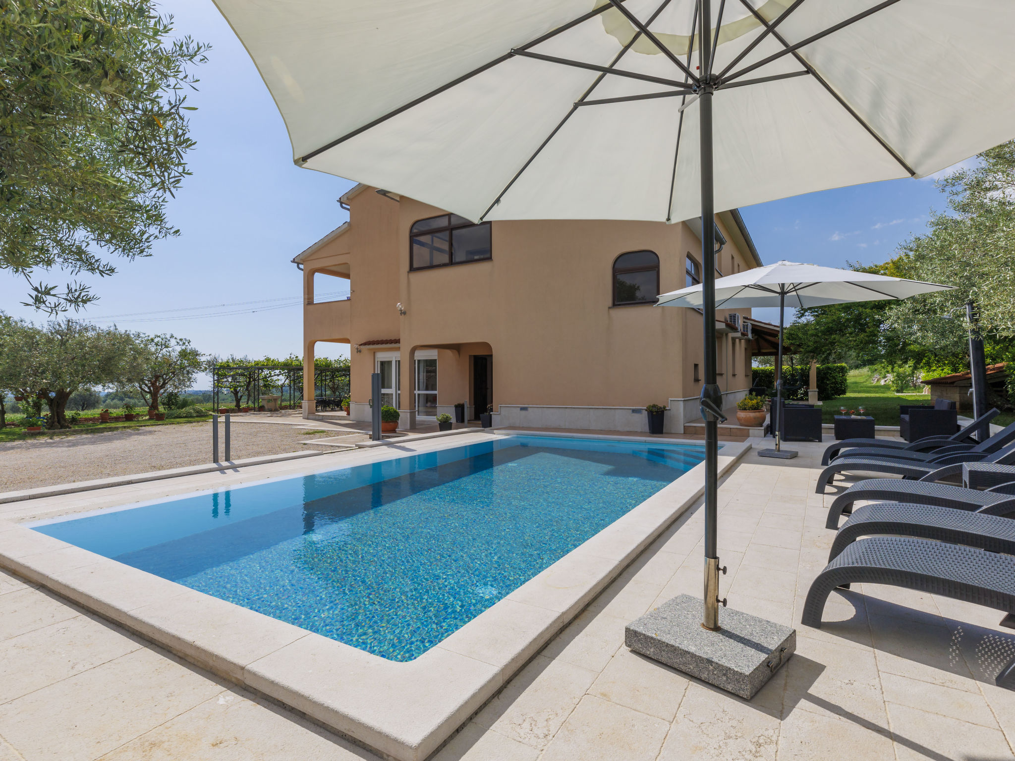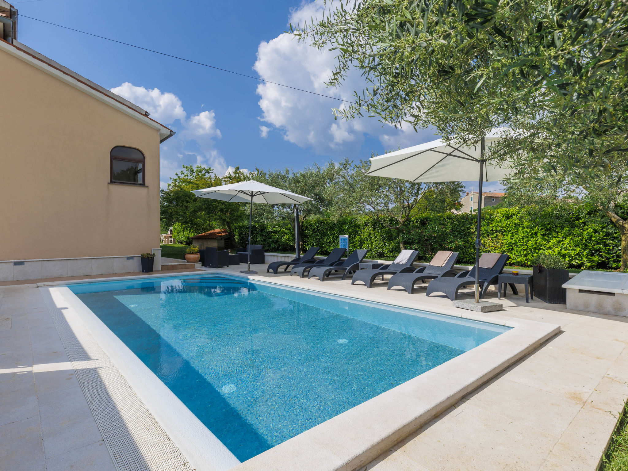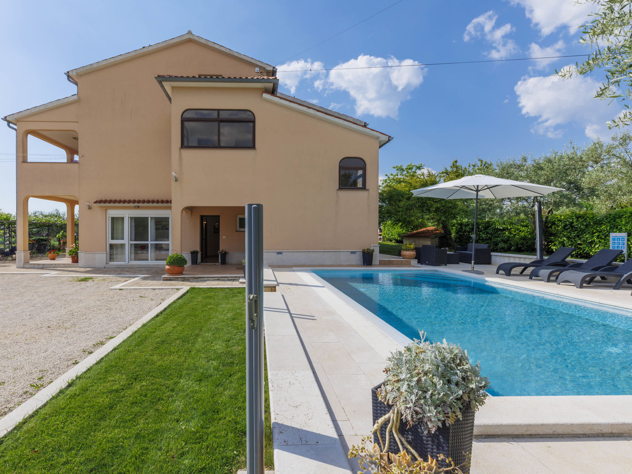 Sv. Lovreč 12 km von Poreč: Schönes Zweifamilienhaus "Mir". Im Weiler Zgrabljići, 3 km vom Zentrum von Sv. Lovreč, ruhige, sonnige Lage, 7 km vom Meer. Zur Alleinbenutzung: Grundstück 200 m2 (eingezäunt), Garten mit Rasen und Pflanzen, Schwimmbad eckig (8 x 4 m, 140 cm tief, 27.04.-12.10.) mit Innentreppe. Aussendusche, Gartenmöbel, Grill (Schaukel). Im Hause: Internetzugang, Trampolin. Parkplatz beim Haus auf dem Grundstück. Einkaufsgeschäft 5 km, Supermarkt 15 km, Restaurant 500 m, Kieselstrand 12 km, Felsstrand 12 km. Reitstall 2 km, Wanderwege ab Haus 100 m, Radweg 150 m. Nahe gelegene Sehenswürdigkeiten: Lim valley 10 km, aquapark 15 km.