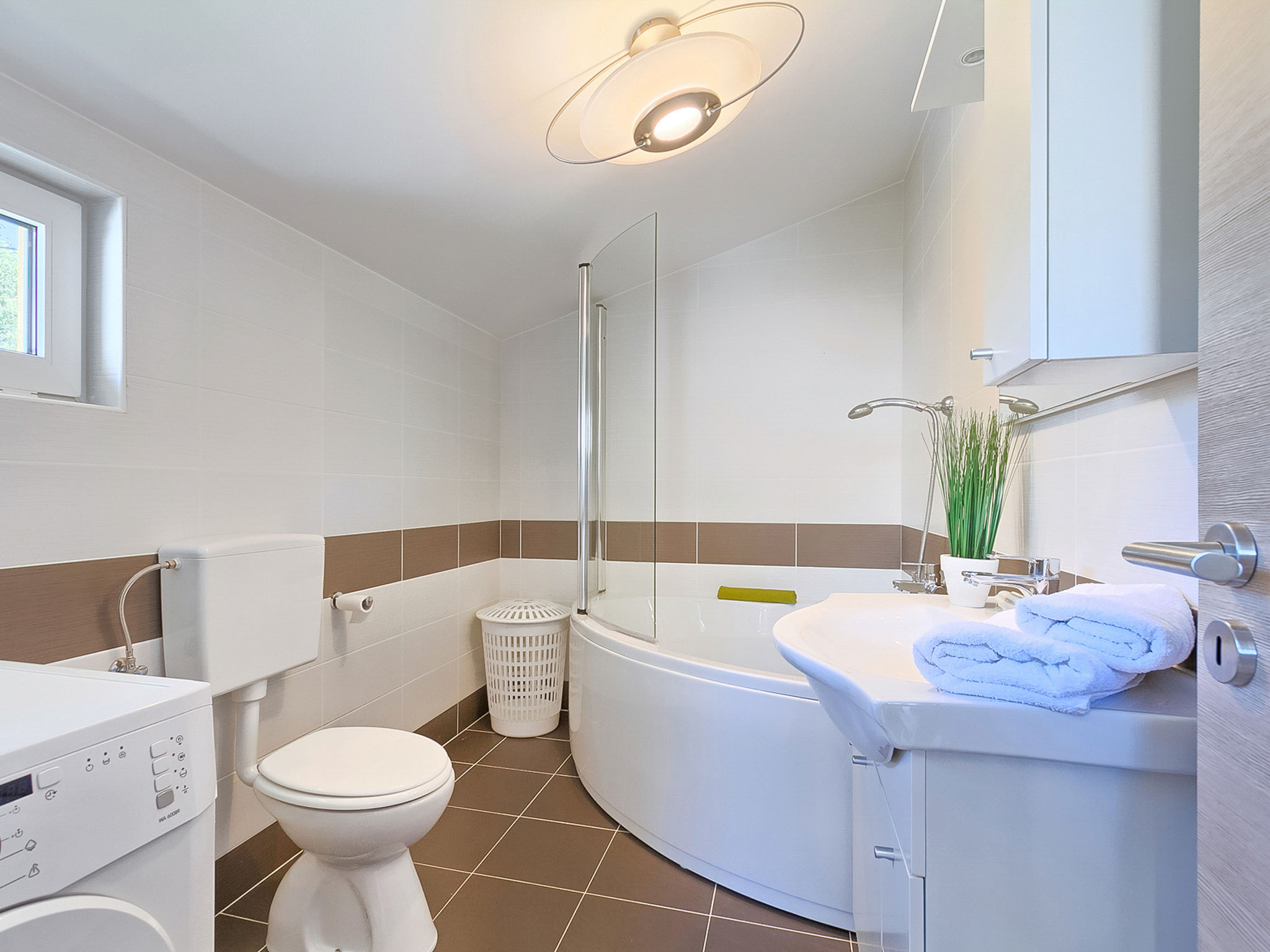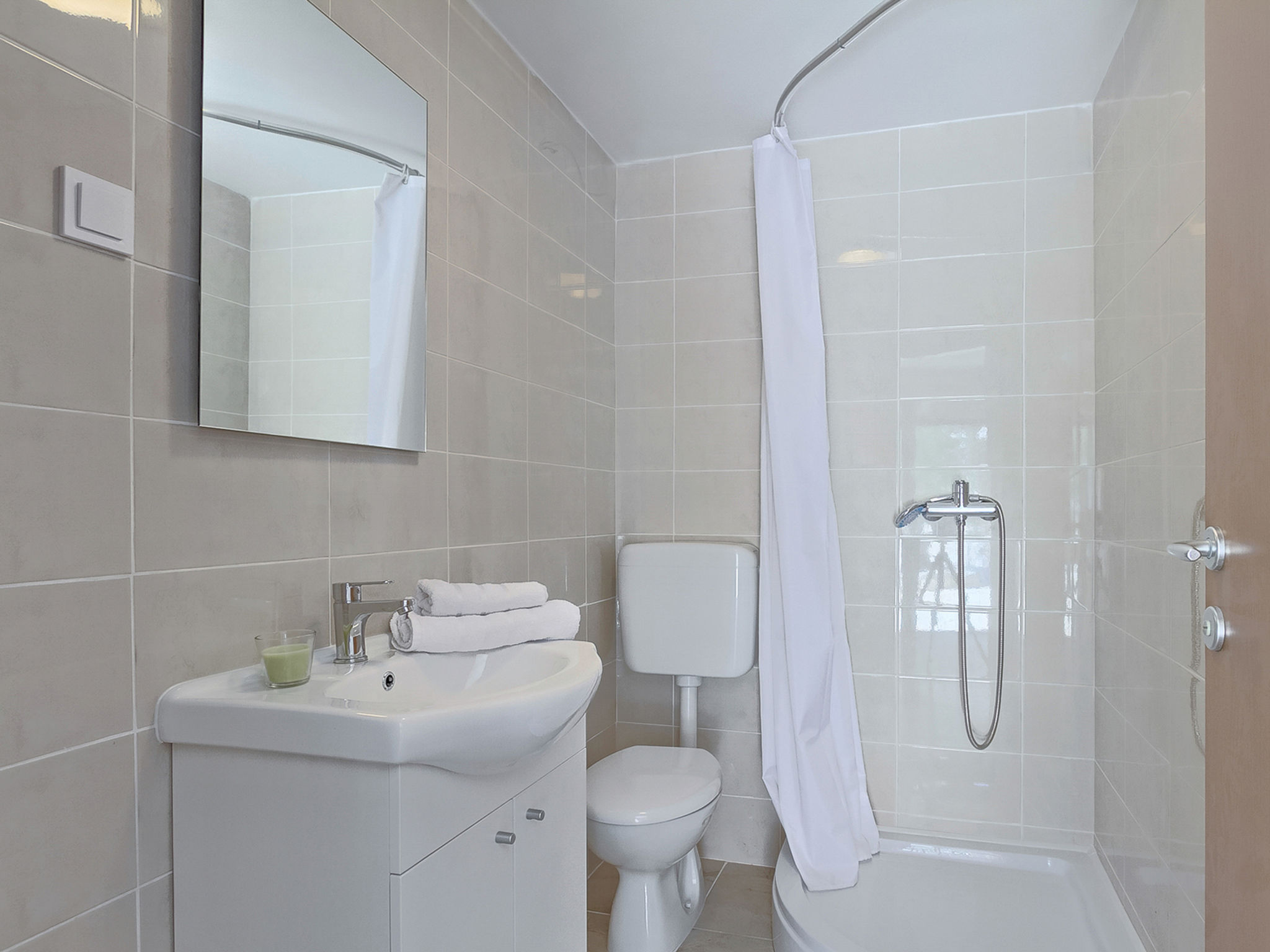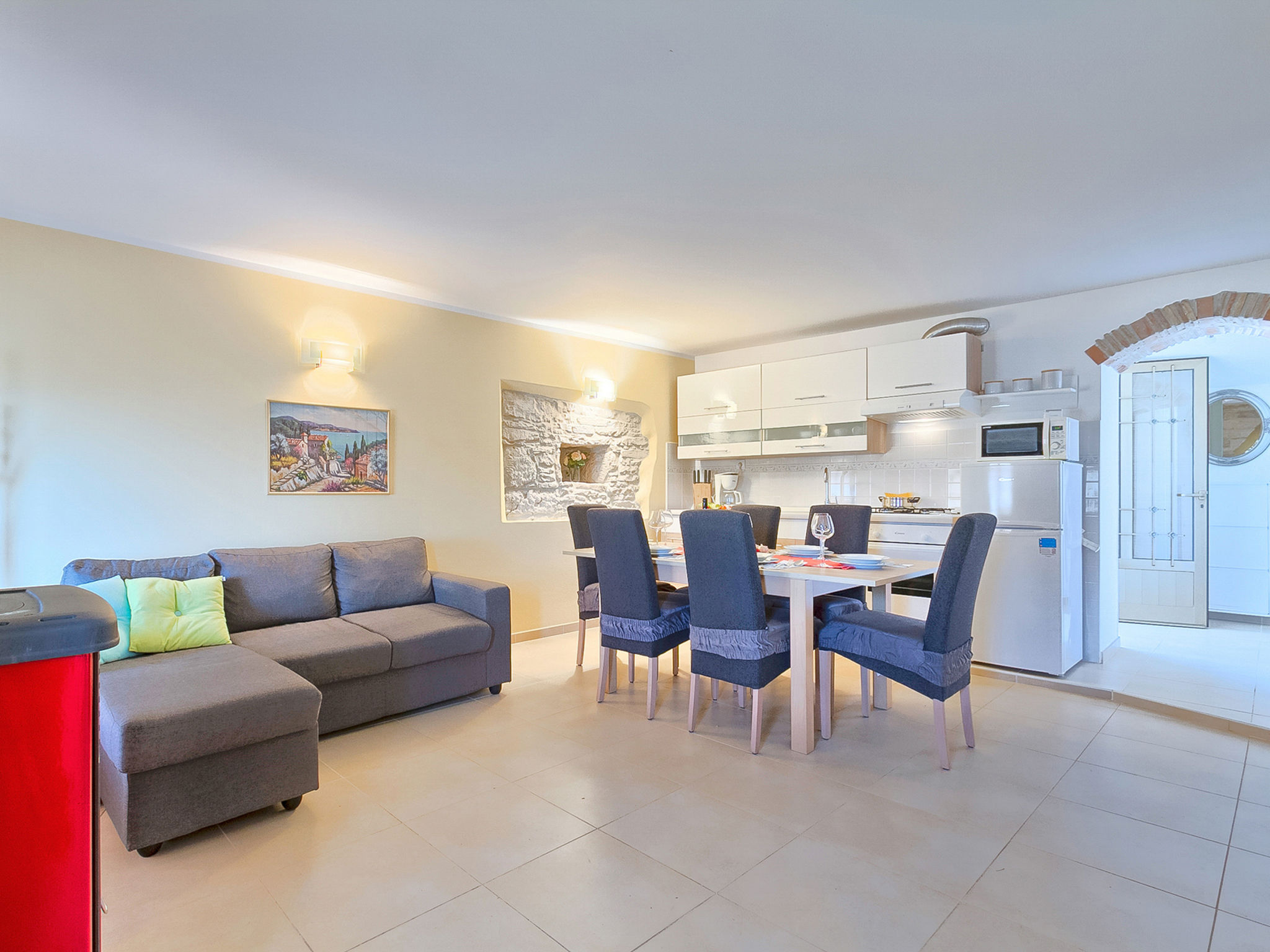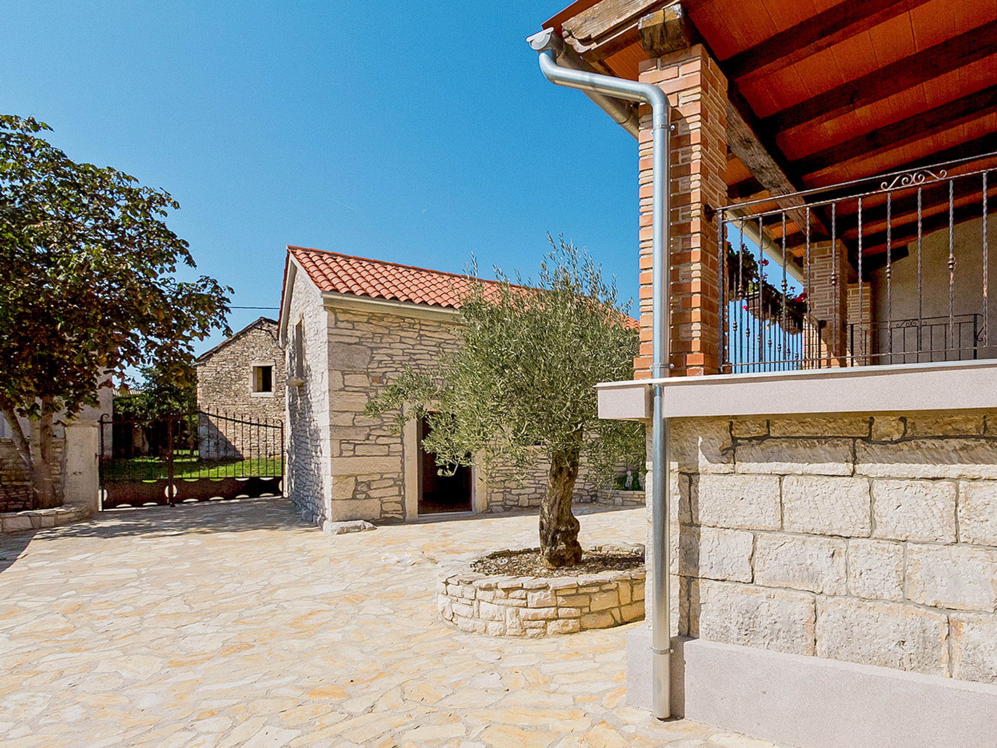5-Zimmer-Doppelhaushälfte 160 m2 auf 2 Stockwerken. Wohn-/Esszimmer mit Sat-TV (Flachbildschirm), DVD und Klimaanlage. Ausgang zur Terrasse. 1 Zimmer mit 1 franz. Bett (160 cm, Länge 200 cm). Offene Küche (4 Kochplatten, Backofen, Mikrowelle, Tiefkühler, elektrische Kaffeemaschine). Ausgang zur Terrasse. Bad/WC, Dusche/WC. Obergeschoss: Eingang mit Klimaanlage. 1 Zimmer mit 1 franz. Bett (160 cm, Länge 200 cm). 1 Zimmer mit 1 franz. Bett (160 cm, Länge 200 cm), Dusche/WC. Abgeschrägte, offene Galerie, Deckenhöhe 140 - 250 cm mit 1 Doppeldiwanbett (160 cm, Länge 200 cm), TV (Flachbildschirm), Stereoanlage und Klimaanlage. Terrasse 10 m2, überdacht, Terrasse 15 m2, überdacht. Terrassenmöbel, Liegestühle. Schöne Sicht auf das Schwimmbad und die Landschaft. Zur Verfügung: Safe, Babybett, Haartrockner. Internet (Wireless LAN, gratis). 1 Haustier/Hund erlaubt. Das Haupthaus mit Wohn-/Essbereich, einer offenen Küche und einem Schlafzimmer im Erdgeschoss und mit 2 Schlafzimmern im ersten Stock. Im Ferienhaus gibt es ein Zimmer mit 2 Fitnessgeräten, eine Dusche/WC im Erdgeschoss und eine offene Galerie, eine Doppel-Schlafcouch, einen Fernseher (Flachbildschirm), eine Stereo-Anlage und Klimaanlage im ersten Stock.
