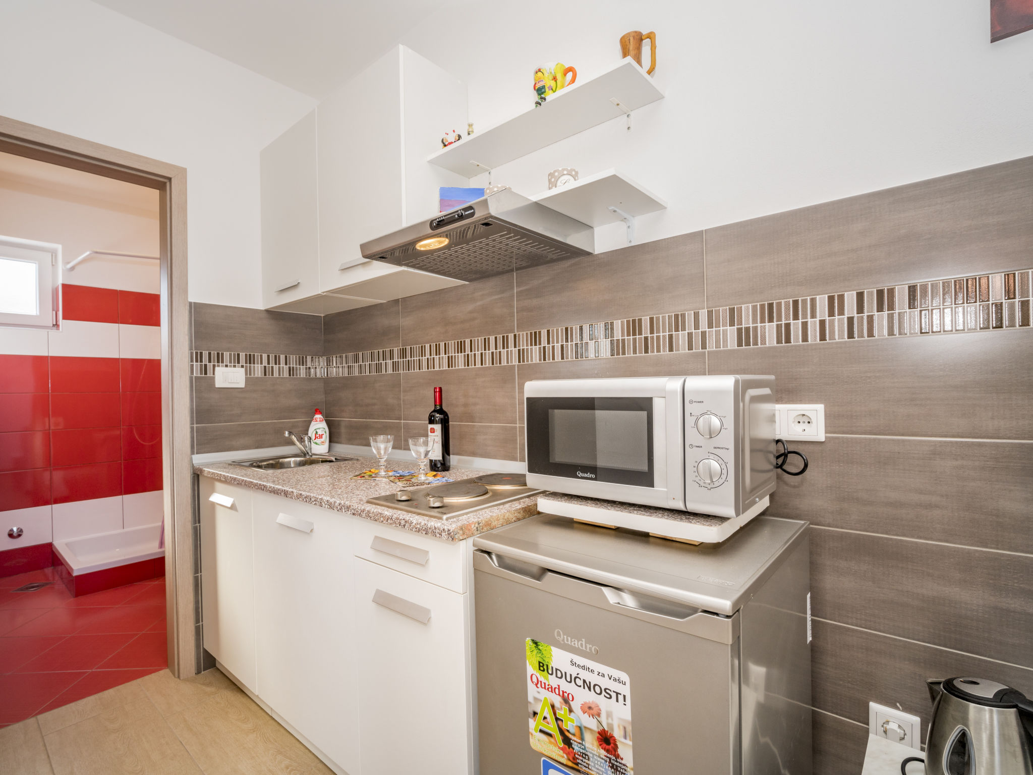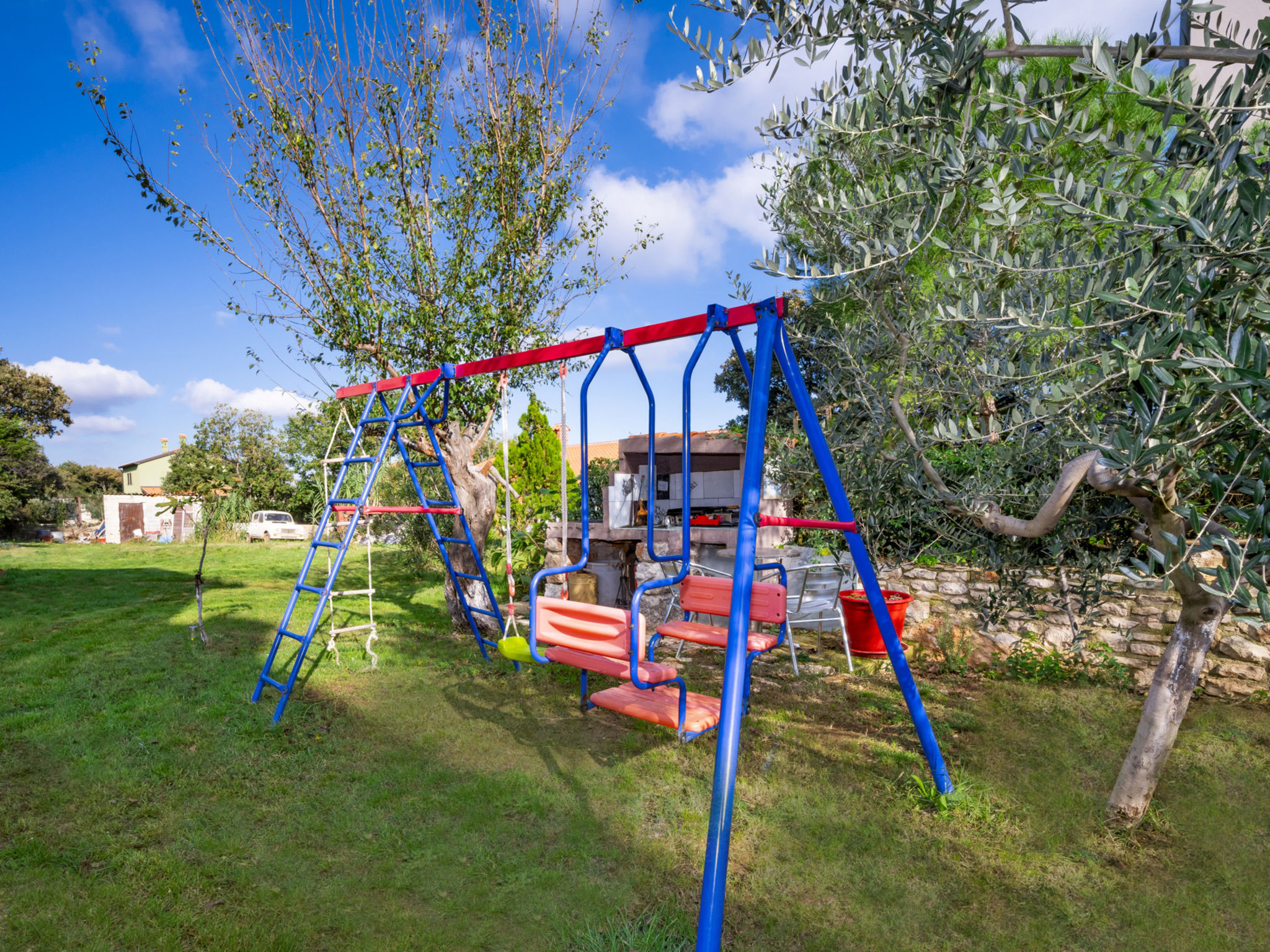 Ližnjan 2 km von Medulin: Mehrfamilienhaus "B&B". 300 m vom Zentrum von Ližnjan, ruhige, sonnige Lage, 1 km vom Meer, 1 km vom Strand. Zur Mitbenutzung: Grundstück 800 m2, kleiner Garten mit Rasen und Pflanzen. Terrasse (10 m2), Gartenmöbel, Grill (Schaukel). Im Hause: Internetzugang, Trampolin, Waschmaschine (zur Mitbenutzung, extra). Parkplatz beim Haus auf dem Grundstück. Einkaufsgeschäft, Restaurant 100 m, Sandstrand 1.5 km, Kieselstrand 1 km, Felsstrand 1 km. Golfplatz 4 km, Tennis 100 m, Reitstall 1.5 km, Wanderwege ab Haus 100 m, Radweg 150 m.