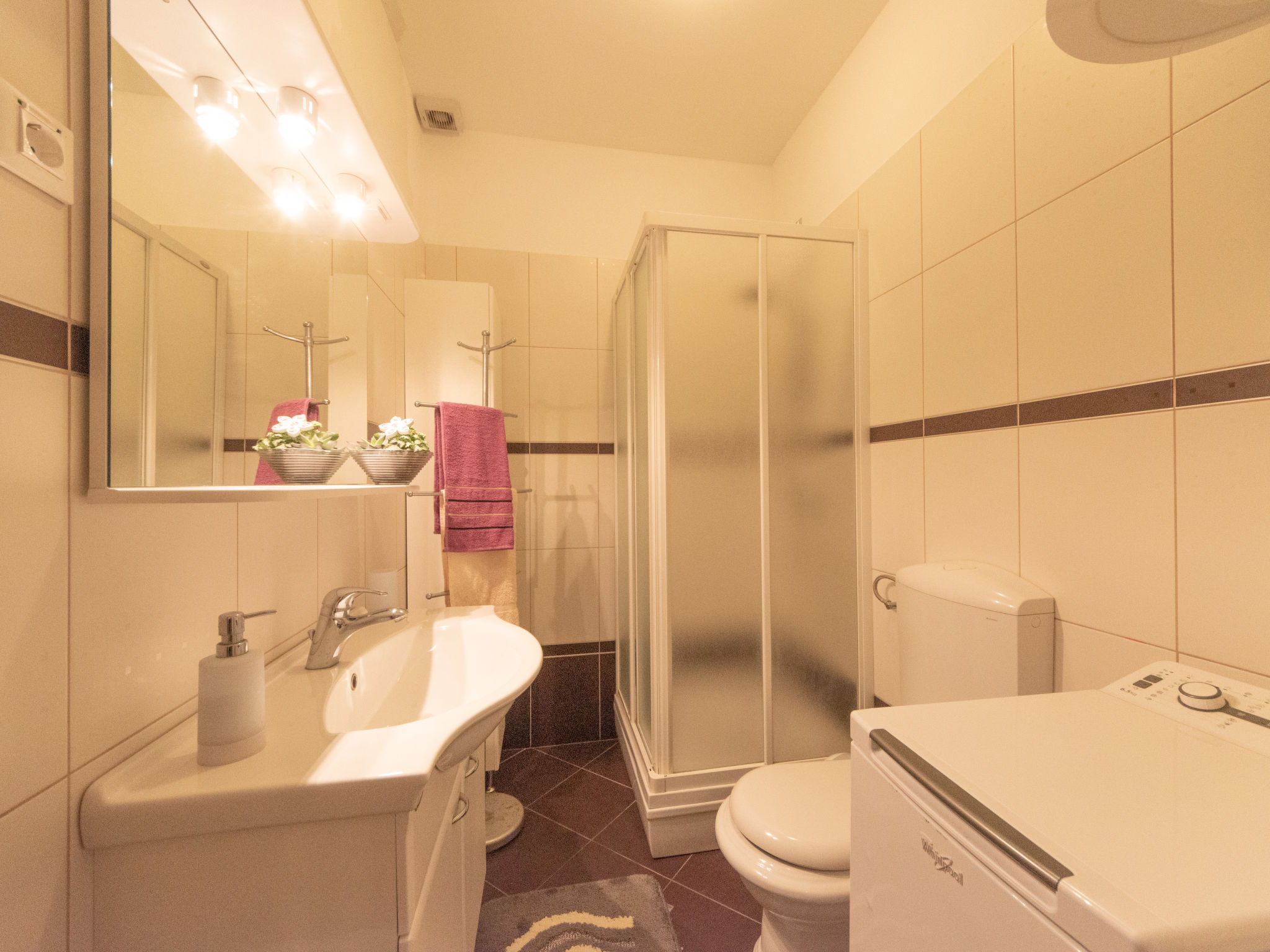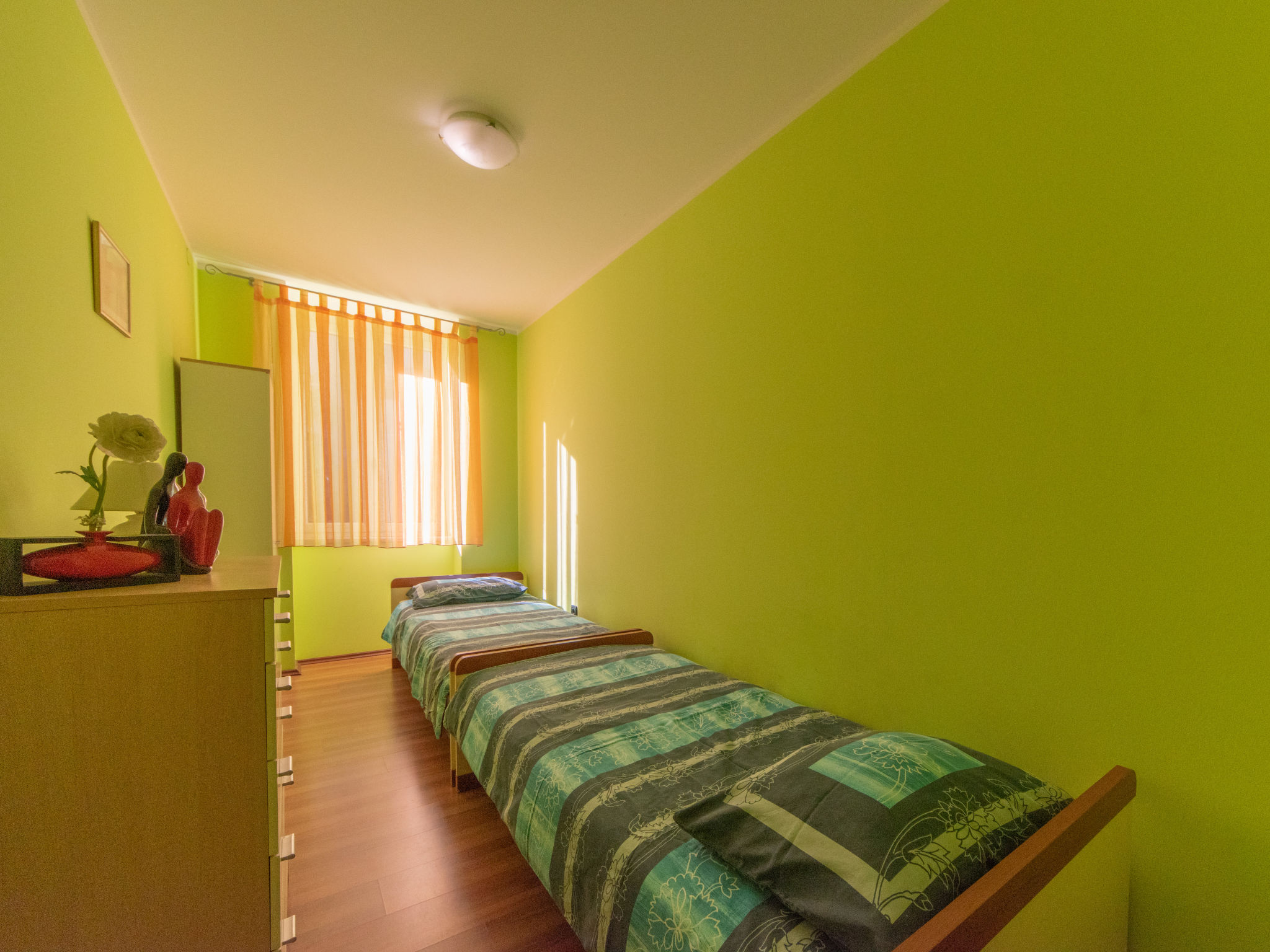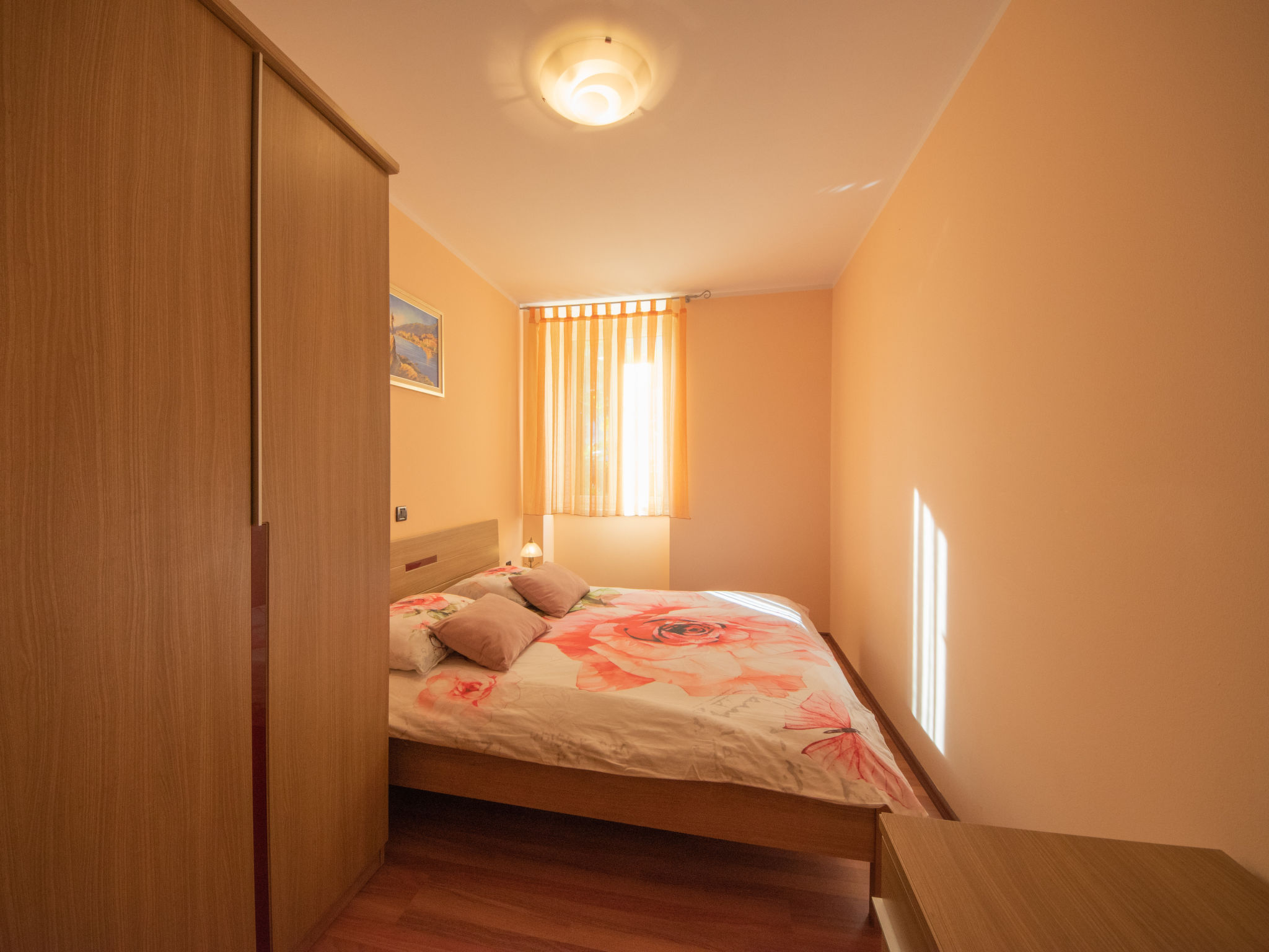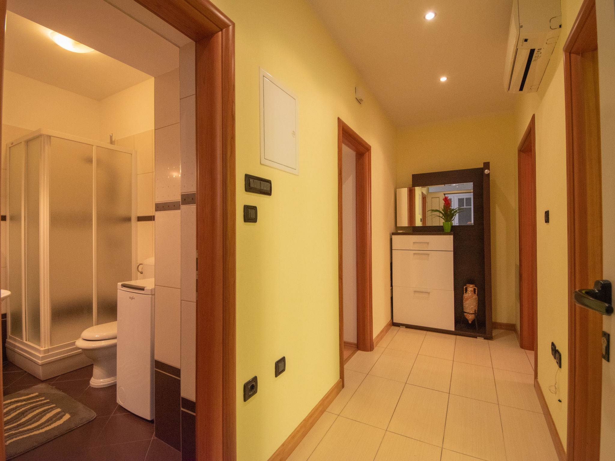 3-Zimmer-Wohnung 58 m2, im Erdgeschoss. Schön und modern eingerichtet: Wohn-/Esszimmer, ohne Fenster mit Sat-TV (Flachbildschirm). Eingang mit Klimaanlage. 1 Zimmer mit 1 Doppelbett (2 x 90 cm, Länge 200 cm). 1 Zimmer mit 2 Betten (90 cm, Länge 200 cm). Offene Küche (Backofen, Geschirrspüler, 4 Glaskeramikherd Platten). Dusche/WC. Zur Verfügung: Waschmaschine. Internet (Wireless LAN, gratis). Offene Küche ohne Fenster.