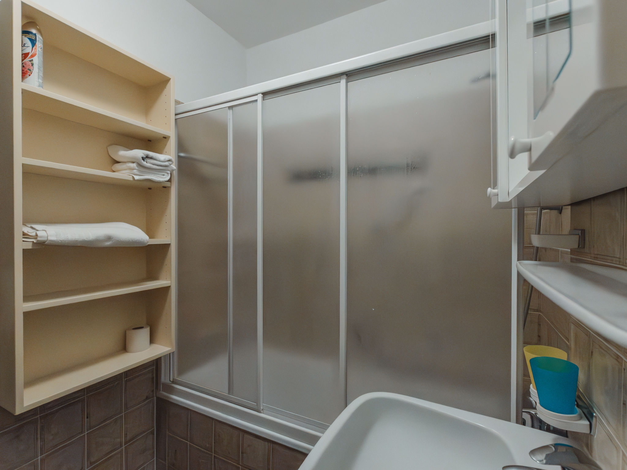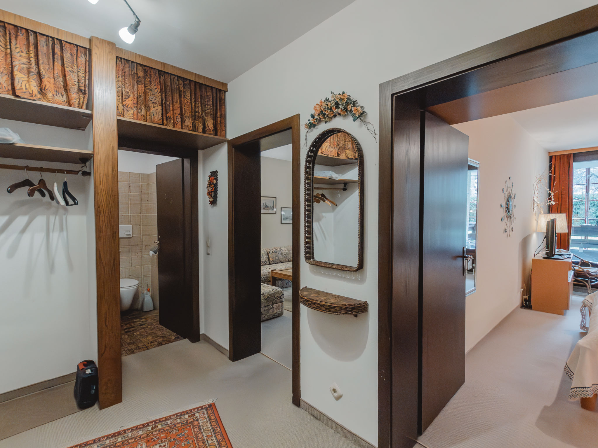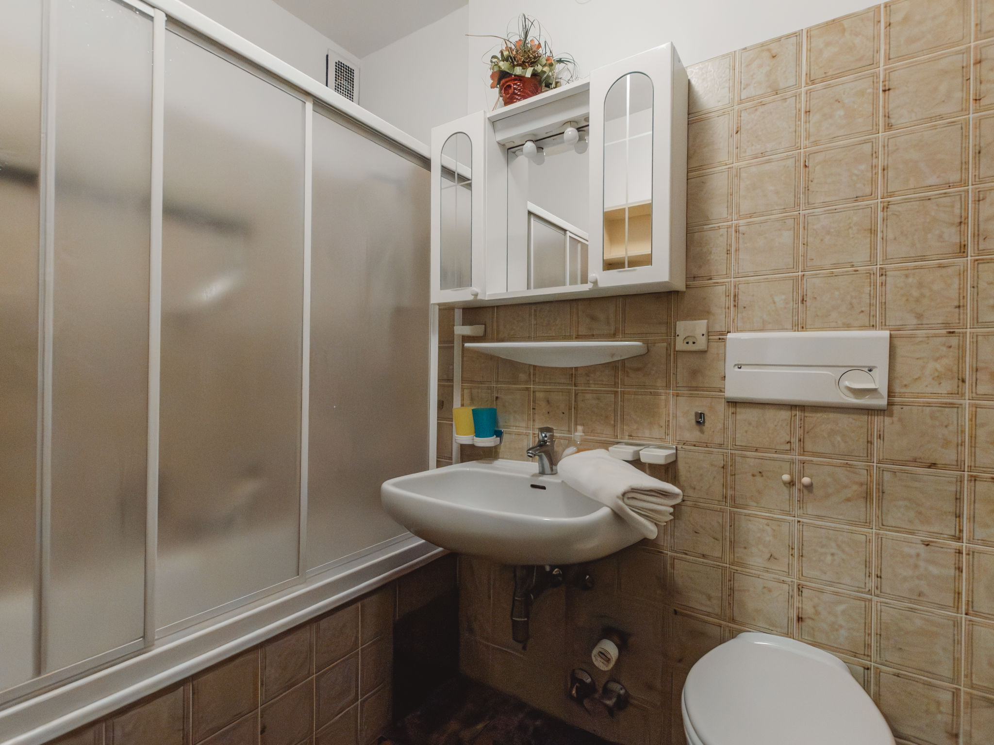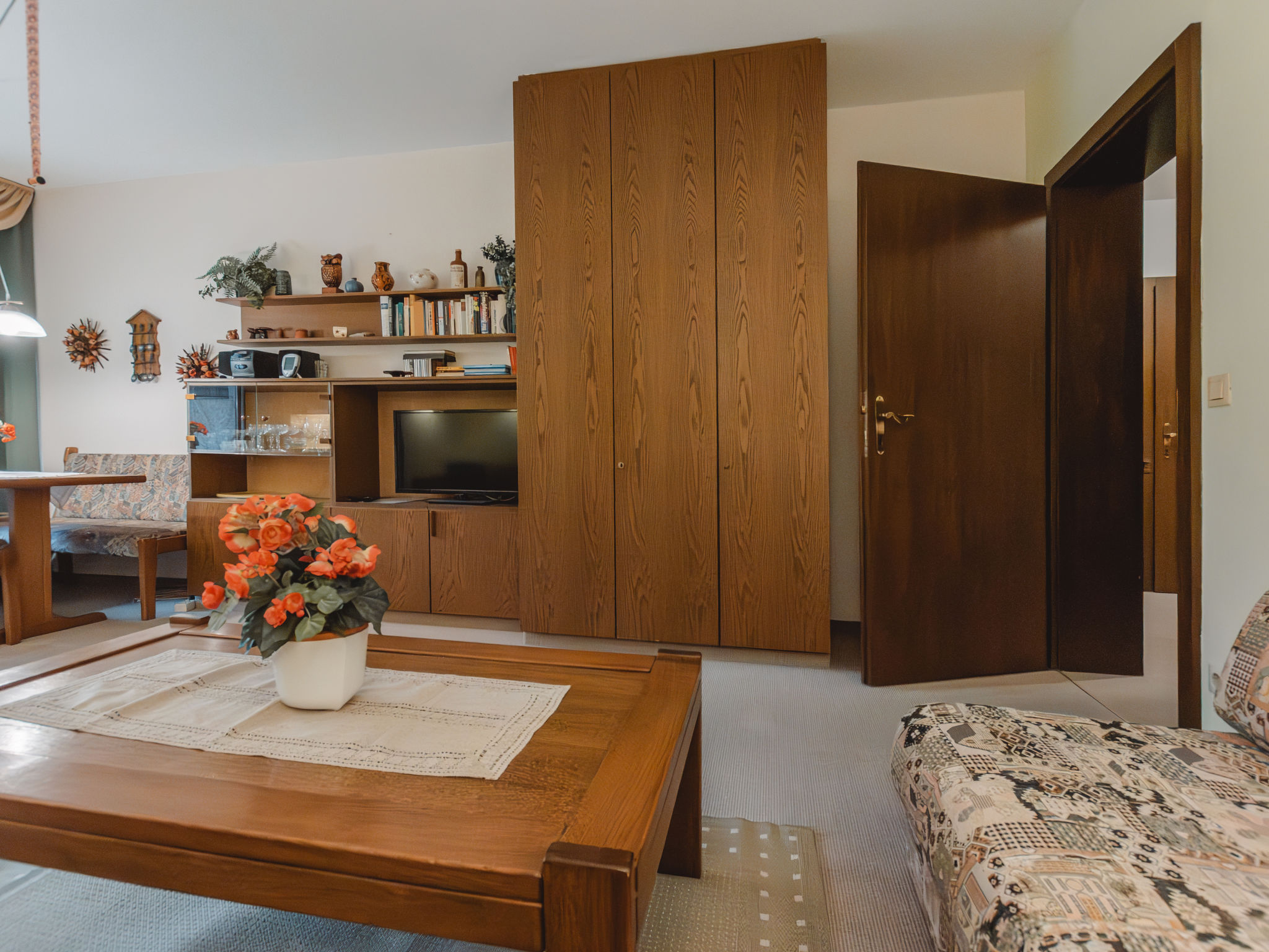 "Prange", 2-Zimmer-Wohnung 75 m2, im erhöhten Erdgeschoss. Gemütlich eingerichtet: Eingang. Wohn-/Schlafzimmer mit 2 Diwanbetten (80 cm, Länge 200 cm), Essecke, Digital-TV und Stereoanlage. Ausgang zur Terrasse. 1 Doppelzimmer mit Digital-TV. Ausgang zur Terrasse. Küche (4 Kochplatten, Backofen, Toaster, Wasserkocher, Mikrowelle, elektrische Kaffeemaschine). Bad/WC. Terrasse 12 m2. Liegestühle (2), Abstellkammer. Sicht auf die Berge. Zur Verfügung: Bügeleisen, Haartrockner. Internet (Wireless LAN, extra). Parkplatz Nr. TOP A 11 beim Haus. Bitte beachten: Nichtraucher-Unterkunft. 50402-000679-2020