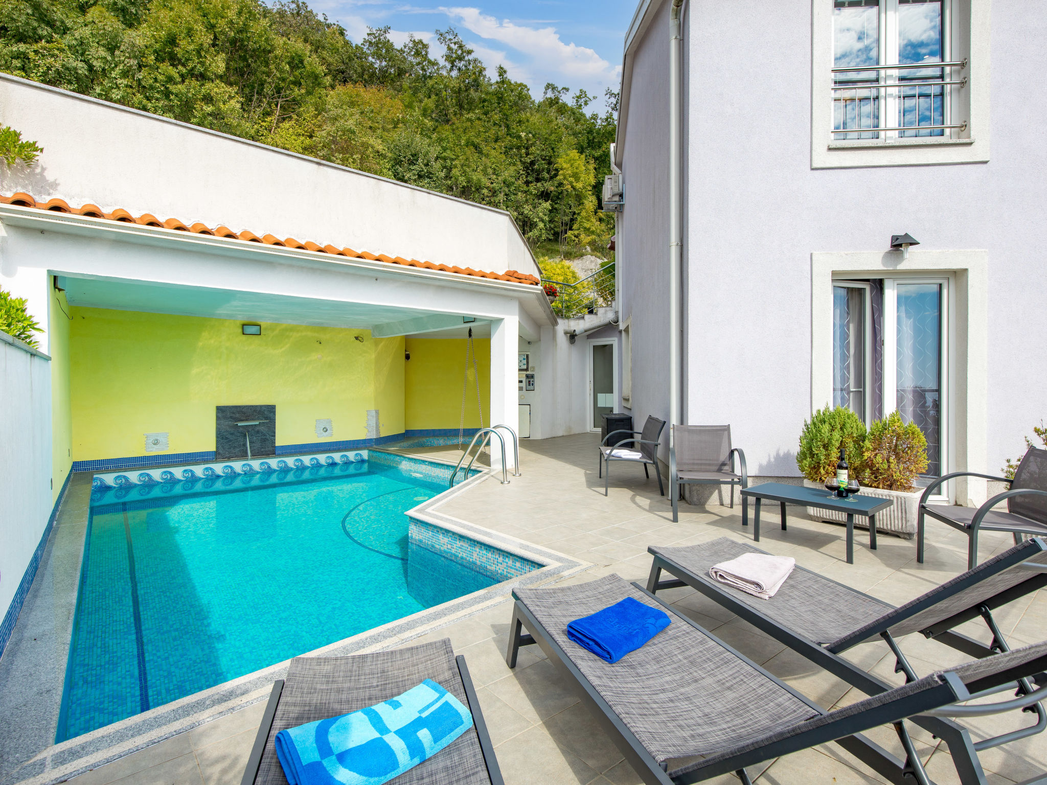 Appartementhaus "Bella Vista". 6 km vom Zentrum von Opatija, 11 km vom Zentrum von Ičići, am Hang, 3 km vom Meer, 3 km vom Strand, in einer Sackgasse, im Grünen. Zur Mitbenutzung: Grundstück 1'000 m2 mit Blumen und Bäumen, Schwimmbad beheizt (7 x 4 m, 130 - 170 cm tief, saisonale Verfügbarkeit: 27.Mar.-05.Nov.). Aussendusche, Terrasse, Grill. Im Hause: Internetzugang, Waschmaschine, Wäschetrockner (zur Mitbenutzung, extra). Parkplatz beim Haus auf dem Grundstück. Einkaufsgeschäft 200 m, Felsstrand 3 km.