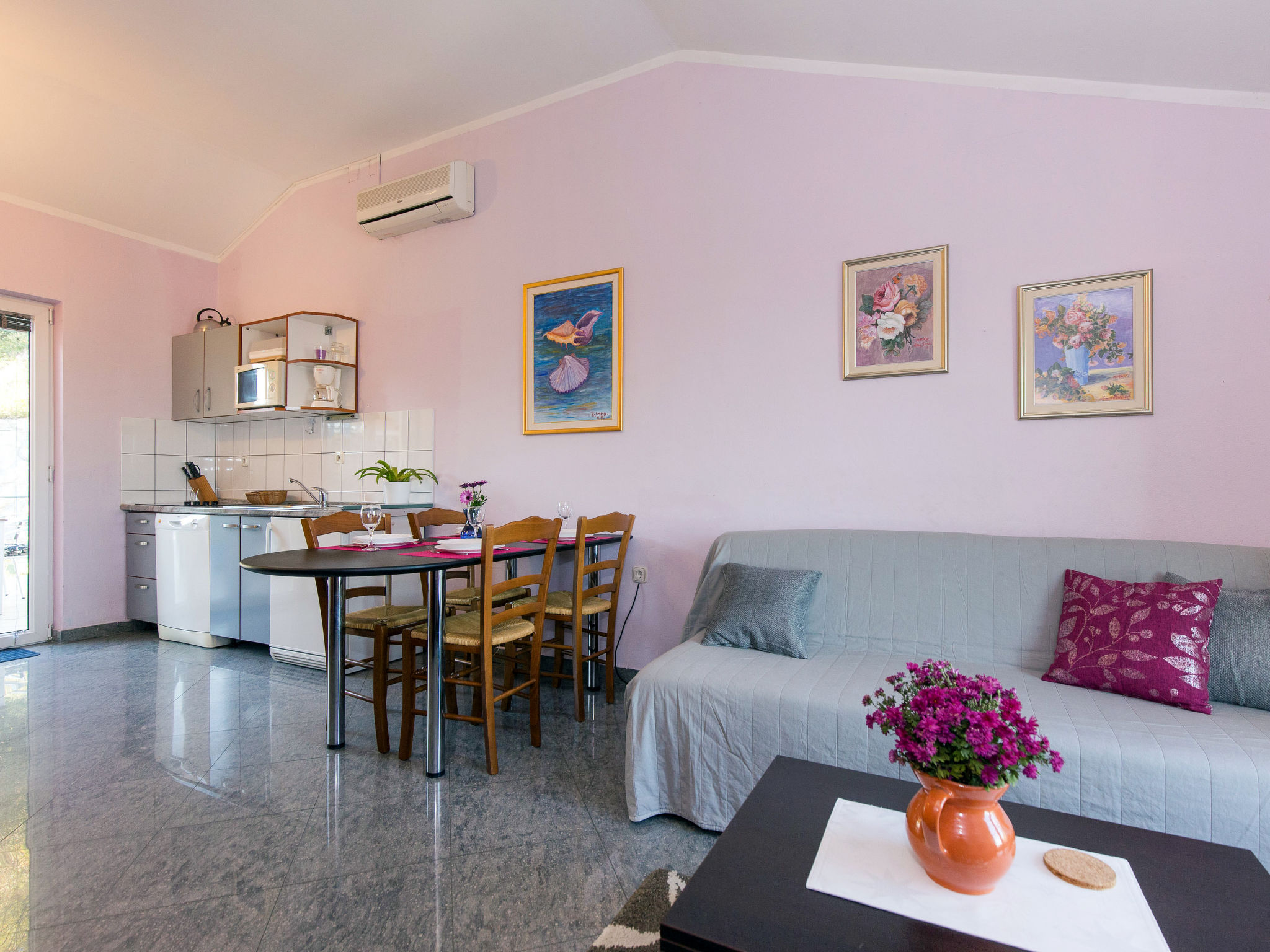 "Bella Vista (OPA102)", 2-Zimmer-Wohnung 43 m2 im 2. Stock. Wohn-/Esszimmer mit 1 Doppeldiwanbett, Sat-TV und Klimaanlage. Ausgang zur Terrasse. 1 Zimmer mit 1 Doppelbett. Offene Küche (Geschirrspüler, 4 Glaskeramikherd Platten, Toaster, Wasserkocher, Mikrowelle, elektrische Kaffeemaschine). Dusche/WC. Ölheizung, Klimaanlage, Warmluftheizung. Terrasse. Terrassenmöbel, Liegestühle. Zur Verfügung: Internet (Wireless LAN, gratis). Maximal 1 Haustier/Hund erlaubt.