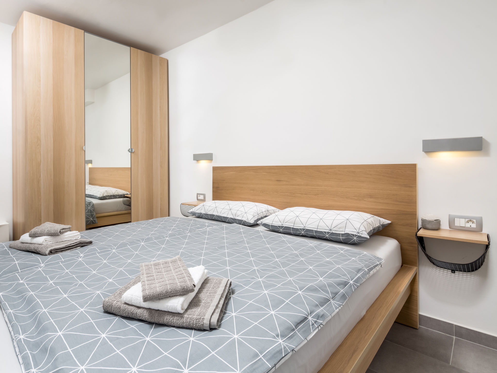 2-Zimmer-Wohnung 22 m2, im Erdgeschoss, Südostlage. Wohn-/Esszimmer mit Sat-TV (Flachbildschirm). Ausgang zur Terrasse. 1 Zimmer mit 1 franz. Bett (160 cm, Länge 200 cm). Offene Küche (Backofen, 2 Glaskeramikherd Platten, elektrische Kaffeemaschine). Dusche/WC. Ölheizung (extra). Terrasse 26 m2, überdacht. Terrassenmöbel. Zur Verfügung: Internet (Wireless LAN, gratis). Bitte beachten: eigener Eingang. Traditionelle istrische Taverne, zur gemeinsamen Nutzung.