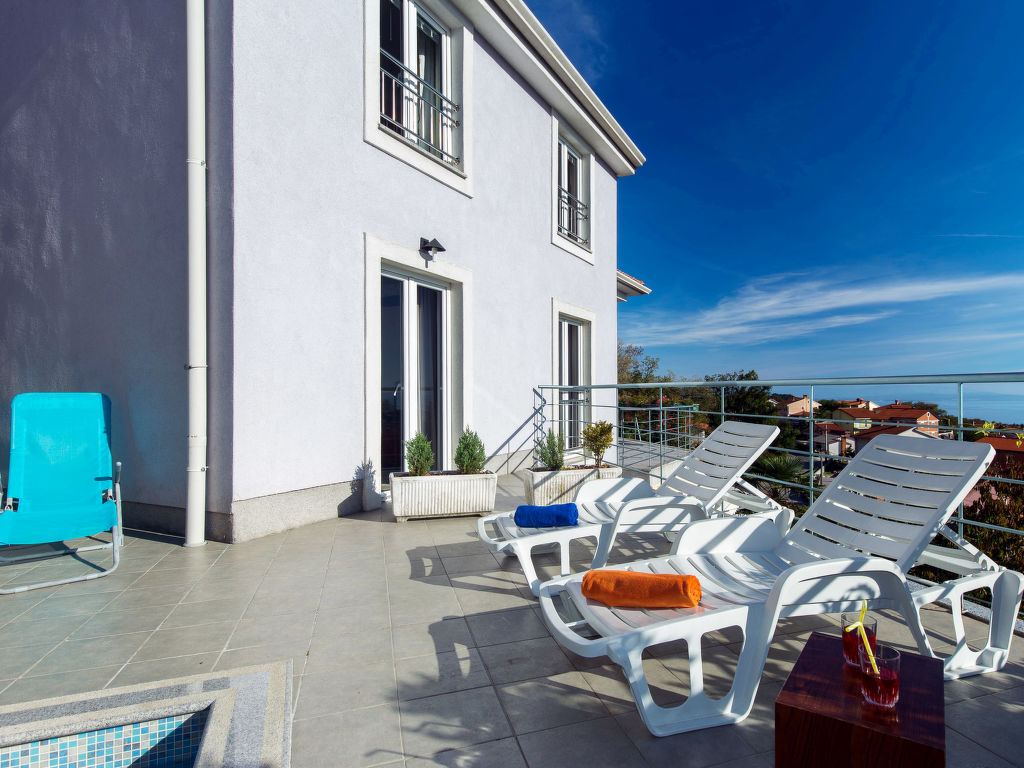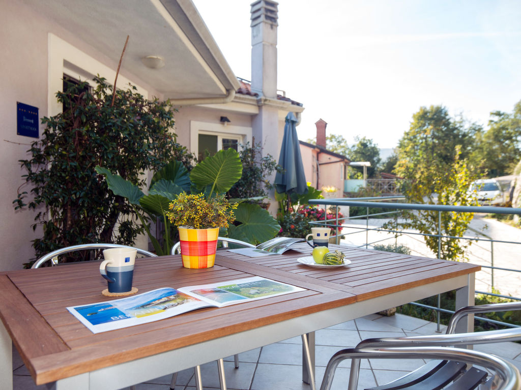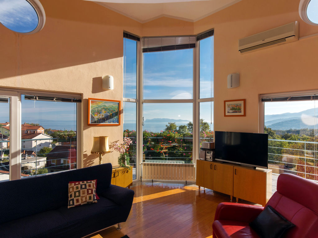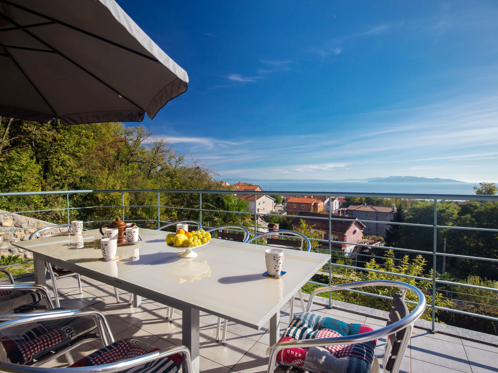Einfamilienhaus "Bella Vista (OPA107)", auf 3 Stockwerken. 6 km vom Zentrum von Opatija, 11 km vom Zentrum von Ičići, 3 km vom Meer, 3 km vom Strand, in einer Sackgasse, im Grünen. Zur Alleinbenutzung: Grundstück 1'000 m2 mit Blumen und Bäumen, Schwimmbad beheizt (7 x 4 m, 170 cm tief, 27.03.-05.11.). Aussendusche, Terrasse, Grill, Poolpflege durch den Besitzer/Gärtner. Im Hause: Internetzugang, Zentralheizung, Waschmaschine, Wäschetrockner (extra). Parkplatz beim Haus auf dem Grundstück. Einkaufsgeschäft 200 m, Supermarkt 6 km, Restaurant 6 km, Felsstrand 3 km. Jacht-Hafen 11 km. Das Haus besteht aus 5 Ferienwohnungen, die als Einheit vermietet werden.