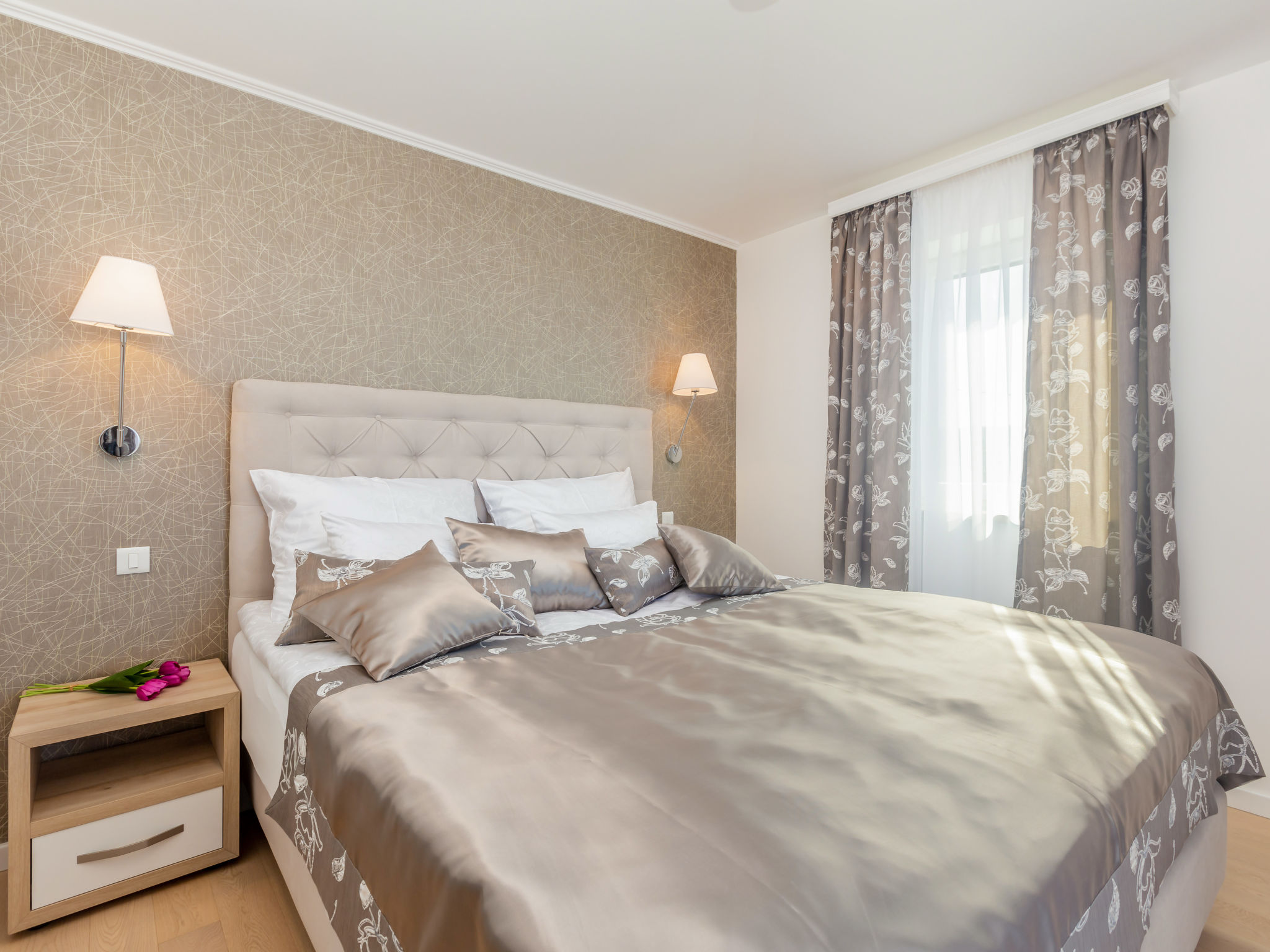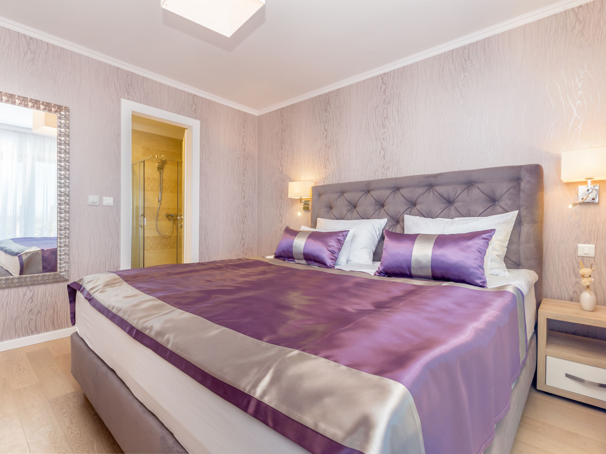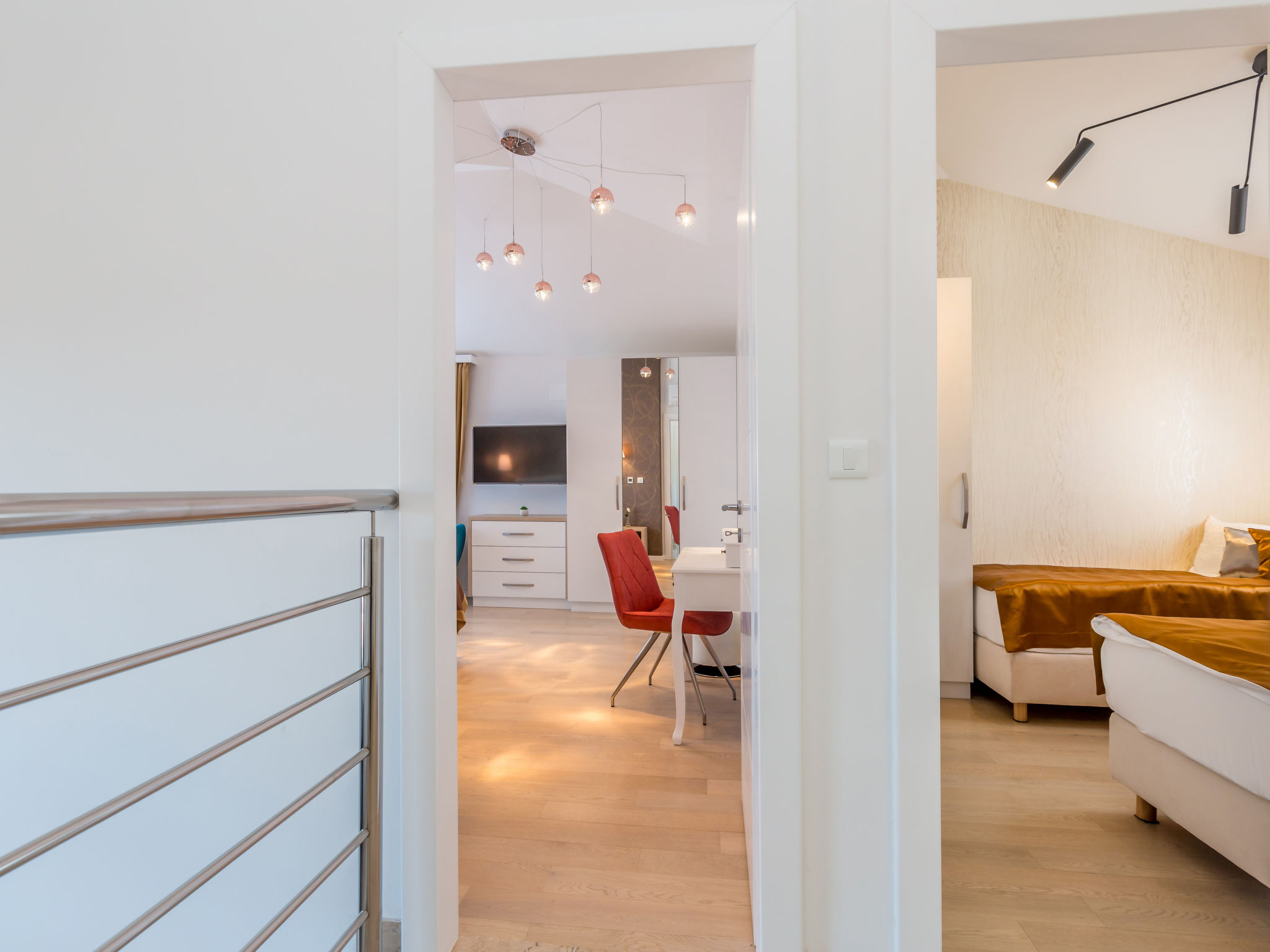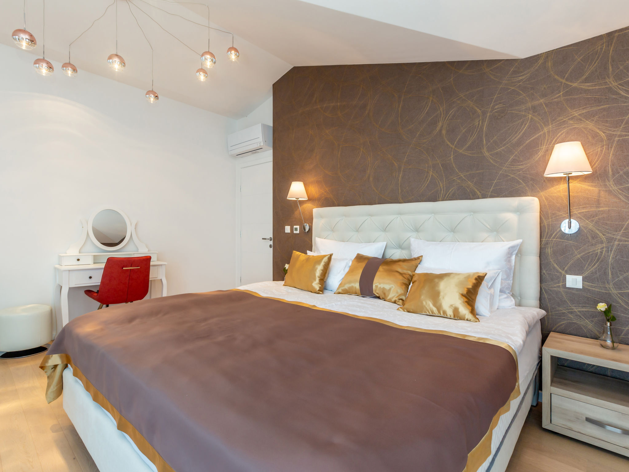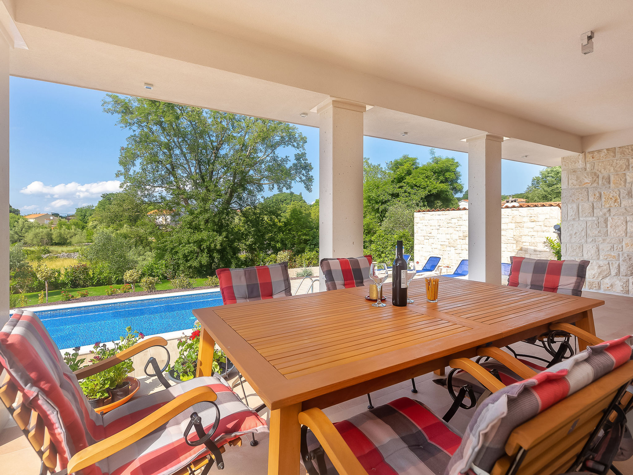 7-Zimmer-Villa 250 m2 auf 3 Stockwerken, Südlage. Sehr schön und luxuriös eingerichtet: Wohn-/Esszimmer 35 m2 mit 1 Doppeldiwanbett (160 cm, Länge 240 cm), Sat-TV (Flachbildschirm), Klimaanlage. Ausgang zur Terrasse. 1 Zimmer mit 1 franz. Bett (200 cm, Länge 210 cm), Dusche/Bidet/WC und Sat-TV (Flachbildschirm), Klimaanlage. Ausgang zur Terrasse. Offene Küche (Backofen, Geschirrspüler, 4 Induktionskochplatten, Mikrowelle, Tiefkühler, elektrische Kaffeemaschine). Sep. WC. Unteres Geschoss: Wohnzimmer mit Küchenblock und Sat-TV (Flachbildschirm). Dusche/WC. Obergeschoss: 1 Zimmer mit 1 franz. Bett (200 cm, Länge 210 cm), Sat-TV (Flachbildschirm), Klimaanlage. Ausgang zum Balkon. 1 Zimmer mit 2 Betten (90 cm, Länge 200 cm), Sat-TV (Flachbildschirm), Klimaanlage. 1 grosses Zimmer 30 m2 mit 1 franz. Bett (200 cm, Länge 210 cm), Dusche/Bidet/WC und Sat-TV (Flachbildschirm), Klimaanlage. Ausgang zur Terrasse. Bad/Bidet/WC. Bodenheizung. Balkon 10 m2, 2 Terrassen 25 m2, Terrasse 22 m2, überdacht. Terrassenmöbel, Gartengrill (mobil), Liegestühle. Fernsicht auf das Meer. Zur Verfügung: Safe, Haartrockner. Internet (Wireless LAN, gratis). Terrasse 15 m2. Im Untergeschoss: Wohnzimmer mit Küchenecke (Waschbecken, Kühlschrank, elektrische Kaffeemaschine) und Billardtisch, Ruheraum mit finnischer Sauna.