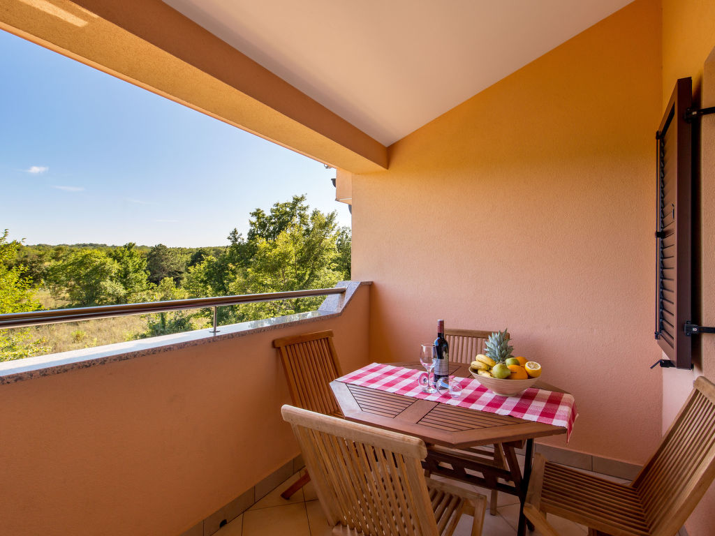2-Zimmer-Wohnung 45 m2 im 2. Stock, Südlage. Wohn-/Esszimmer 20 mit 1 Doppeldiwanbett, Sat-TV und Klimaanlage. Ausgang zur Loggia. 1 Zimmer mit 1 Doppelbett (2 x 80 cm, Länge 200 cm). Offene Küche (Geschirrspüler, 4 Glaskeramikherd Platten, Mikrowelle, elektrische Kaffeemaschine). Dusche/WC. Terrassenmöbel, Loggia. Sicht auf die Landschaft.