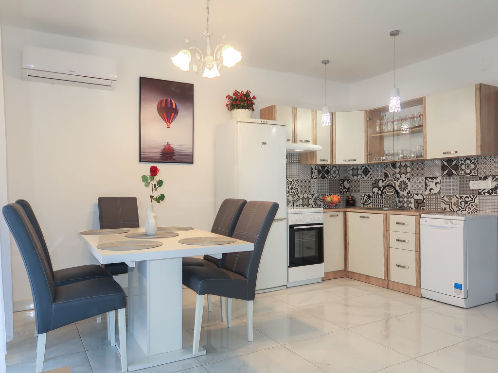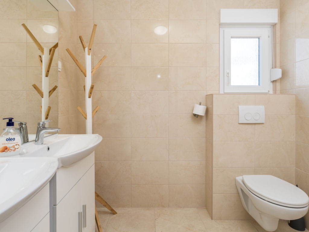 Doppelhaus "Villa Mira (KRK147)", auf 2 Stockwerken, renoviert im Jahre 2020. 300 m vom Zentrum von Pinezići, 900 m vom Meer, 900 m vom Strand. Zur Alleinbenutzung: Grundstück 700 m2 (eingezäunt), Schwimmbad eckig (8 x 3 m, 150 cm tief, 15.03.-15.11.) mit Innentreppe. Aussendusche, Terrasse, Gartenmöbel, Grill. Im Hause: Internetzugang, Klimaanlage, Waschmaschine. Parkplatz (für 3 Autos) auf dem Grundstück. Einkaufsgeschäft 100 m, Kieselstrand 900 m.