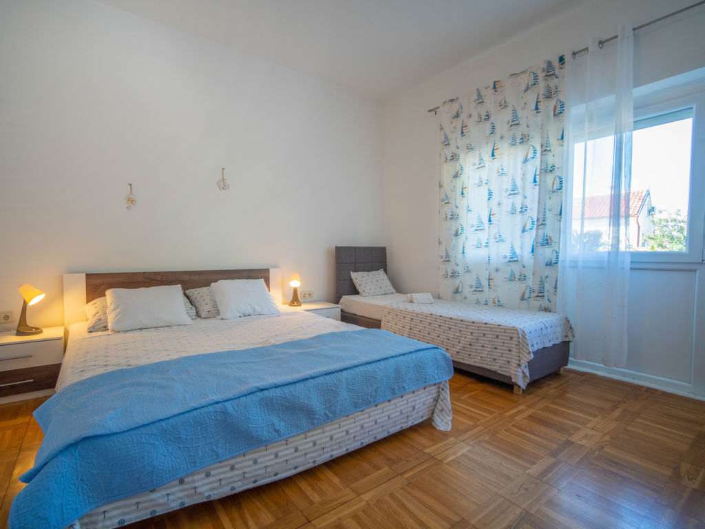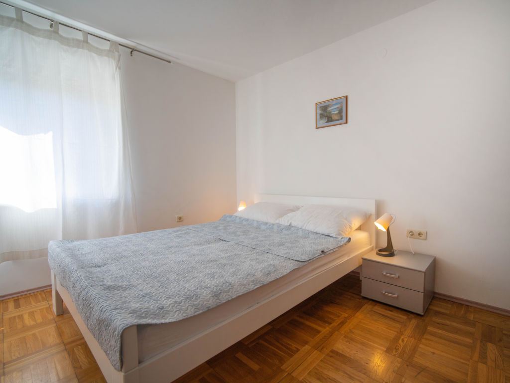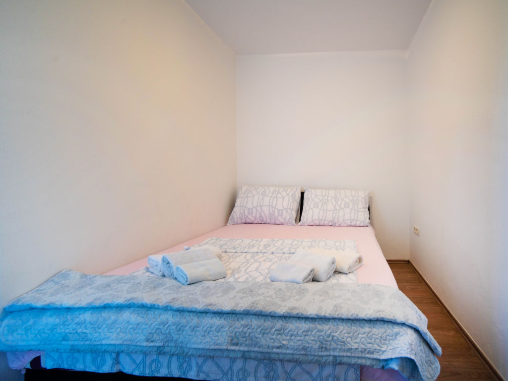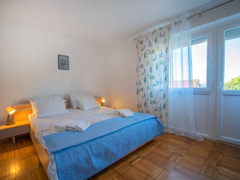"Ivka -apt.1", 5-Zimmer-Wohnung auf 3 Stockwerken. 1 Zimmer mit 1 franz. Bett (180 cm, Länge 200 cm). Ausgang zur Terrasse. Esszimmer mit TV und Klimaanlage. Offene Küche (4 Kochplatten, Backofen, Geschirrspüler, Wasserkocher, Tiefkühler, elektrische Kaffeemaschine). Dusche/WC. Obergeschoss: Eingang mit Klimaanlage. 1 Zimmer mit 1 Doppelbett (2 x 80 cm, Länge 200 cm). 1 Zimmer mit 1 franz. Bett (150 cm, Länge 200 cm). Ausgang zum Balkon. 1 Zimmer mit 1 franz. Bett (180 cm, Länge 200 cm). Ausgang zur Terrasse. Dusche/WC. Dachgeschoss: 1 abgeschrägtes Zimmer, Deckenhöhe 110 - 220 cm mit 1 franz. Bett (160 cm, Länge 200 cm), Klimaanlage. Ausgang zur Terrasse. Balkon 5 m2, Terrasse 12 m2, überdacht, 2 Terrassen 10 m2. Terrassenmöbel, Balkonmöbel. Sicht auf das Meer. Zur Verfügung: Waschmaschine, Haartrockner. Internet (Wireless LAN, gratis). Bitte beachten: 1 kleines Haustier/Hund erlaubt. Eigener Eingang.