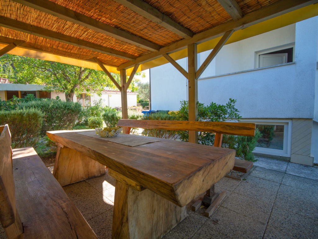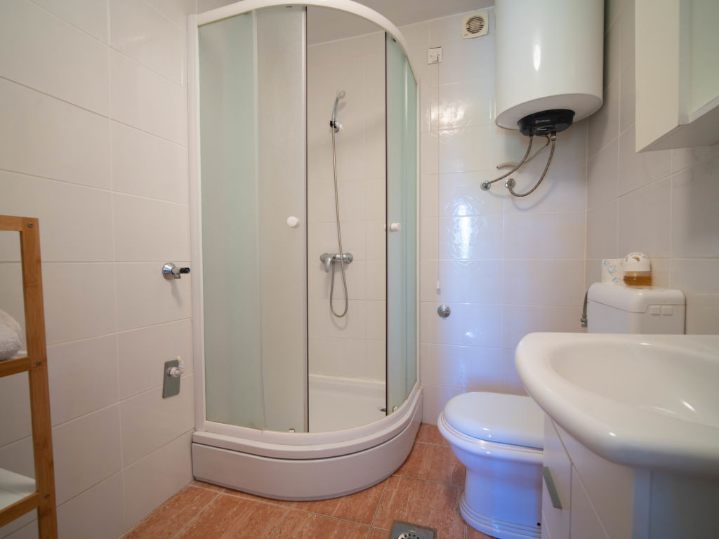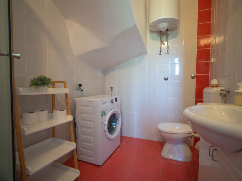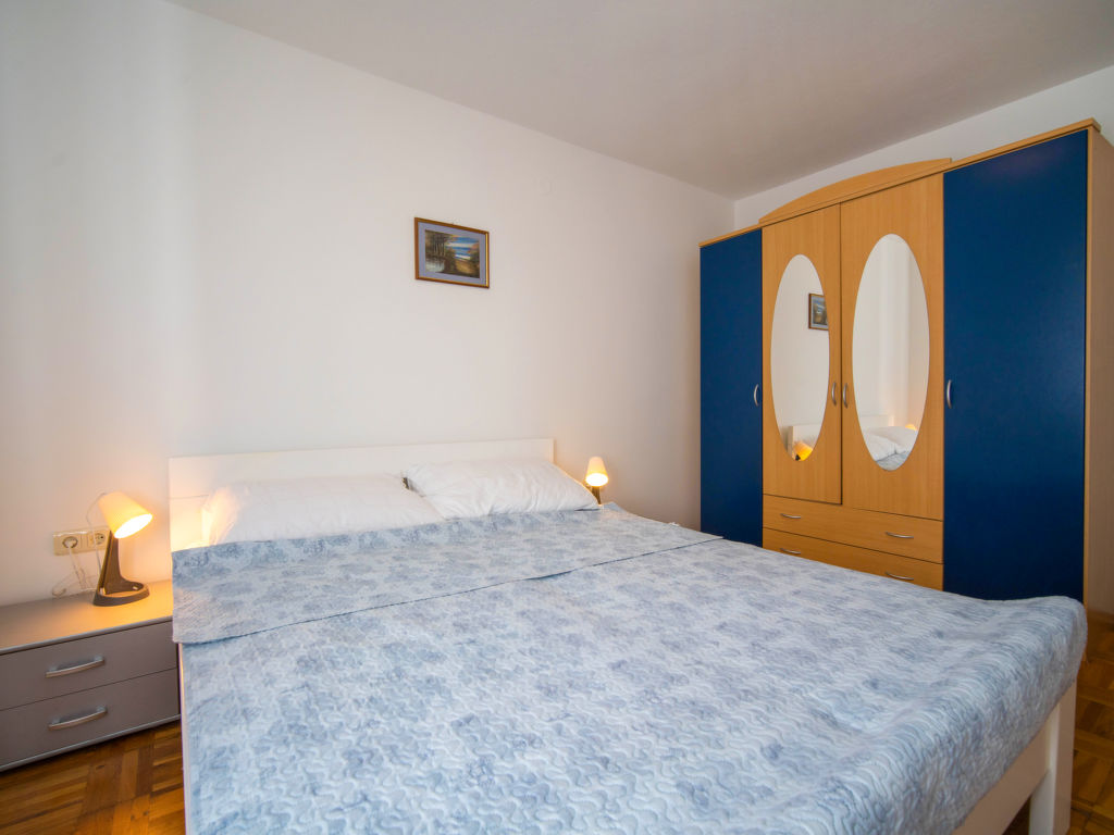 "Ivka -apt.1", 5-Zimmer-Wohnung auf 3 Stockwerken. 1 Zimmer mit 1 franz. Bett (180 cm, Länge 200 cm). Ausgang zur Terrasse. Esszimmer mit TV und Klimaanlage. Offene Küche (4 Kochplatten, Backofen, Geschirrspüler, Wasserkocher, Tiefkühler, elektrische Kaffeemaschine). Dusche/WC. Obergeschoss: Eingang mit Klimaanlage. 1 Zimmer mit 1 Doppelbett (2 x 80 cm, Länge 200 cm). 1 Zimmer mit 1 franz. Bett (150 cm, Länge 200 cm). Ausgang zum Balkon. 1 Zimmer mit 1 franz. Bett (180 cm, Länge 200 cm). Ausgang zur Terrasse. Dusche/WC. Dachgeschoss: 1 abgeschrägtes Zimmer, Deckenhöhe 110 - 220 cm mit 1 franz. Bett (160 cm, Länge 200 cm), Klimaanlage. Ausgang zur Terrasse. Balkon 5 m2, Terrasse 12 m2, überdacht, 2 Terrassen 10 m2. Terrassenmöbel, Balkonmöbel. Sicht auf das Meer. Zur Verfügung: Waschmaschine, Haartrockner. Internet (Wireless LAN, gratis). Bitte beachten: 1 kleines Haustier/Hund erlaubt. Eigener Eingang.