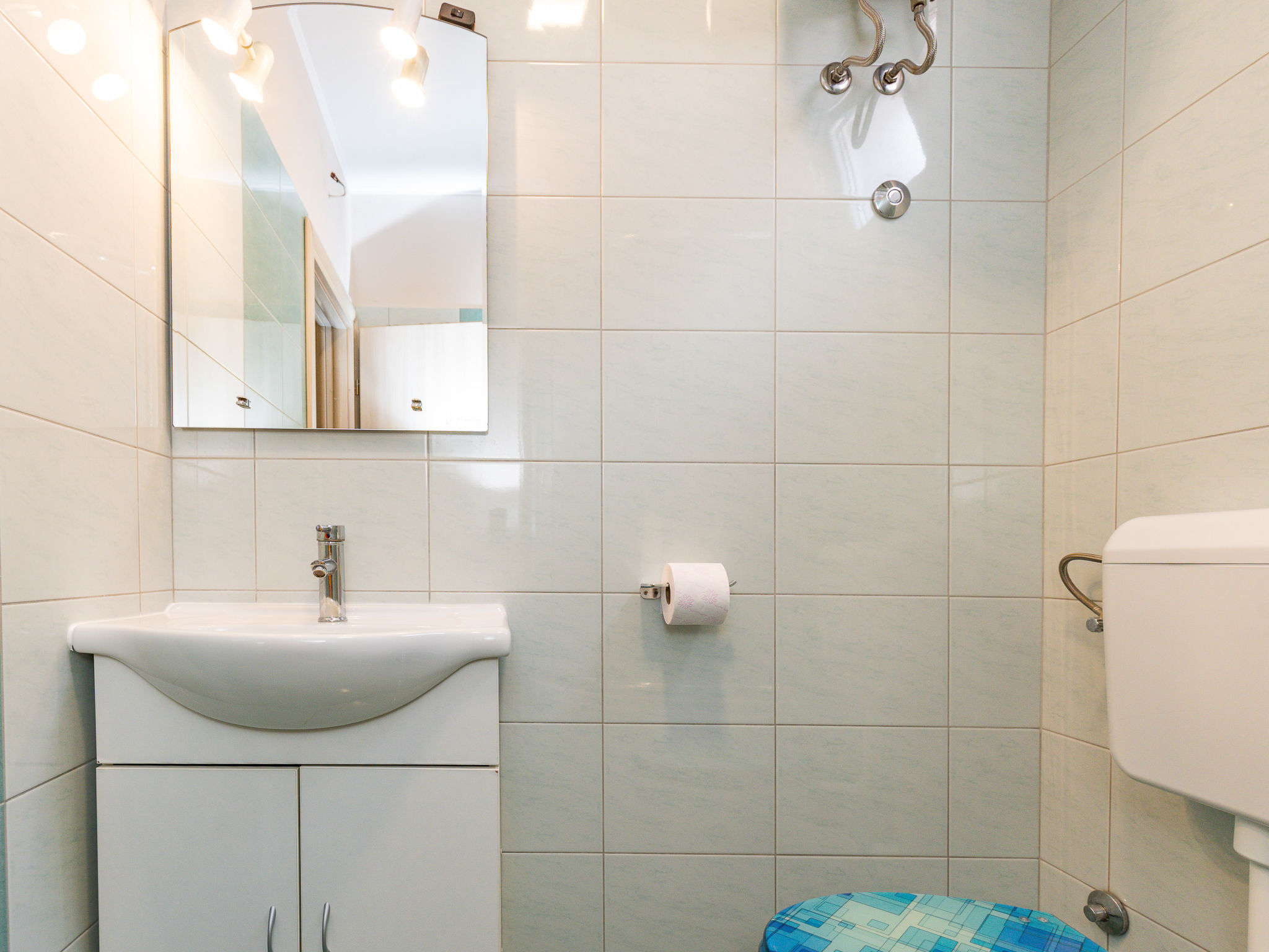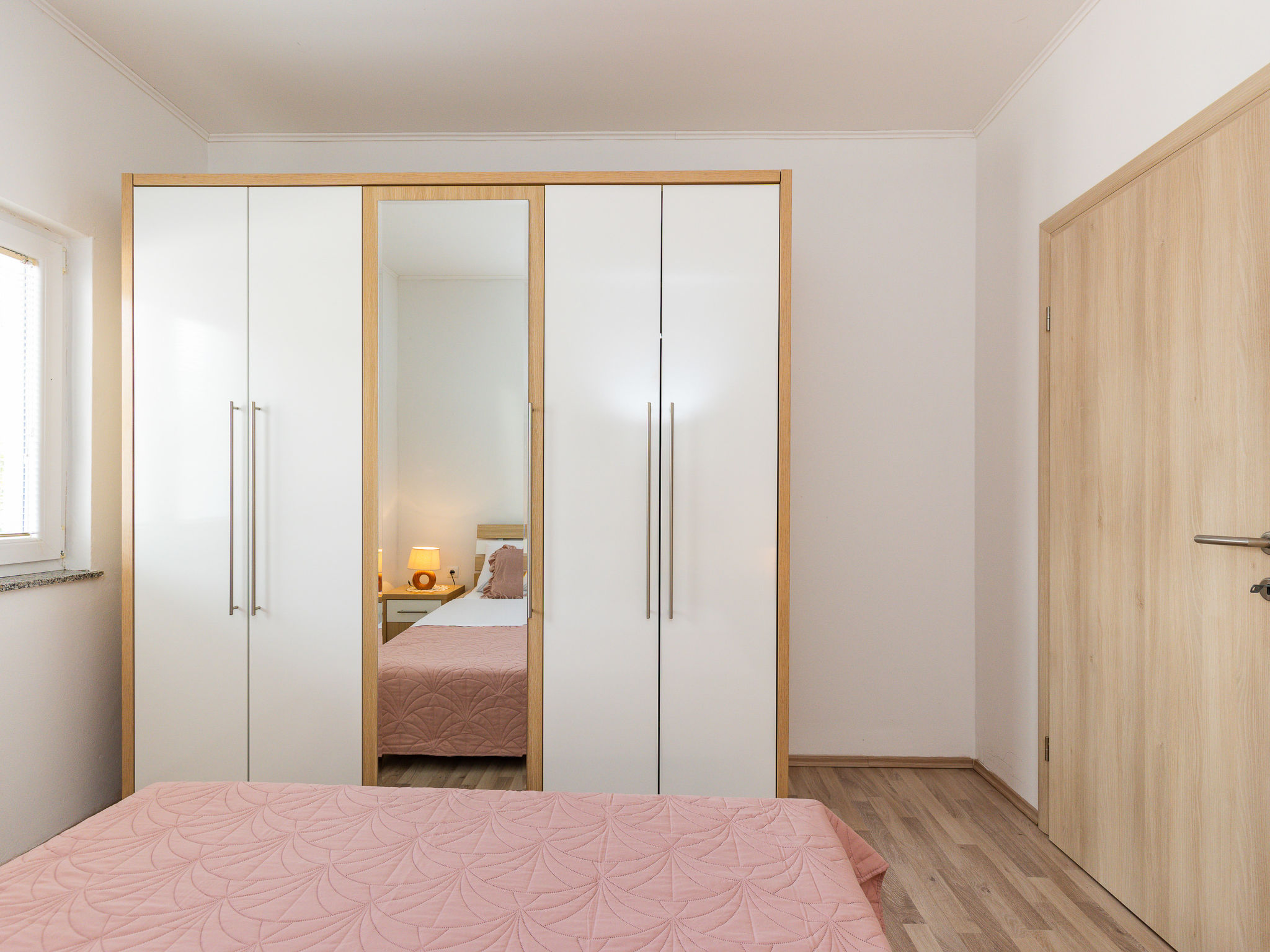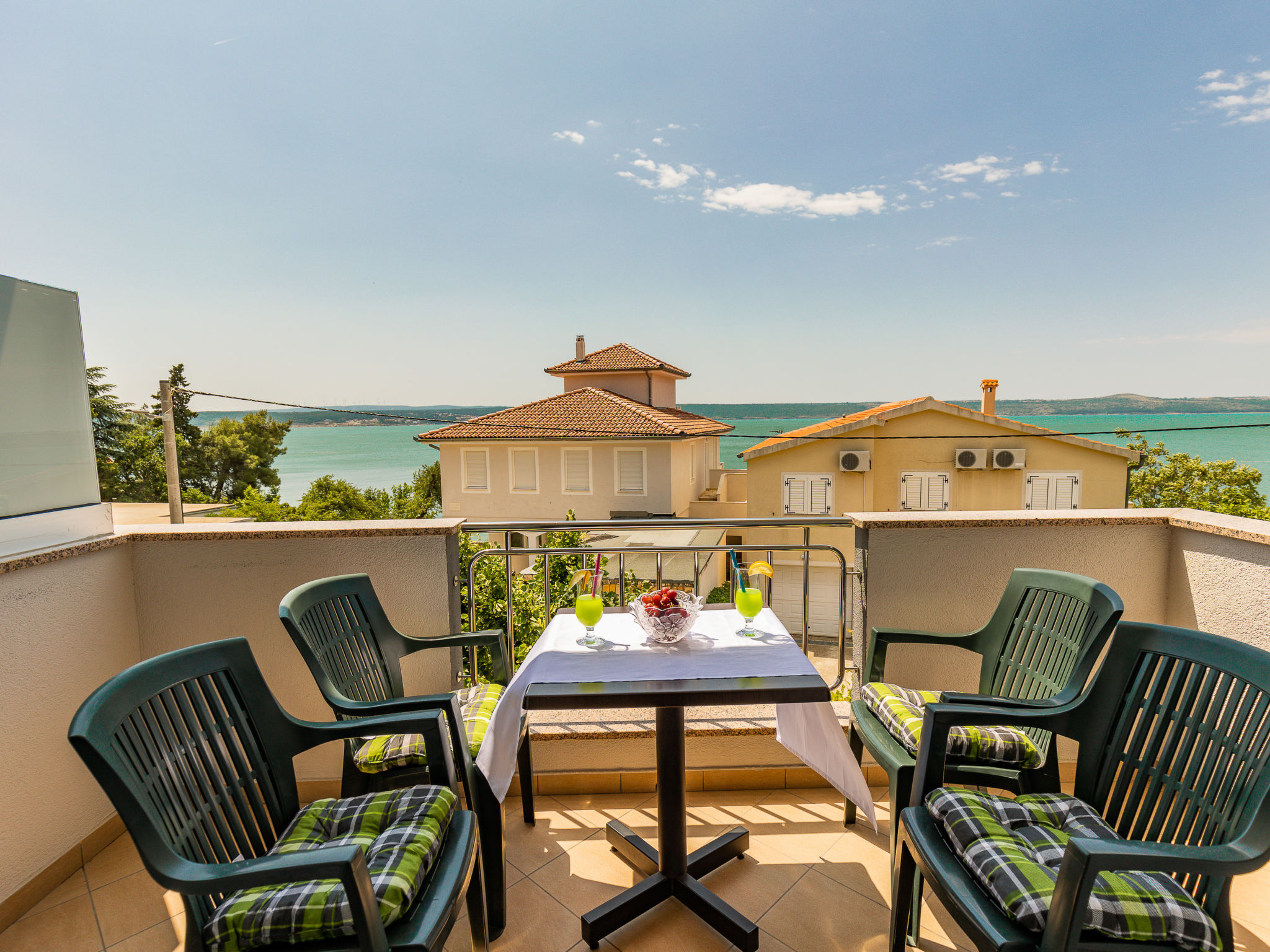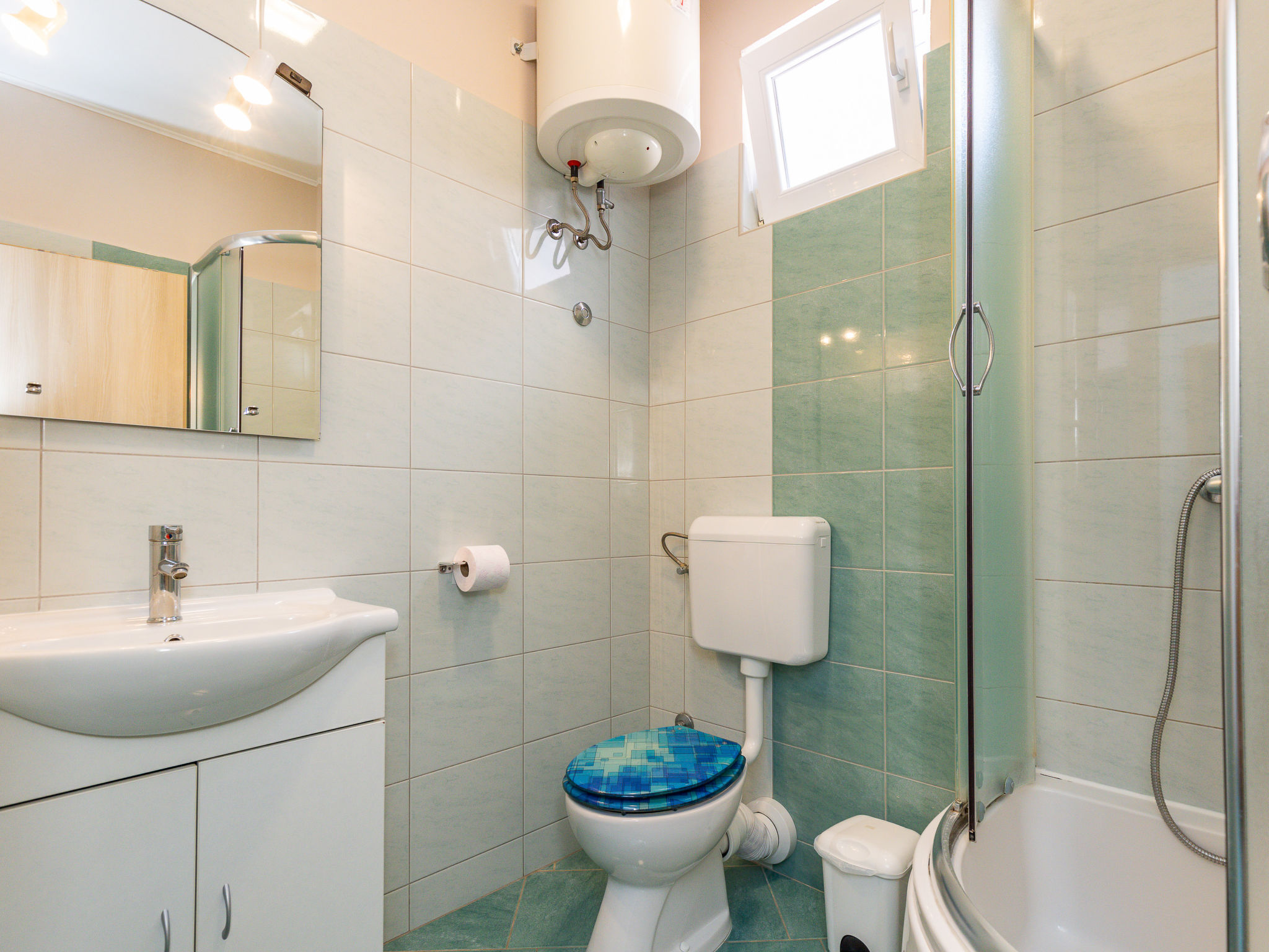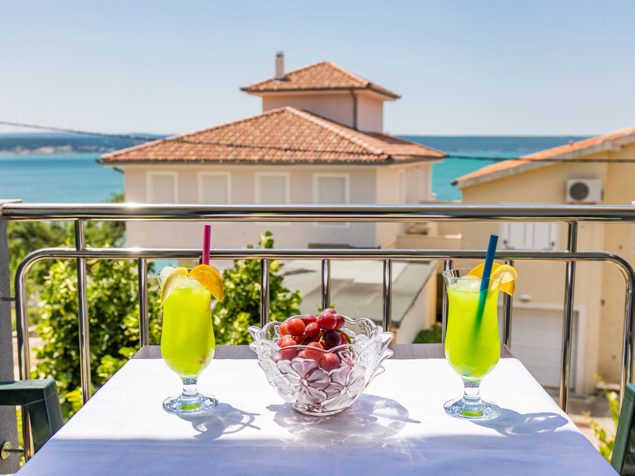 "Maja (SRD422)", 2-Zimmer-Wohnung 40 m2 im 1. Stock. Wohn-/Esszimmer mit 1 Doppeldiwanbett (155 cm, Länge 190 cm), Sat-TV und Klimaanlage. Ausgang zum Balkon. 1 Zimmer mit 1 Doppelbett (160 cm, Länge 200 cm). Offene Küche (4 Kochplatten, Backofen, Toaster, Wasserkocher, Mikrowelle, Tiefkühler, elektrische Kaffeemaschine). Dusche/WC. E-Heizung. Balkon 6 m2. Balkonmöbel. Sicht auf das Meer. Zur Verfügung: Waschmaschine. Internet (Wireless LAN, gratis). Bitte beachten: Nichtraucher-Haus. Eigener Eingang.